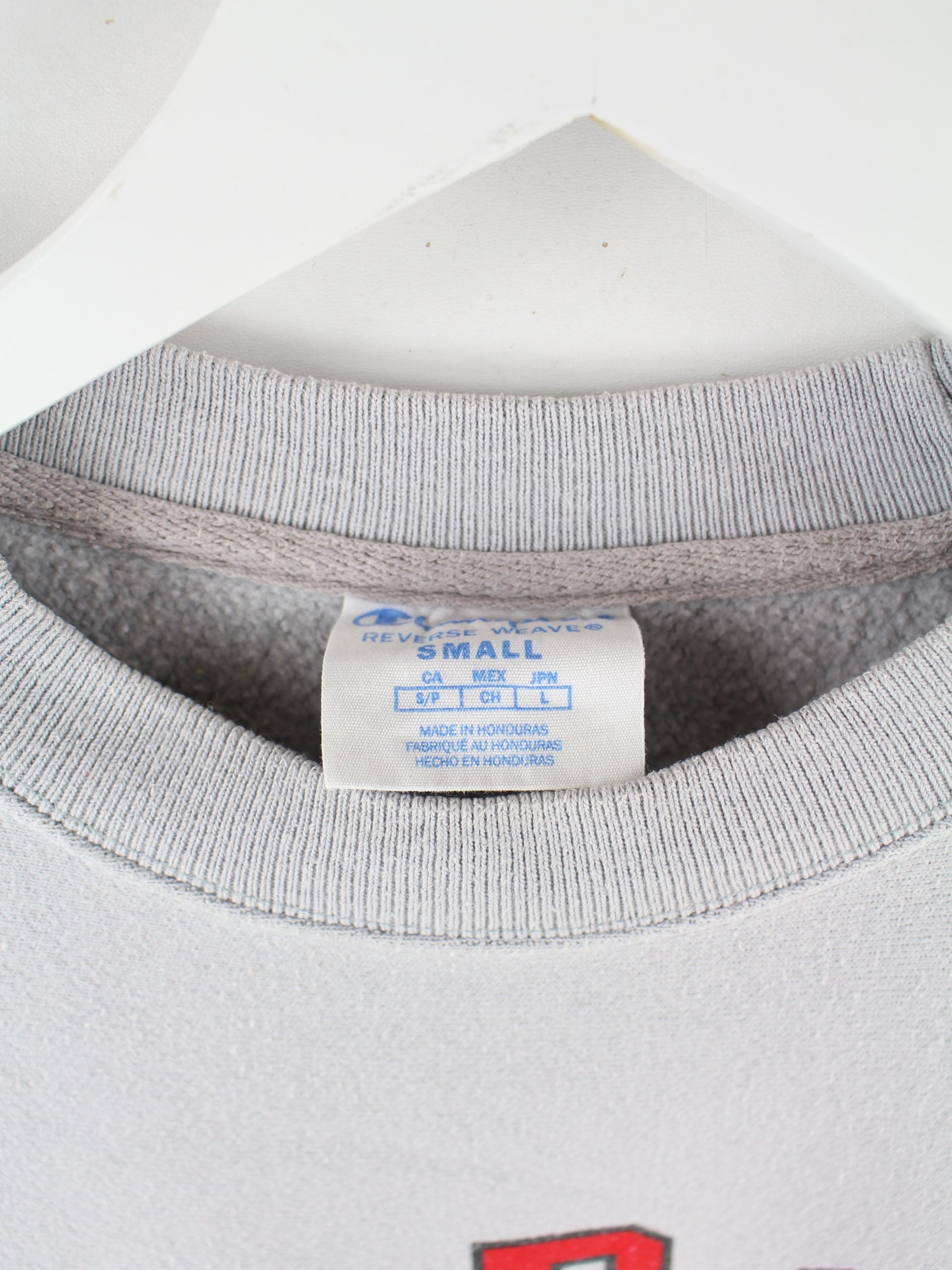 Sweater von Champion in Größe S. Er ist aus einer Baumwollmischung gemacht und in Grau bei uns vorrätig. Mit seltenem Bulldogs Print.