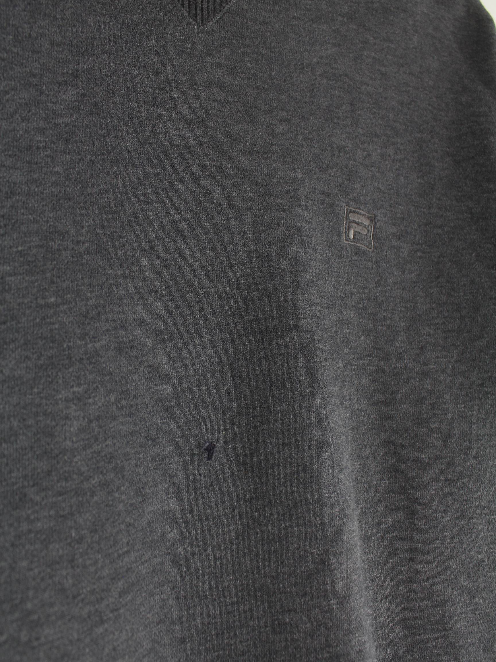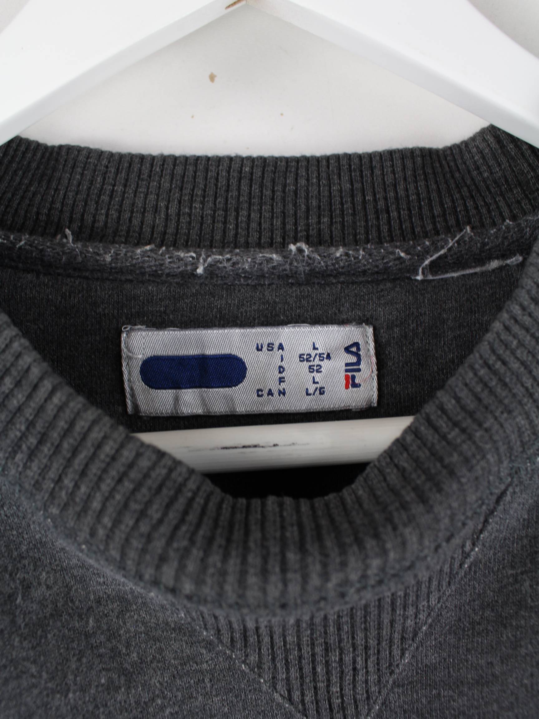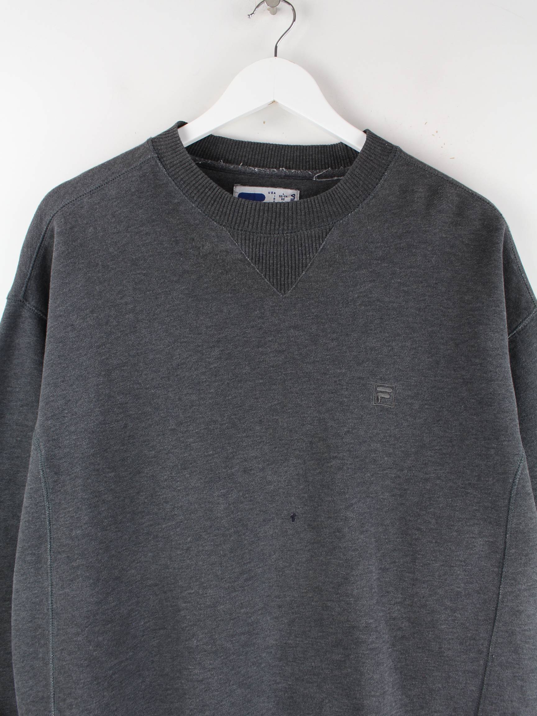 Grauer Sweater des Labels Fila in Größe L. Er ist aus einer Baumwollmischung hergestellt und in gutem Zustand bei uns zu bekommen.