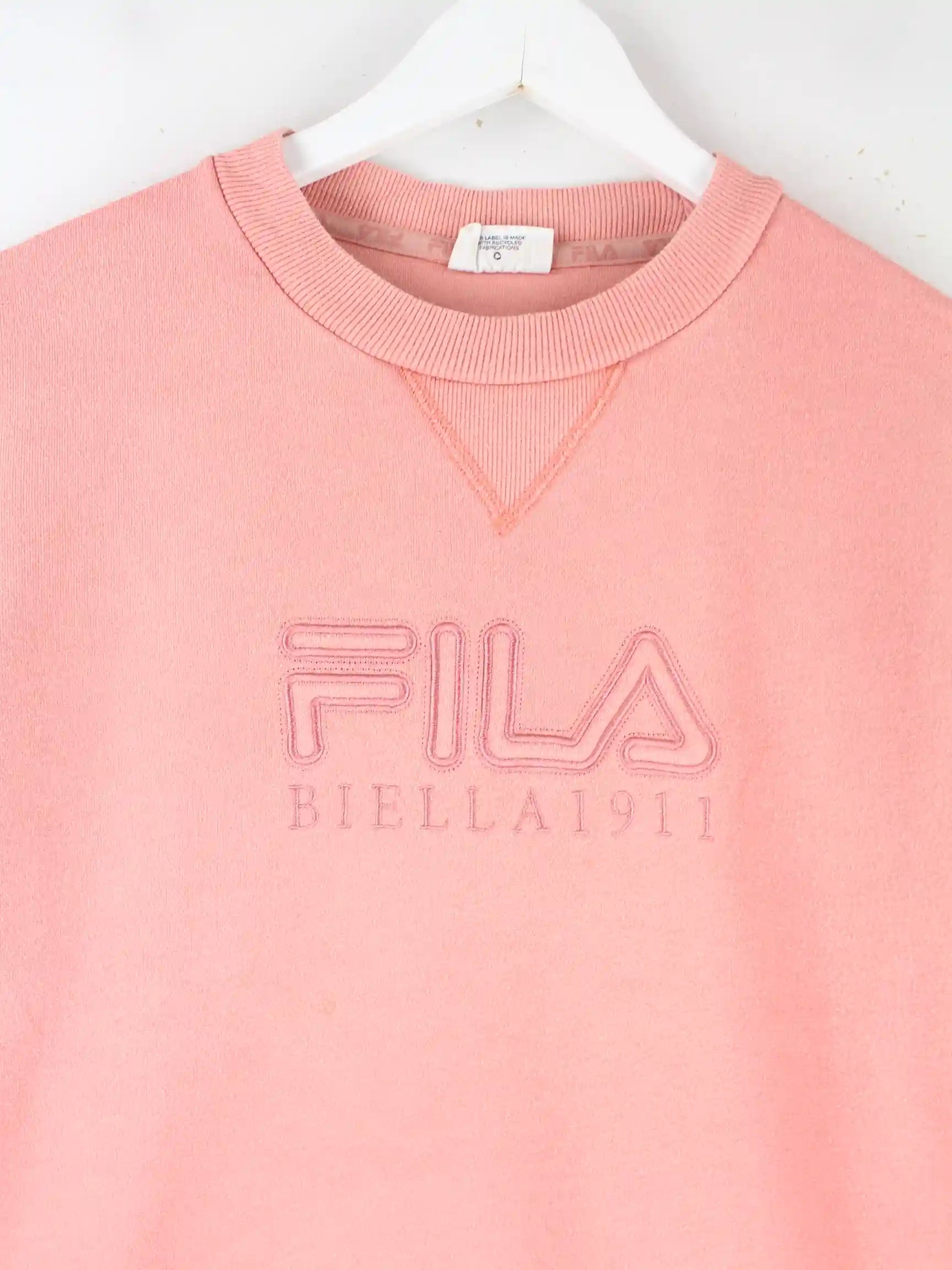 Sweater vom Label Fila in Größe L. Er ist aus einer Baumwollmischung hergestellt und in Rosa bei uns vorrätig.