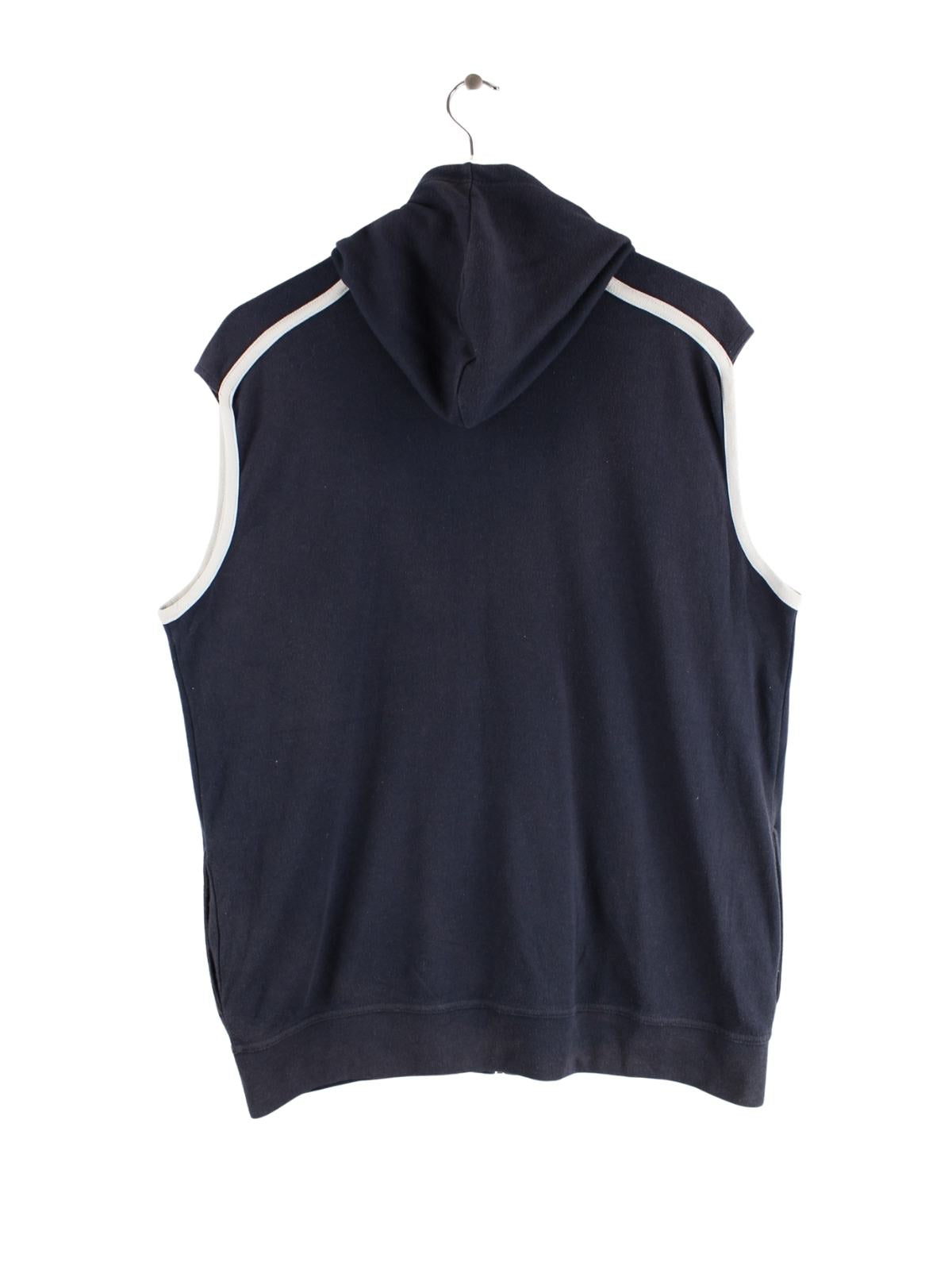 Blauer Hoodie mit langem Reißverschluß der Brand Reebok in Größe M. Er ist aus einer Baumwollmischung hergestellt und in gutem Zustand in Stock.
