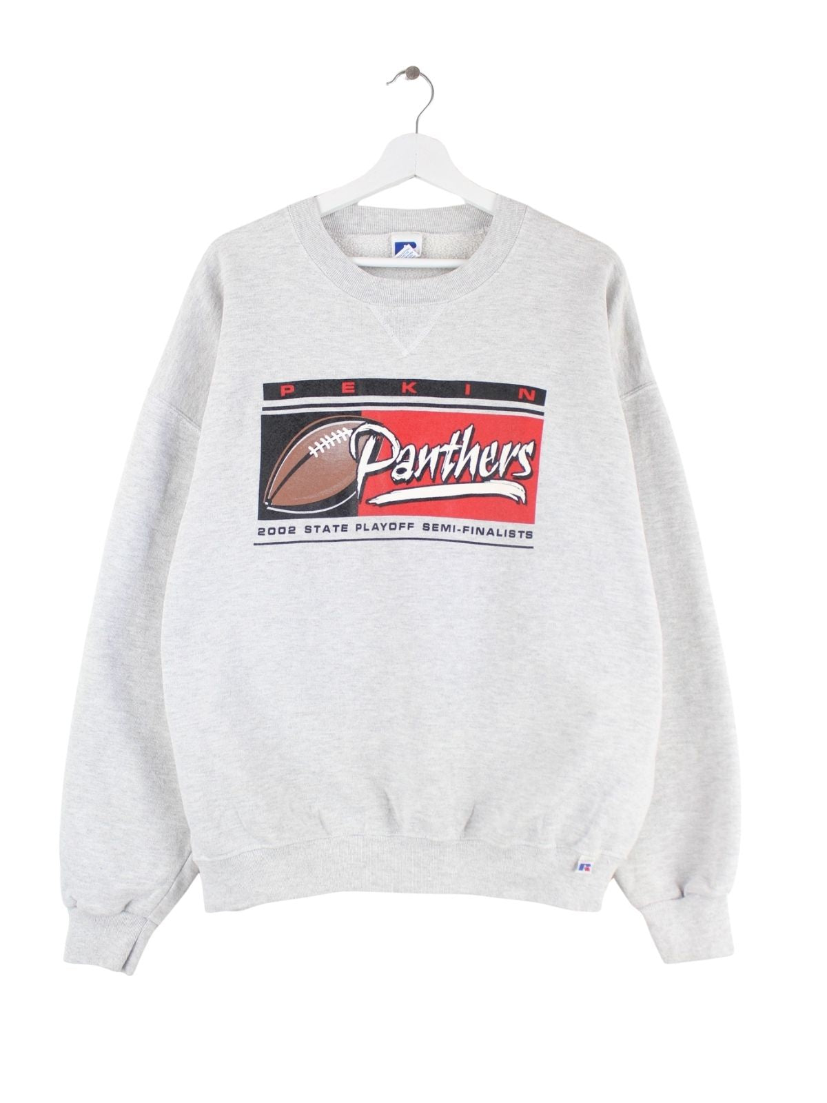 Grauer Sweater von Russell Athletic in Größe XL. Er ist aus einer Baumwollmischung hergestellt und in gutem Zustand lieferbar. Mit chiquem Panthers Print.