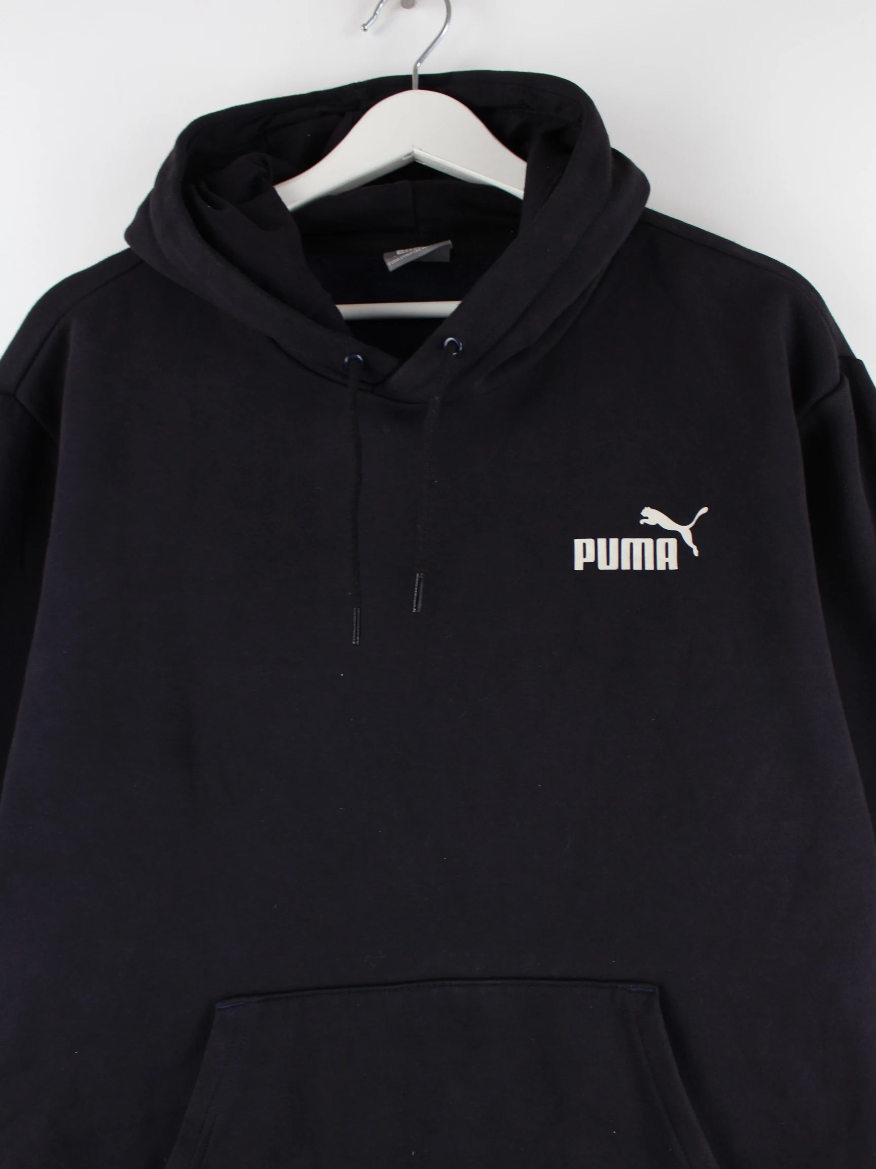 Hoodie des Labels Puma in Größe L. Er ist aus einer Baumwollmischung hergestellt und in Schwarz im Bestand. Mit chiquem 00s Print.