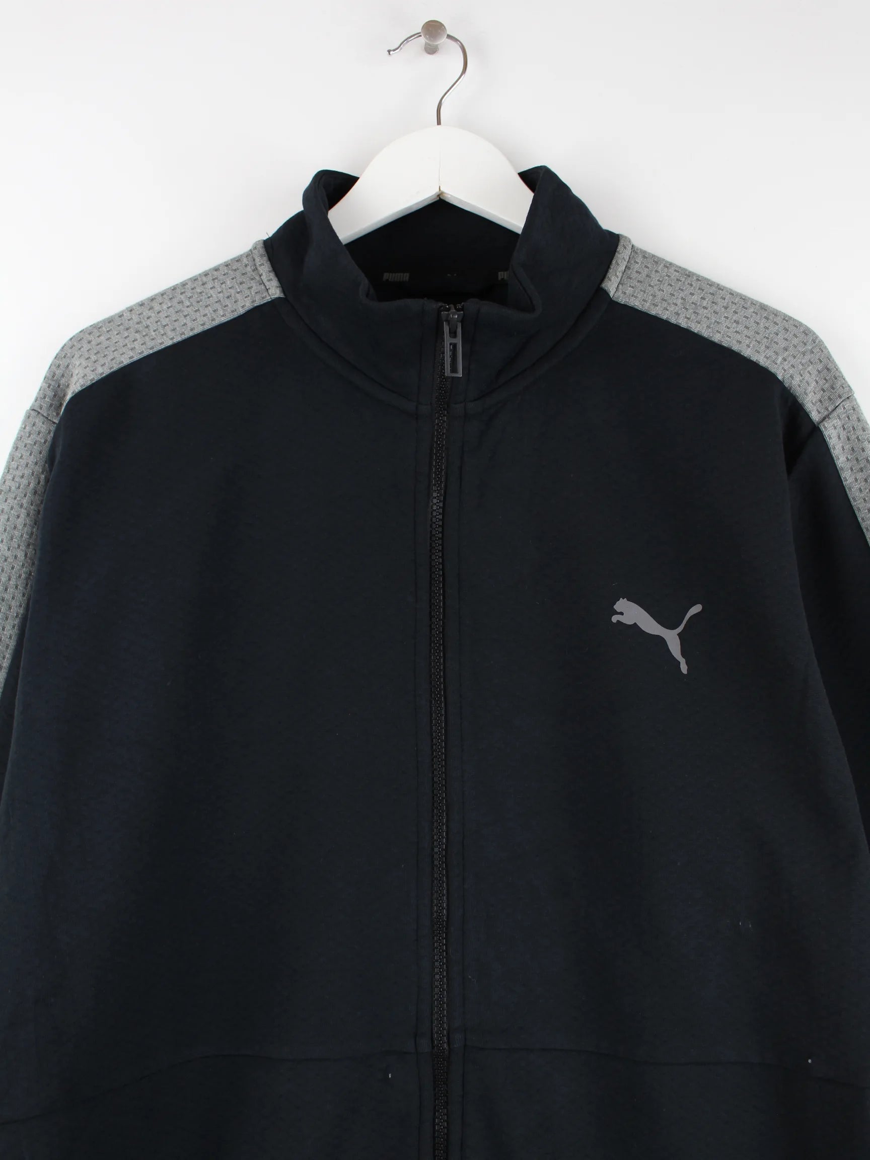 Trainingsjacke aus dem Hause Puma in Größe XL. Sie ist aus Synthetik gefertigt und in Schwarz bei uns vorrätig.