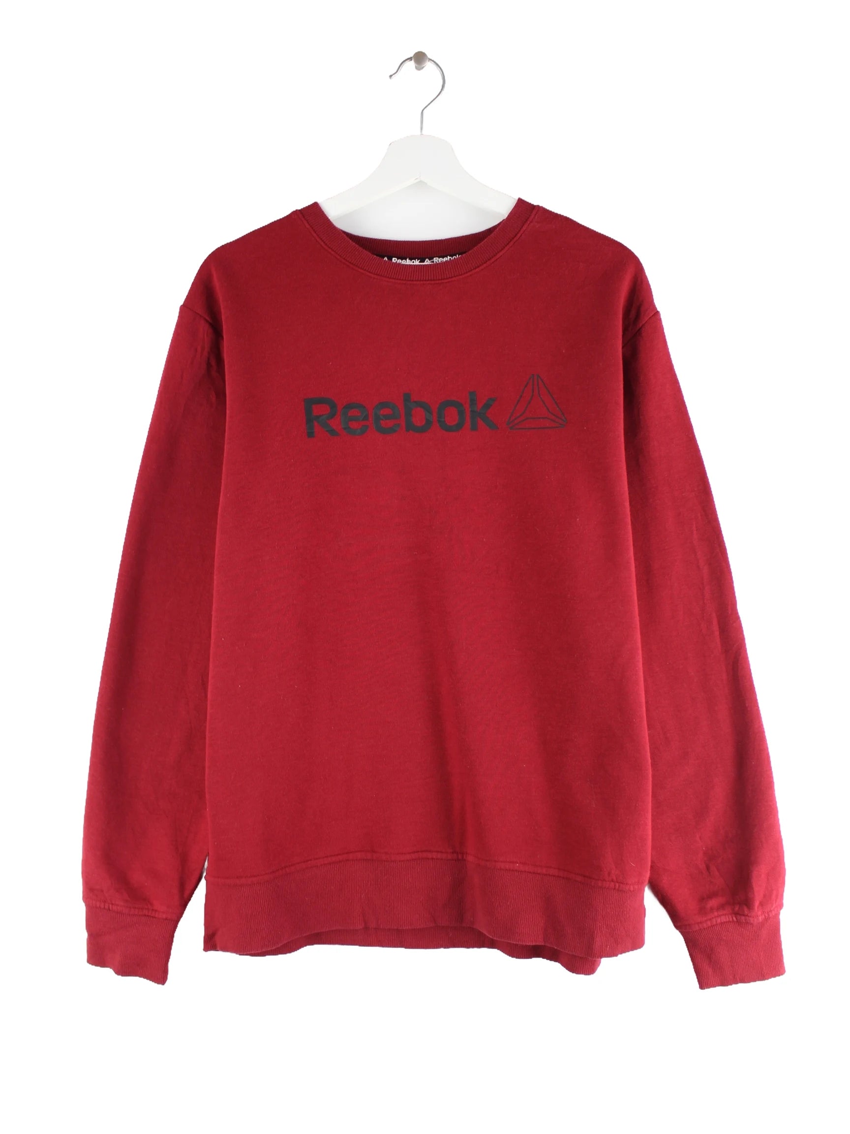 Roter Sweater der Marke Reebok in Größe L. Er ist aus einer Baumwollmischung hergestellt und in sehr gutem Zustand bei uns vorrätig. Mit seltenem Logo Print.