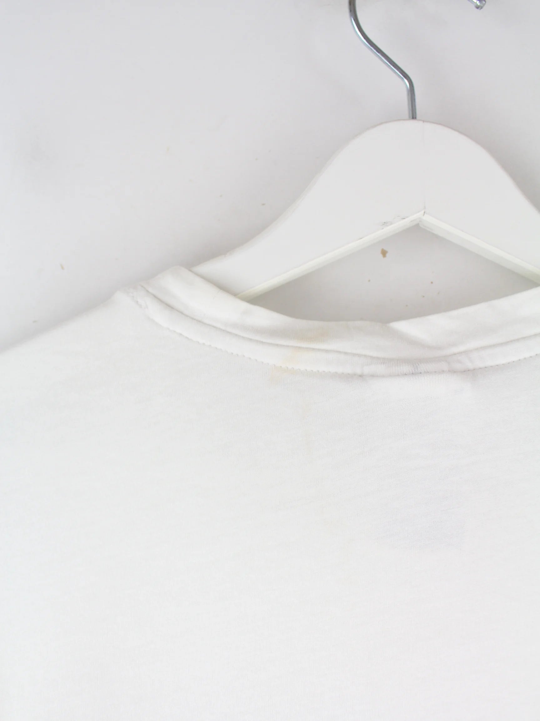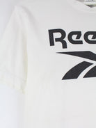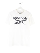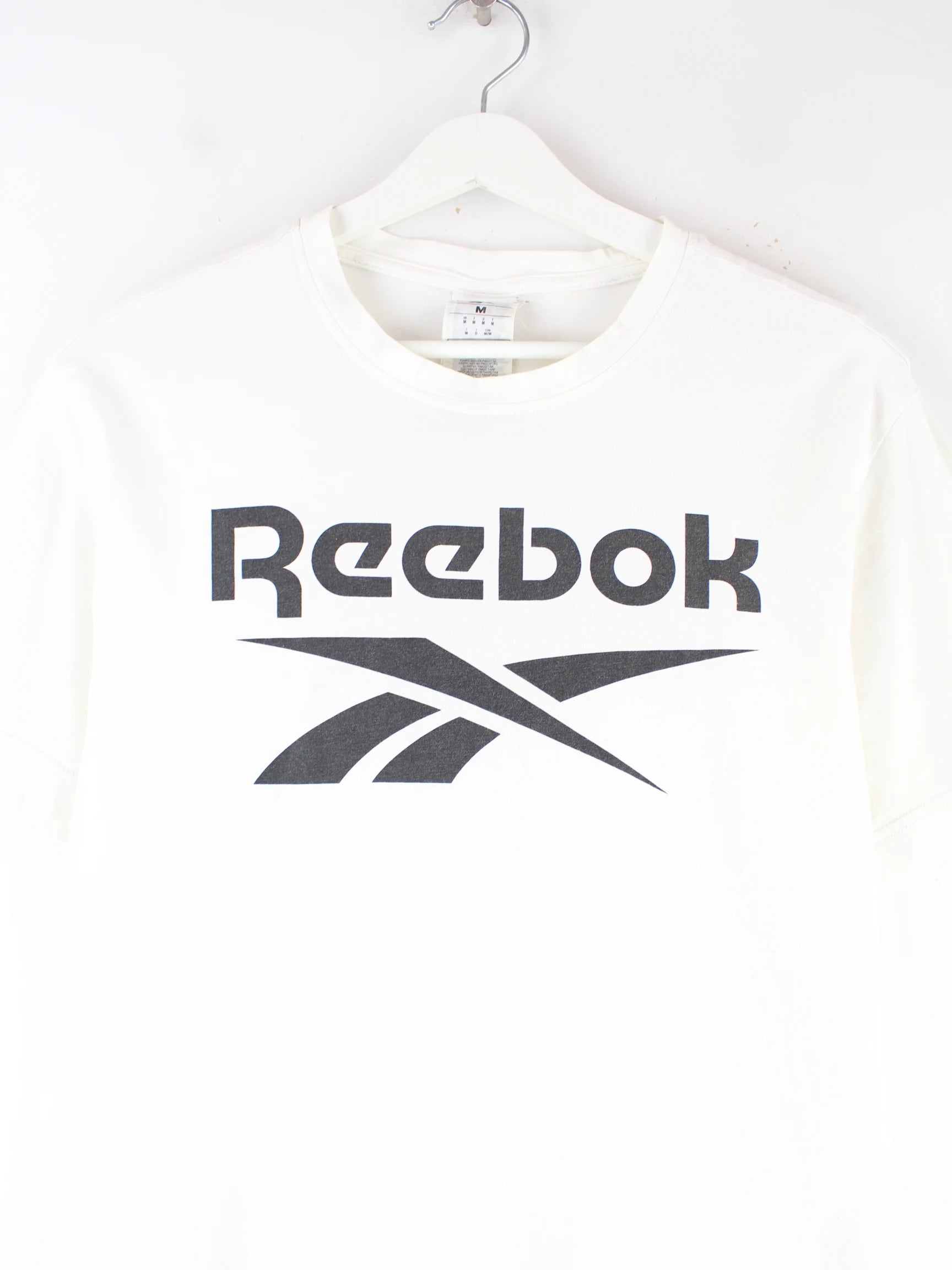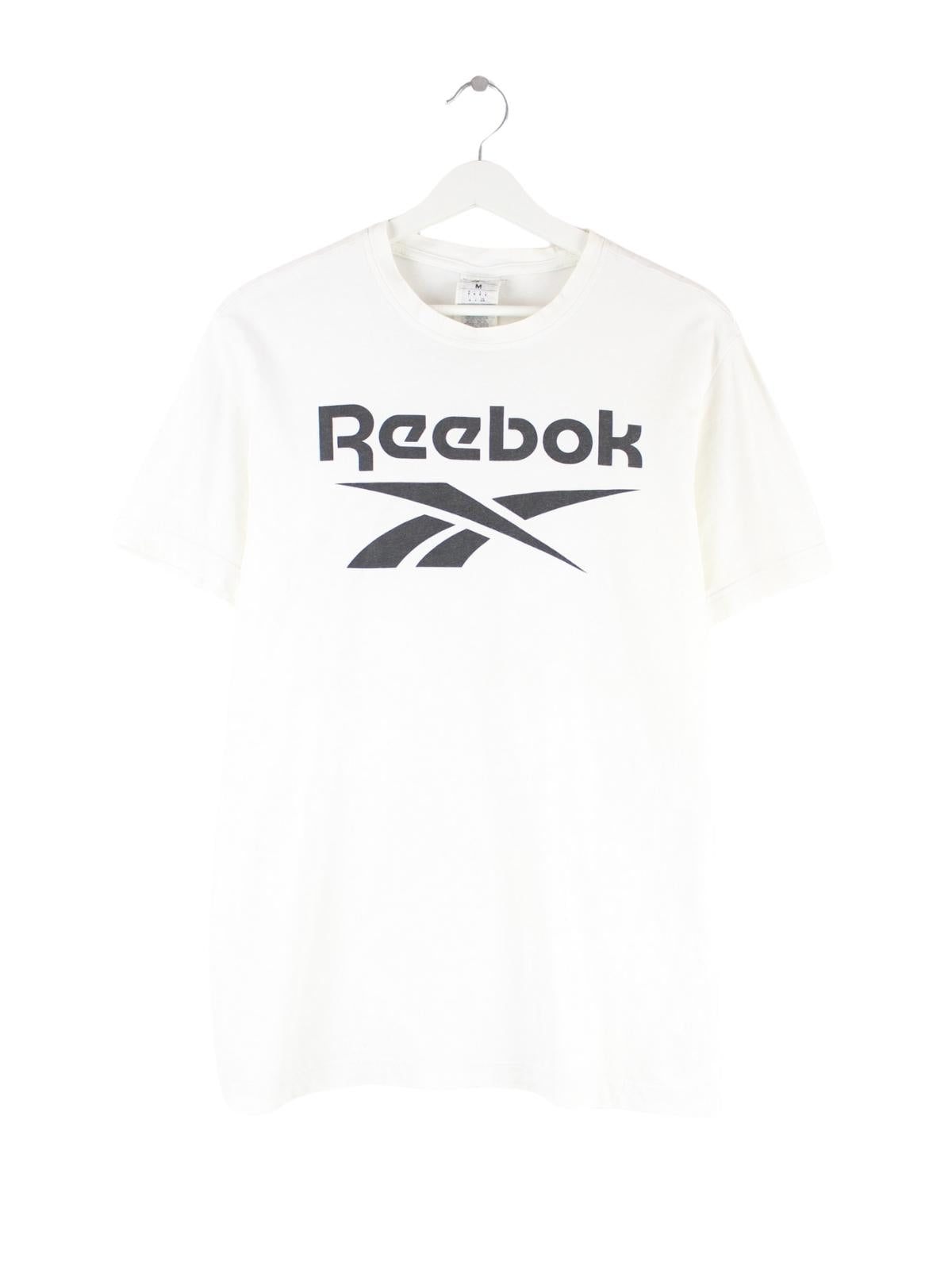Weißes T-Shirt aus dem Hause Reebok in Größe M. Es ist aus einer Baumwollmischung gefertigt. Den Zustand würden wir als 'In Ordnung' bezeichnen (vergl. Bilder).Mit tollem Logo Print.