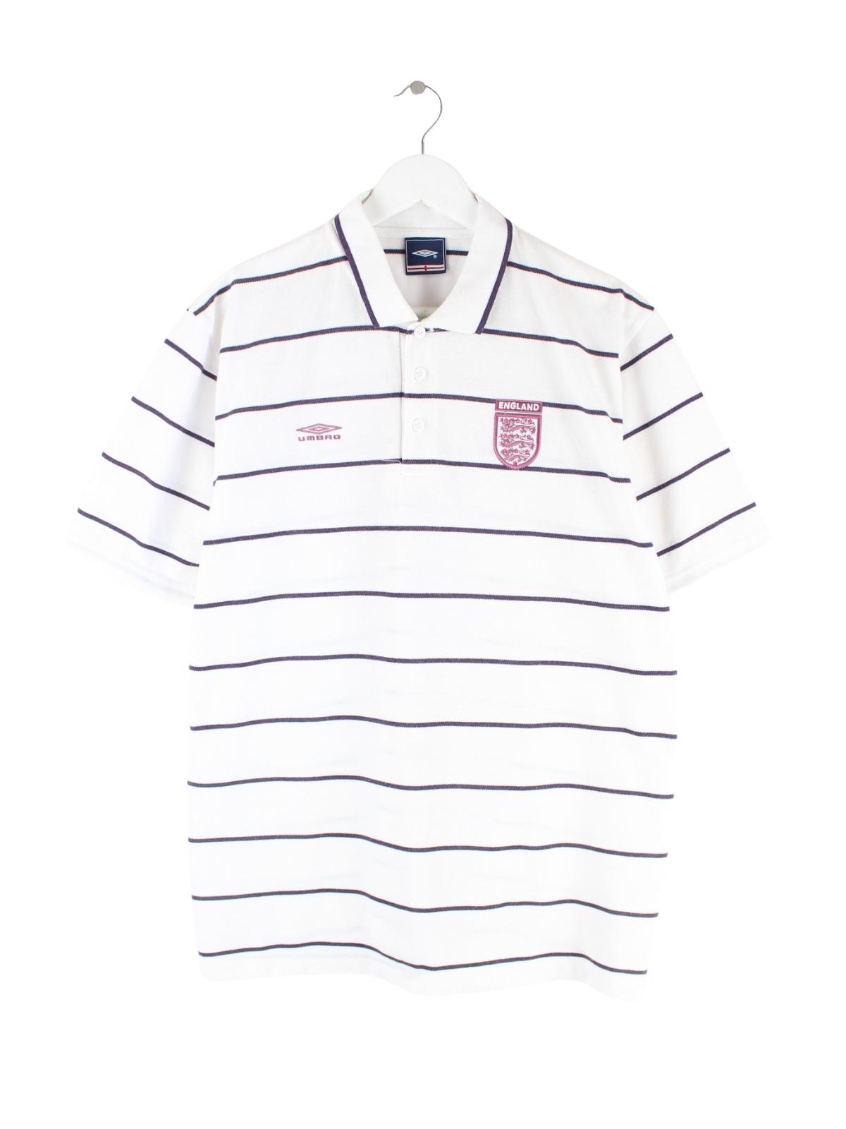 Poloshirt des Labels Umbro in Größe XL. Es ist aus einer Baumwollmischung gefertigt und in Weiß zu haben.