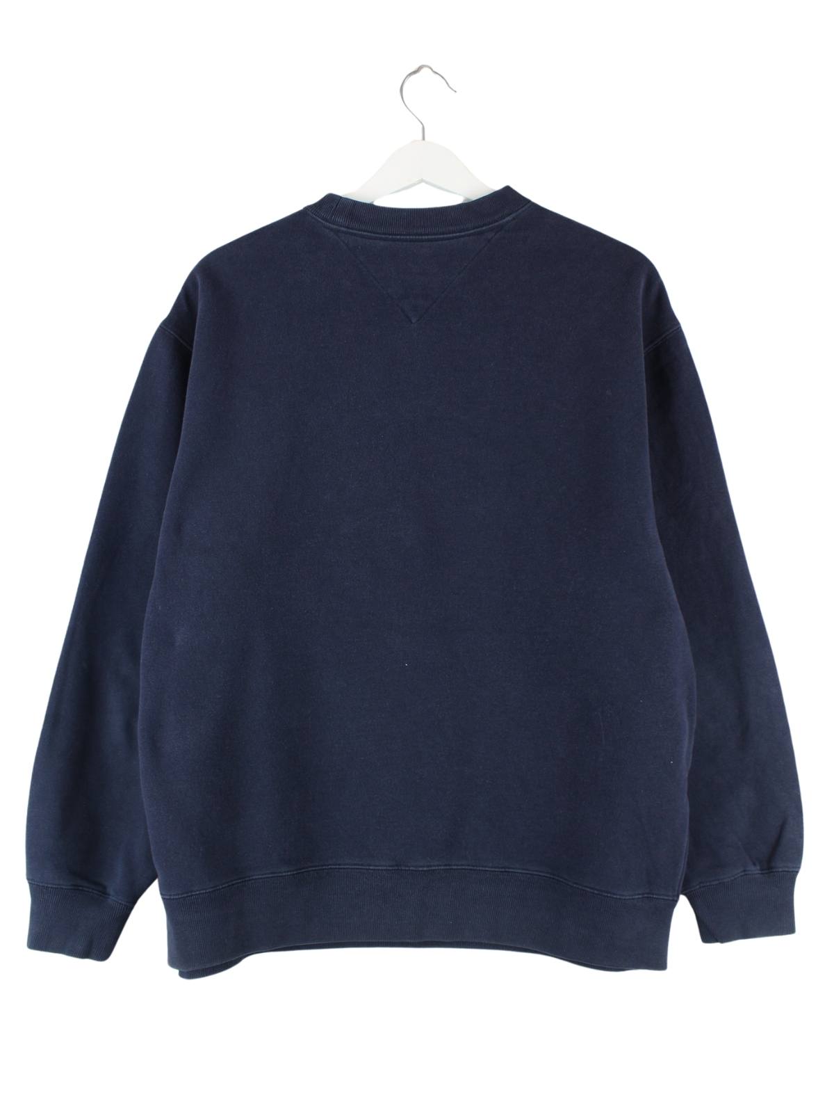 Blue sweater with embroidery from the label Tommy Hilfiger in size M. It is made of a cotton blend and is in good condition.