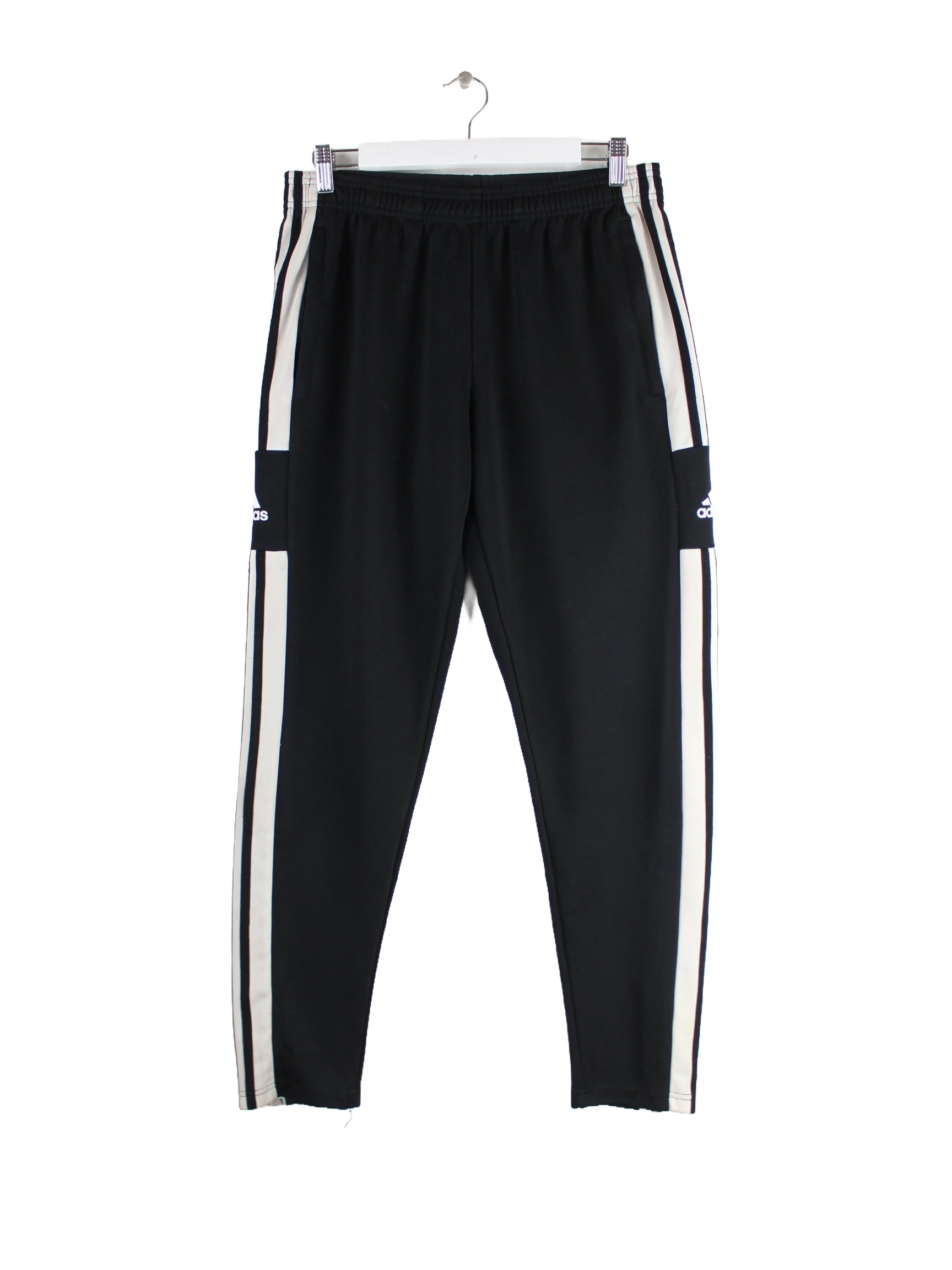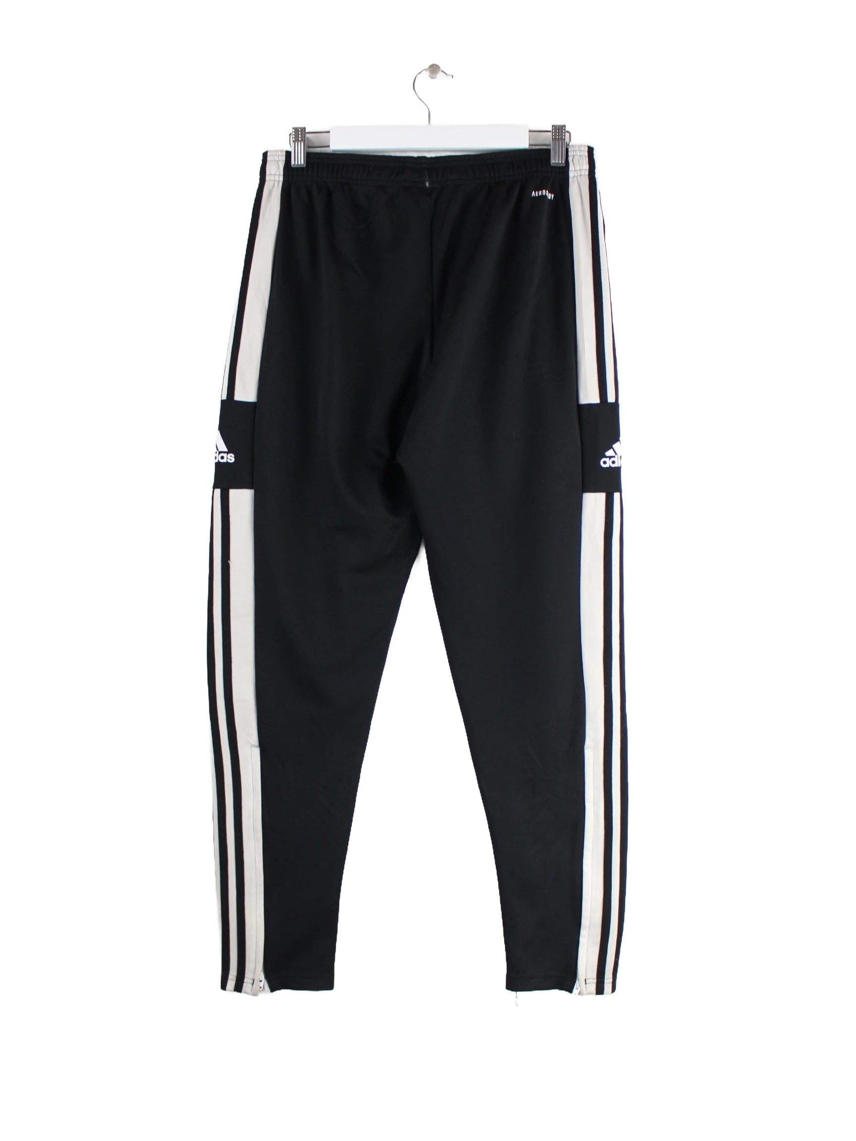 Schwarze Track Pants des Labels Adidas in Größe M. Sie sind aus Synthetik angefertigt. Den Zustand würden wir als 'In Ordnung' bezeichnen (vergl. Bilder).
