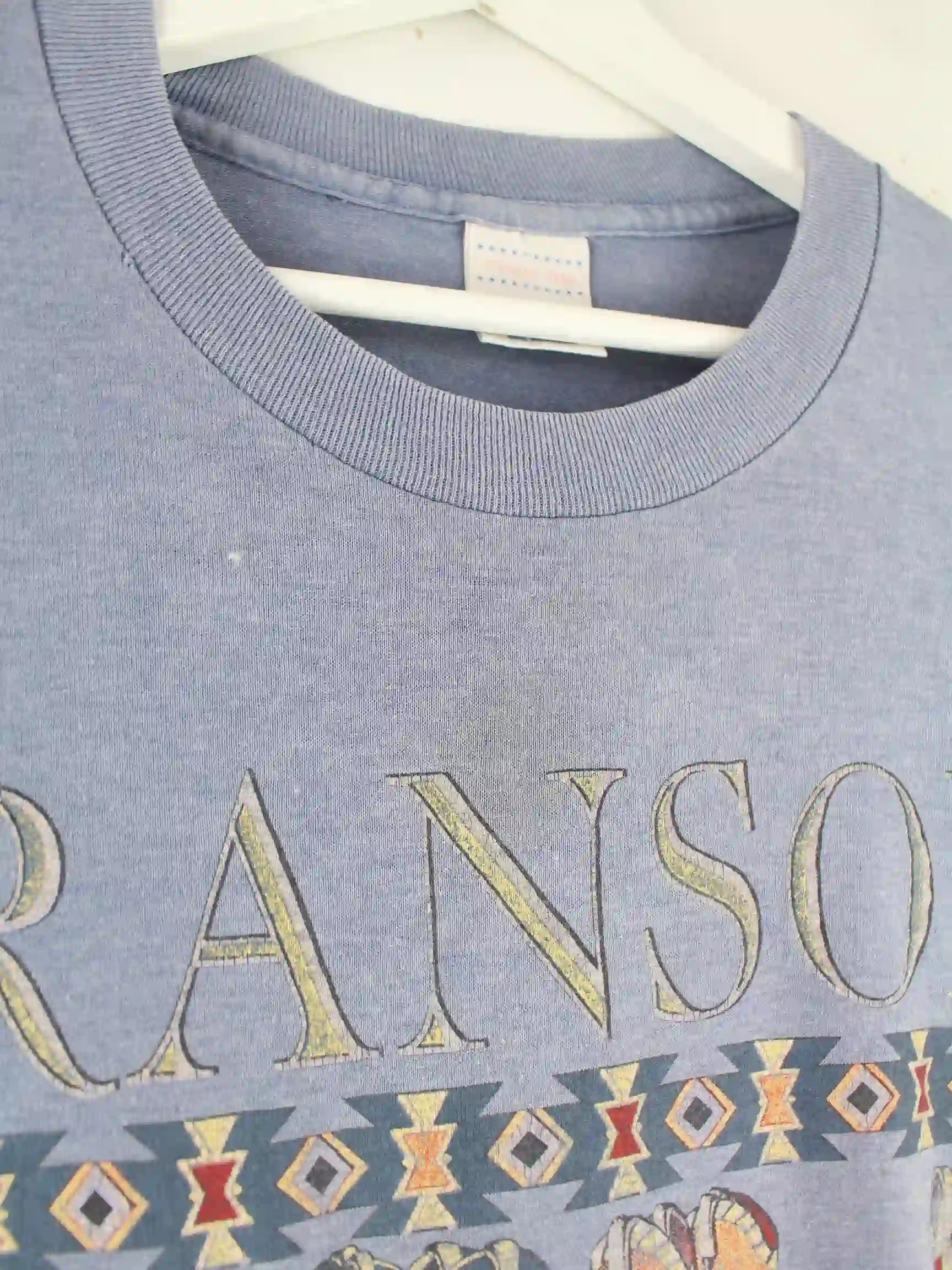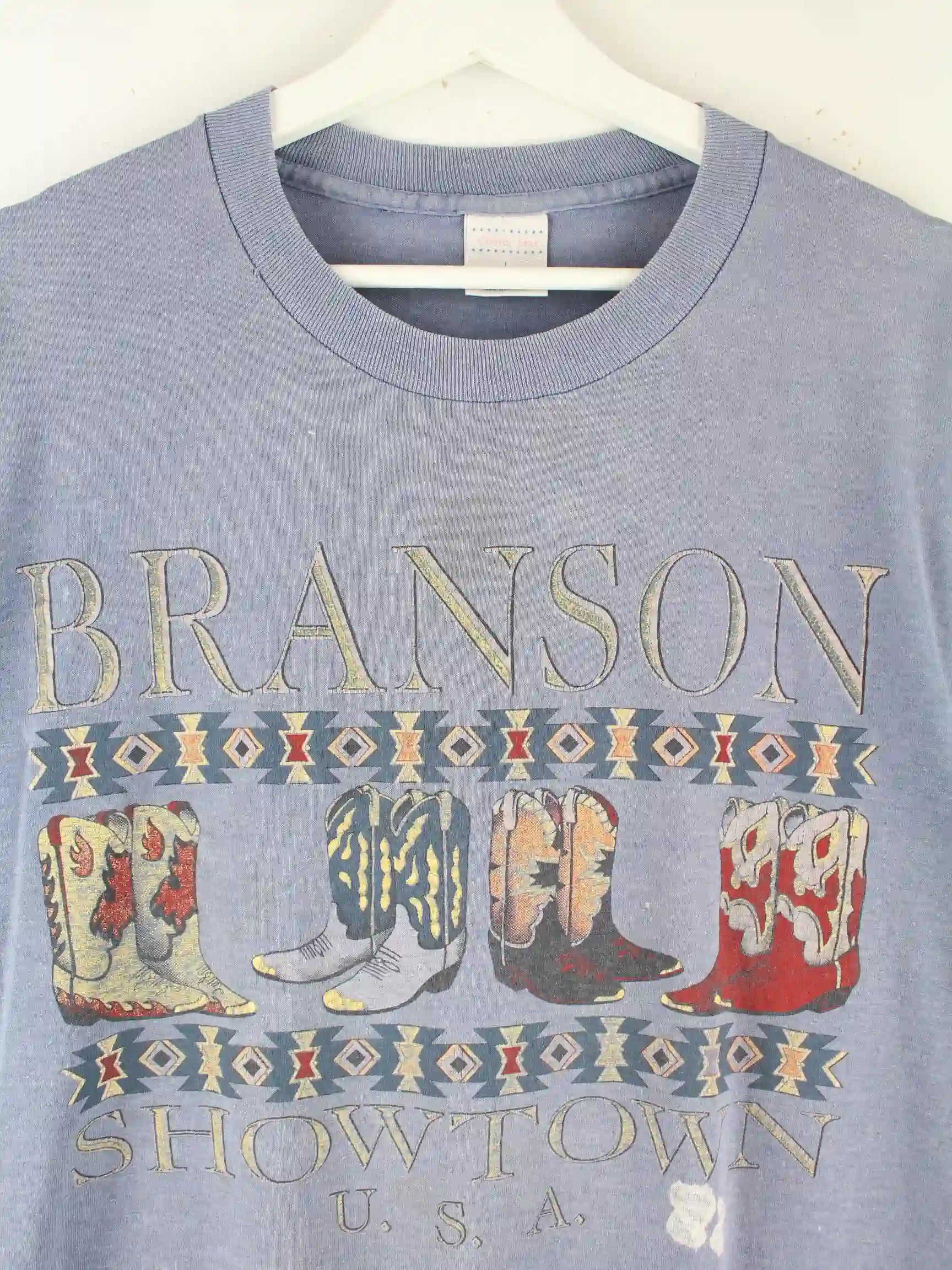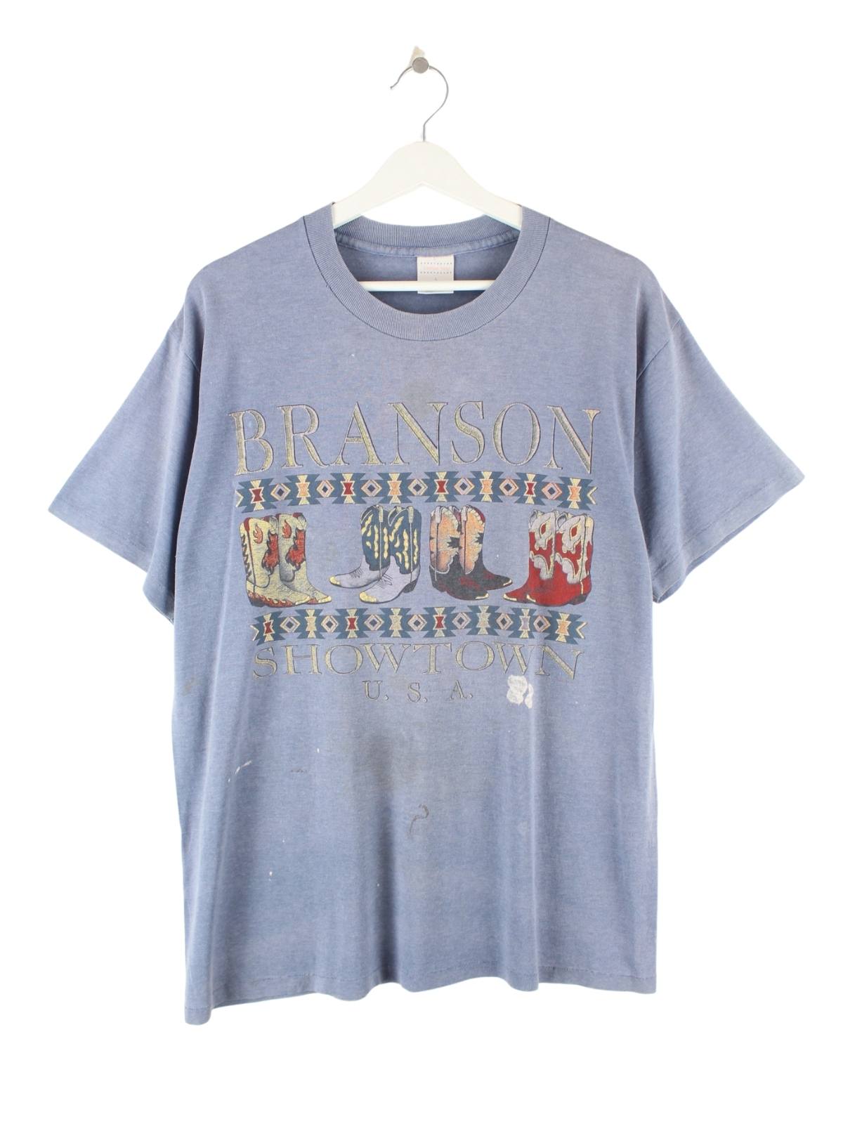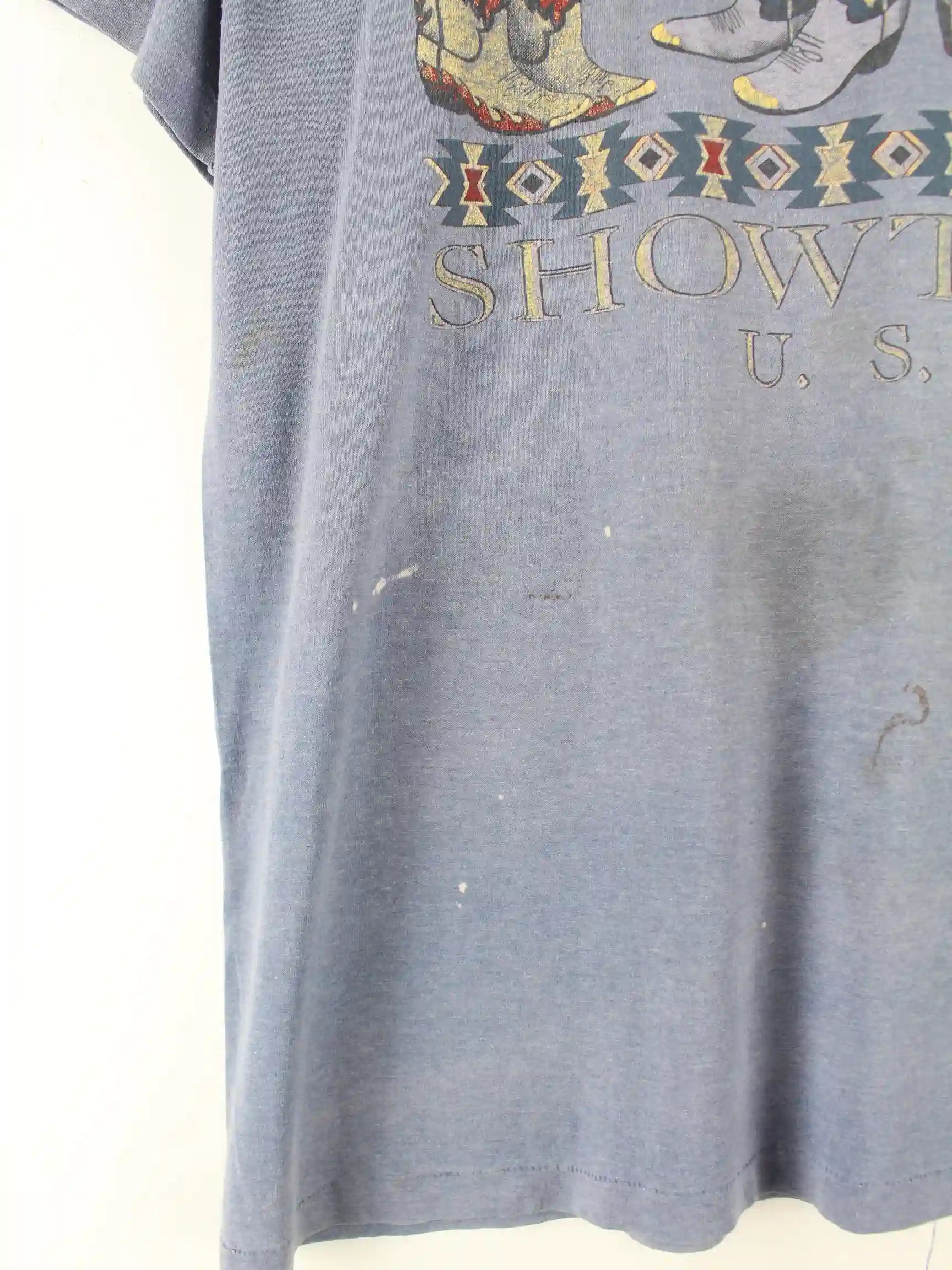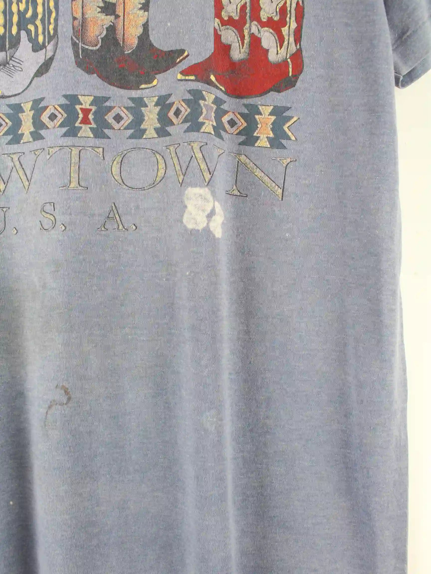 Vintage 90s Cowboy Boots Print Single Stitch T-Shirt Blau L