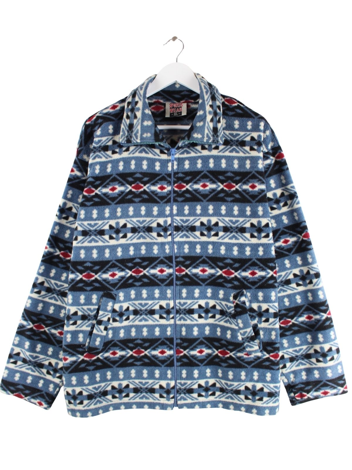 Vintage 90s Crazy Pattern Fleece Jacke Blau L