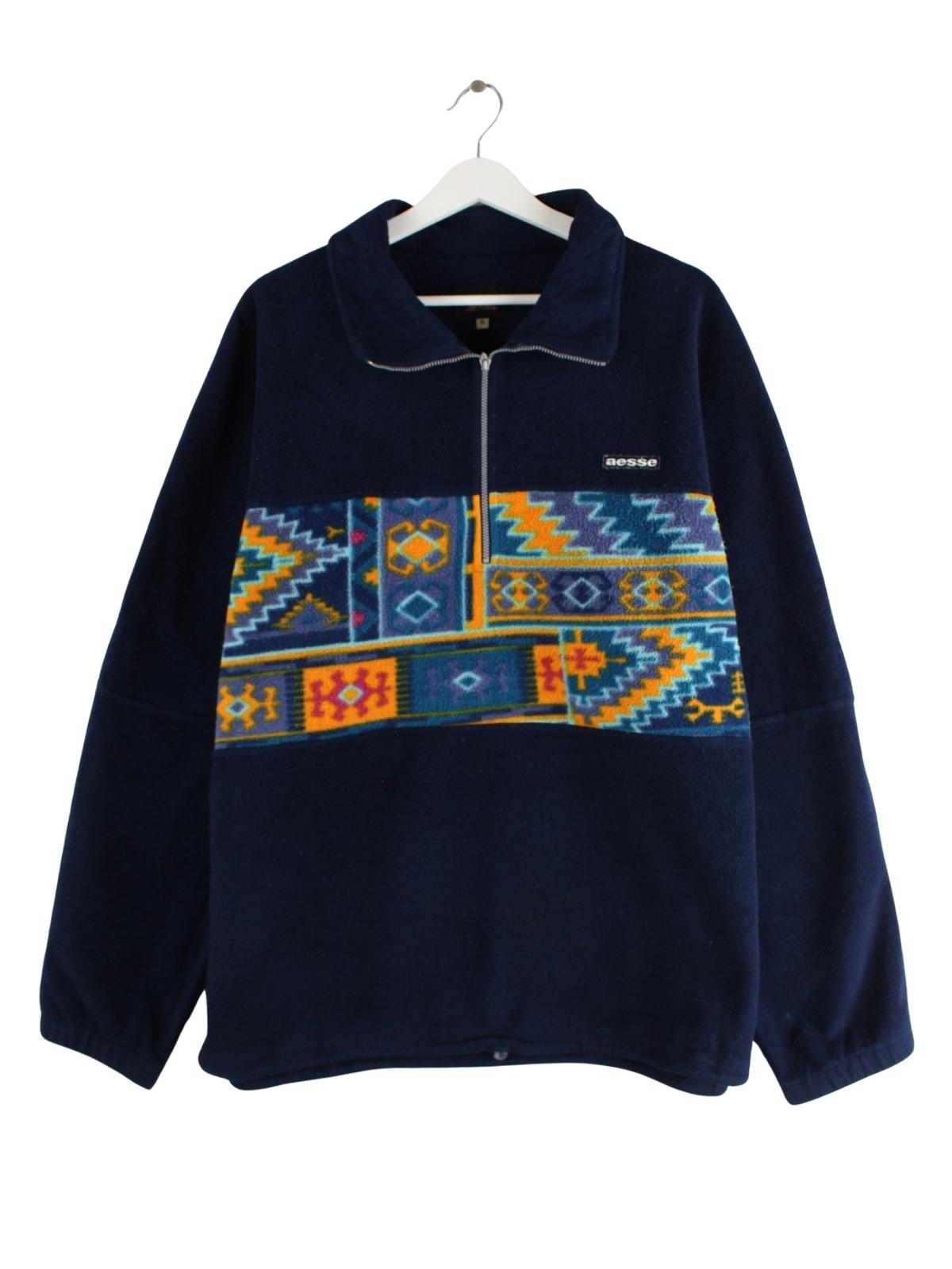 Vintage 90s Crazy Pattern Half Zip Fleece Jacke Blau XL