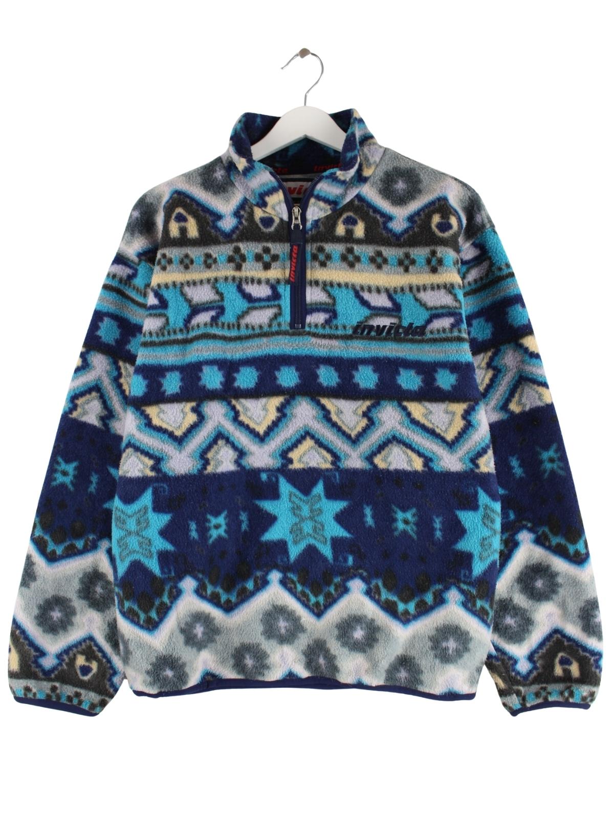 Vintage 90s Crazy Pattern Half Zip Fleece Jacke Blau L