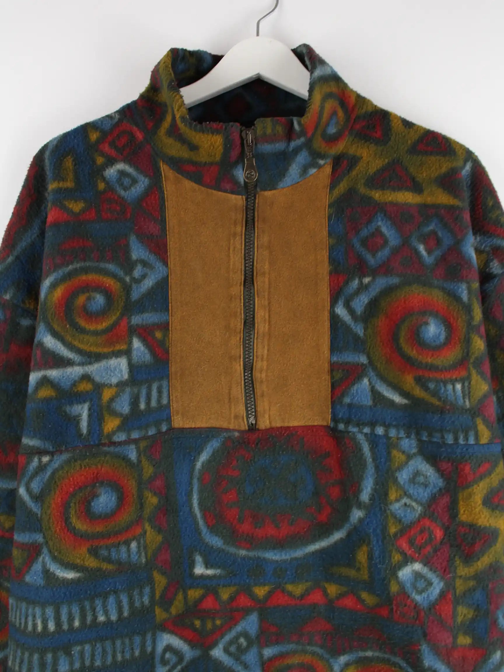 Vintage 90s Crazy Pattern Fleece Half Zip Sweater Mehrfarbig S