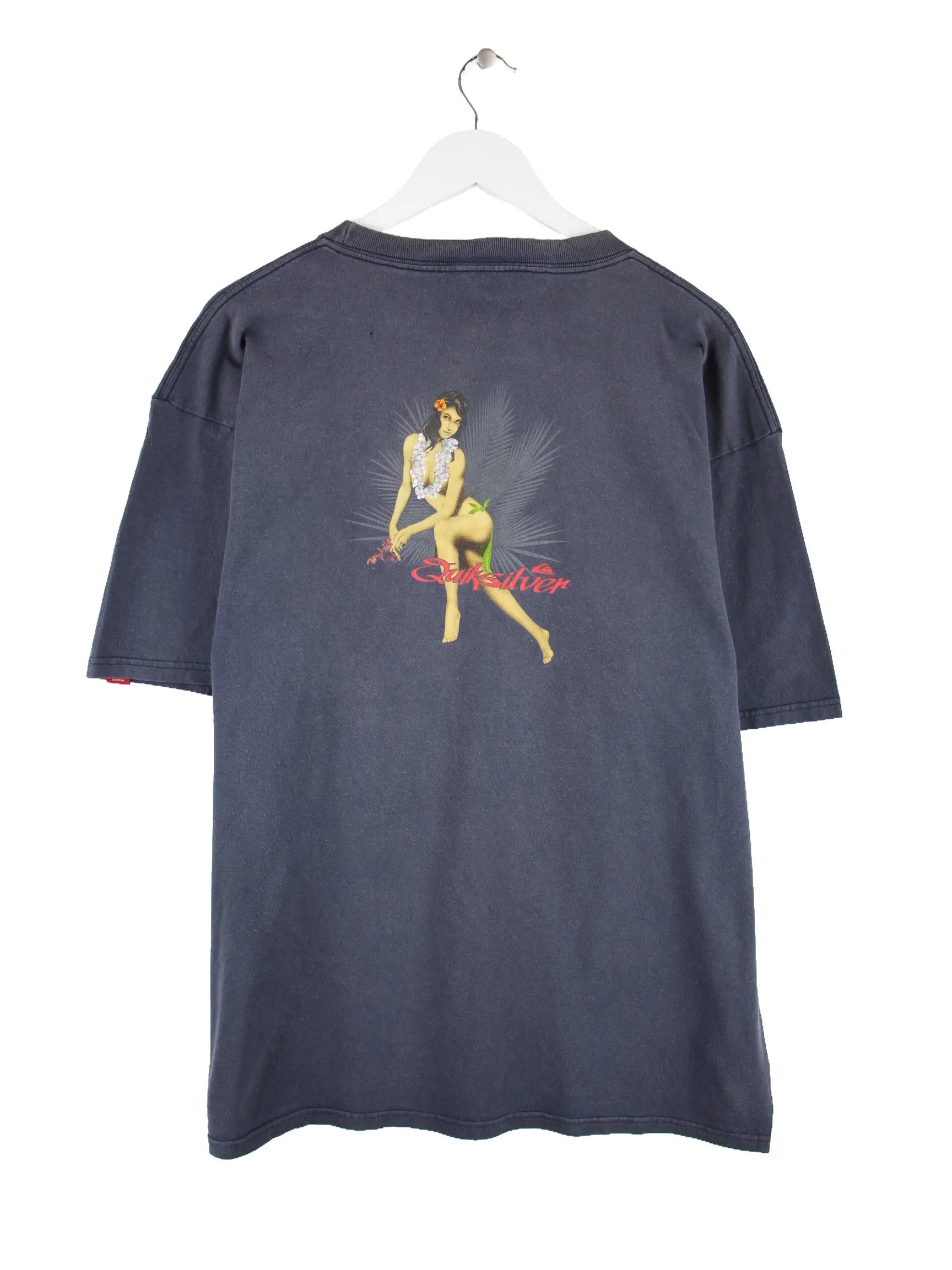 Quiksilver 00s Hawaii Girl Print T-Shirt Blau XL