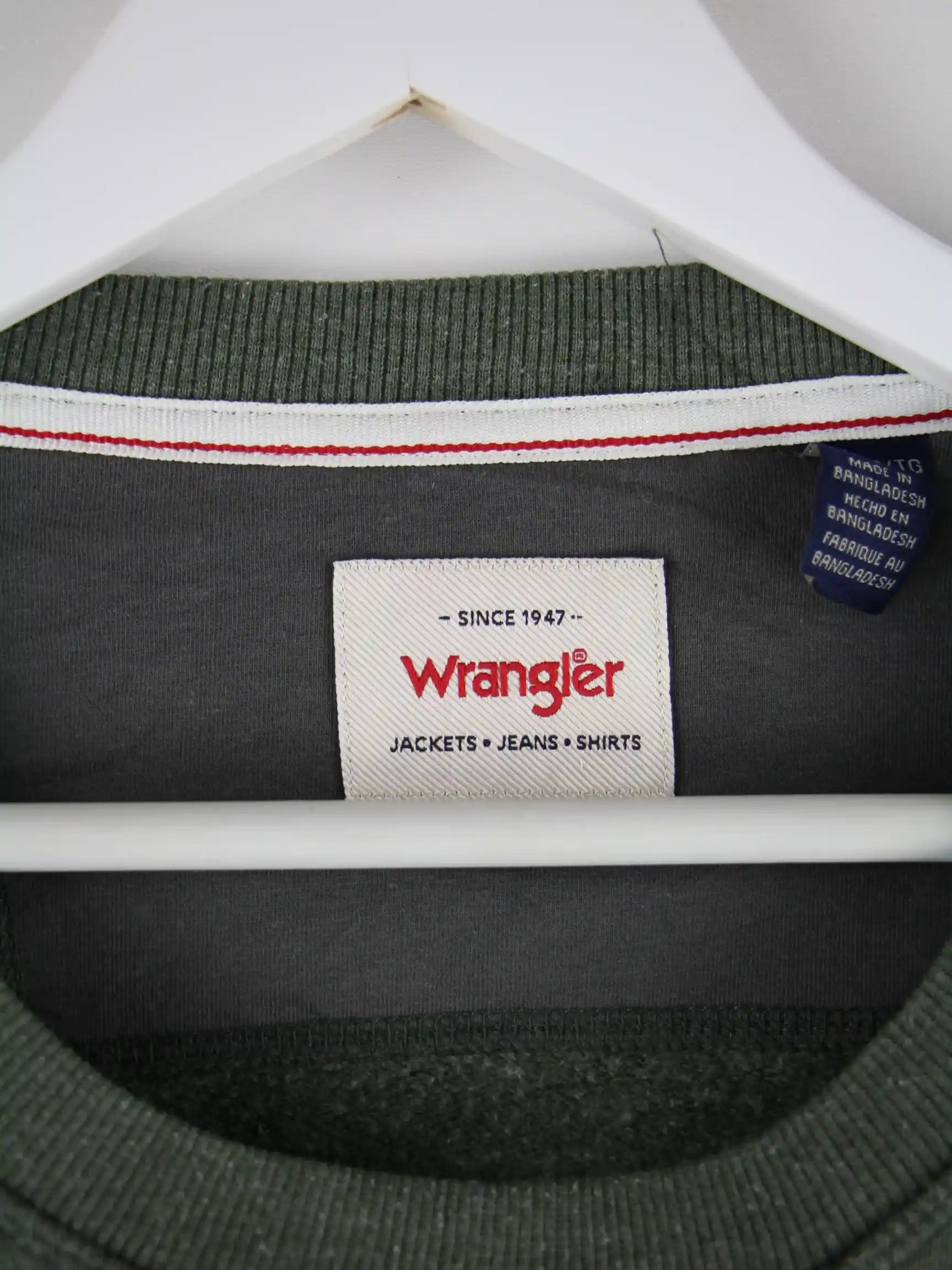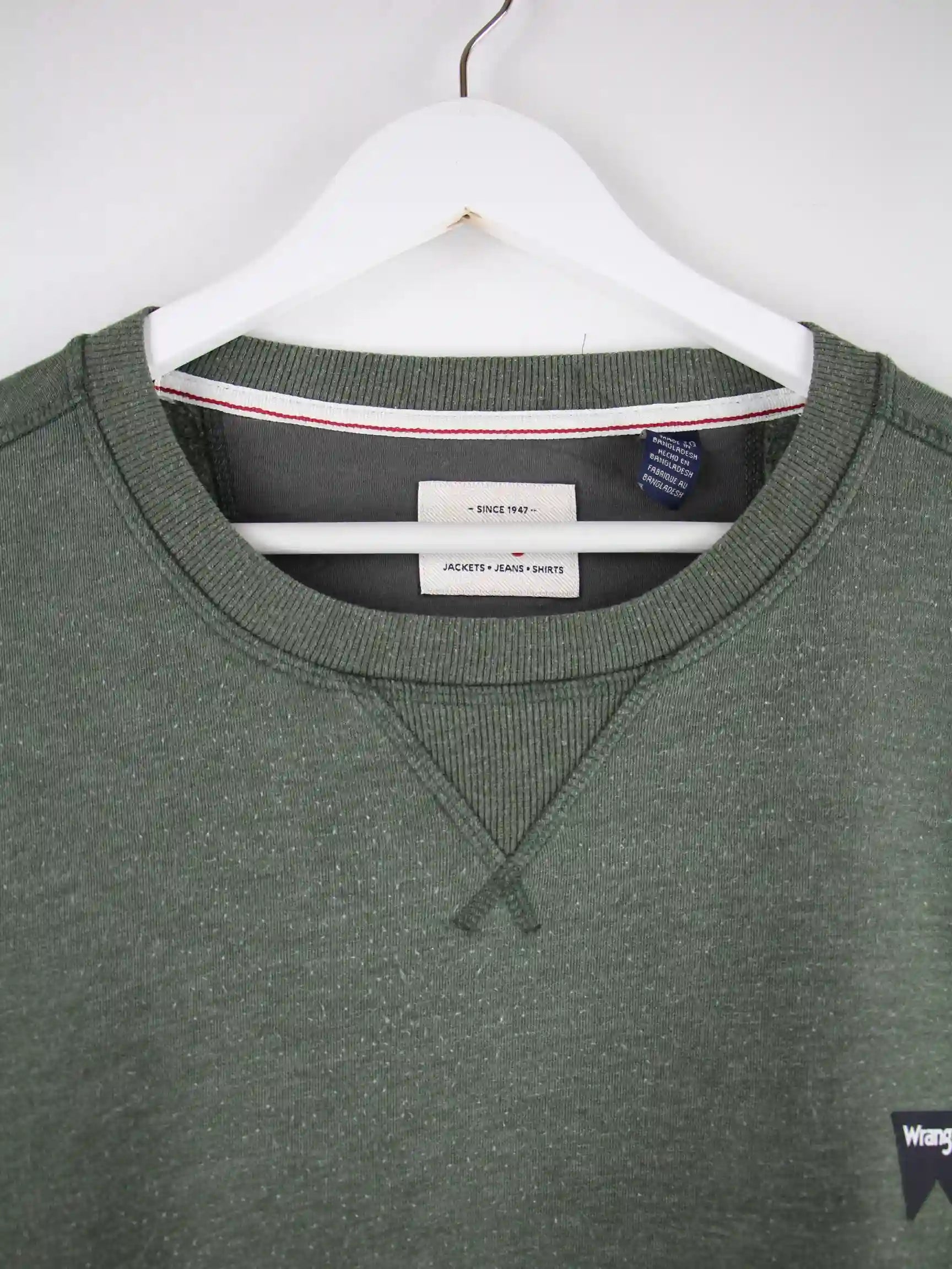 Grüner Sweater vom Label Wrangler in Größe XL. Er ist aus einer Baumwollmischung gemacht. Den Zustand würden wir als 'In Ordnung' bezeichnen (vergl. Bilder).
