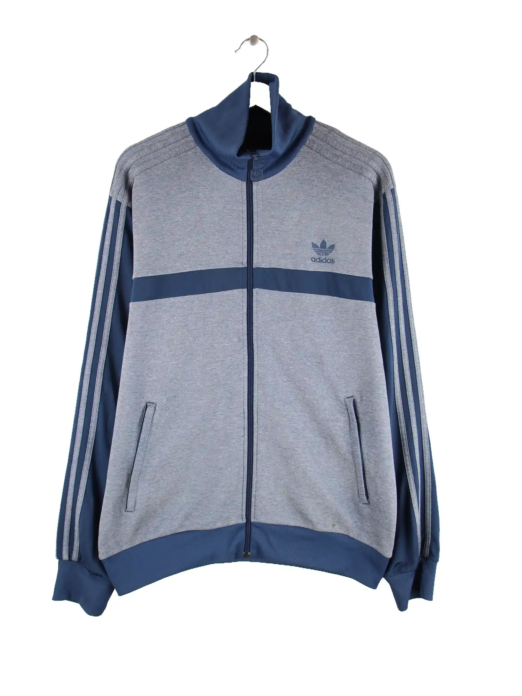 Trainingsjacke des Labels Adidas in Größe L. Sie ist aus Synthetik und in Grau zu haben.