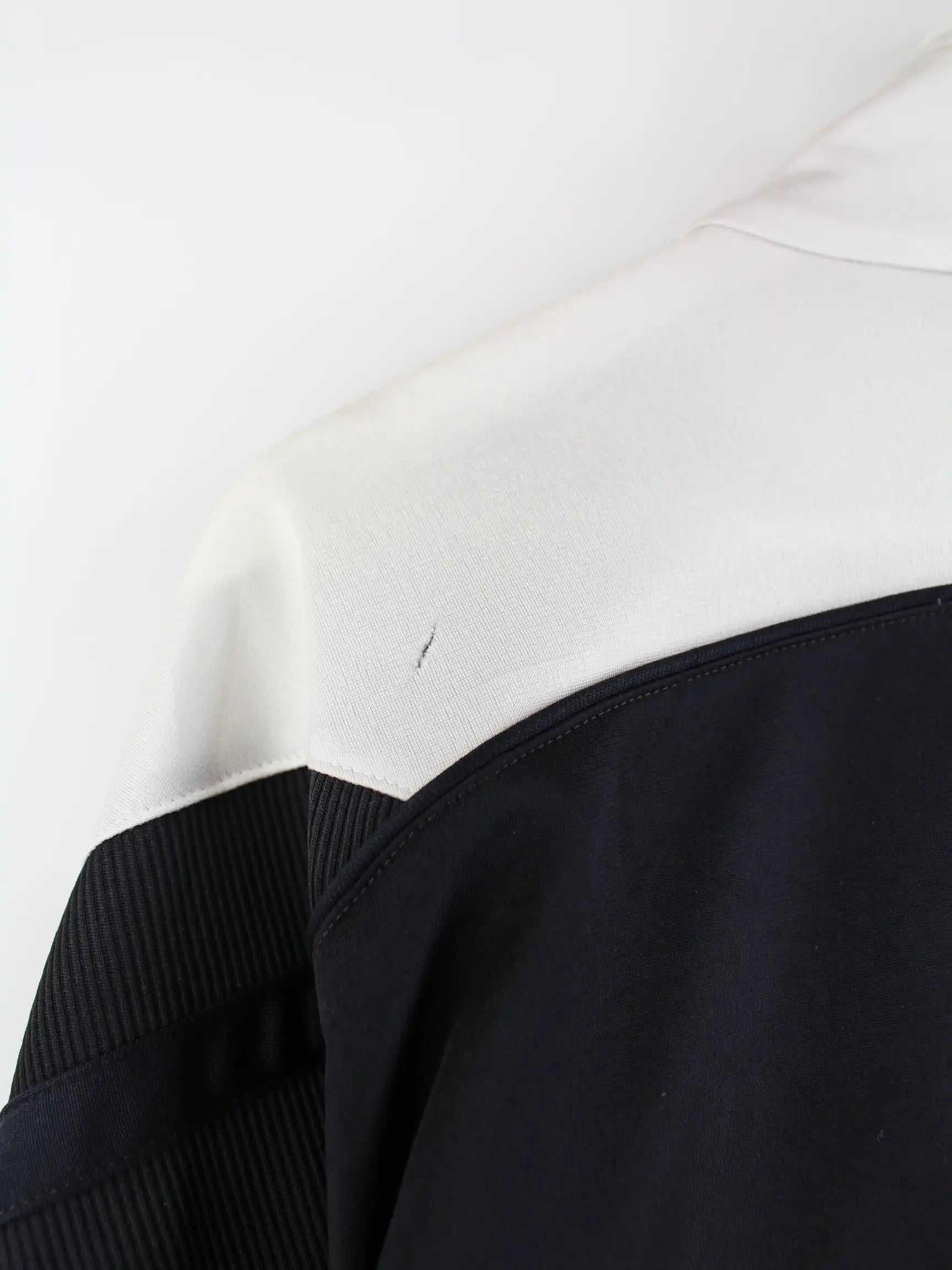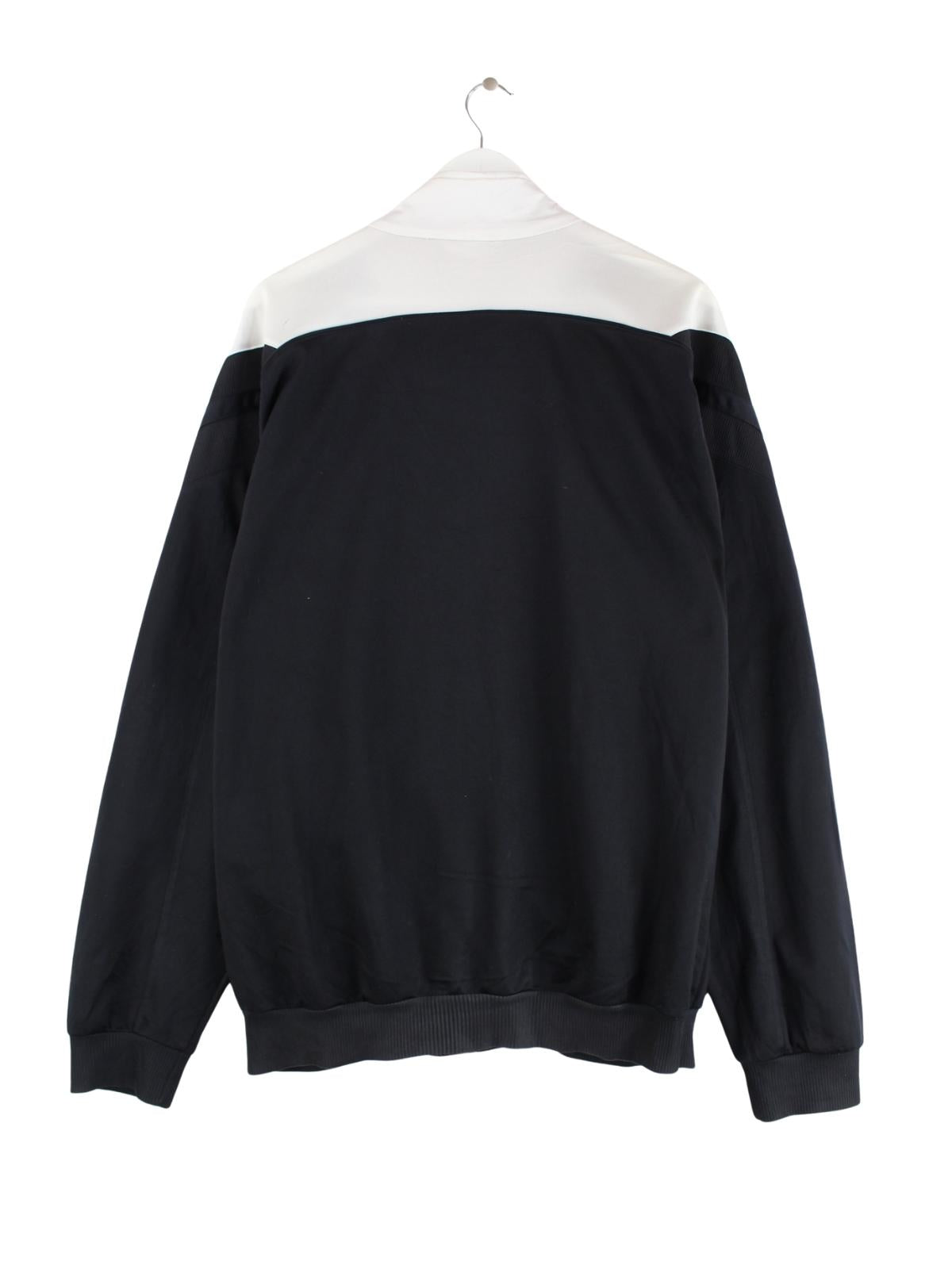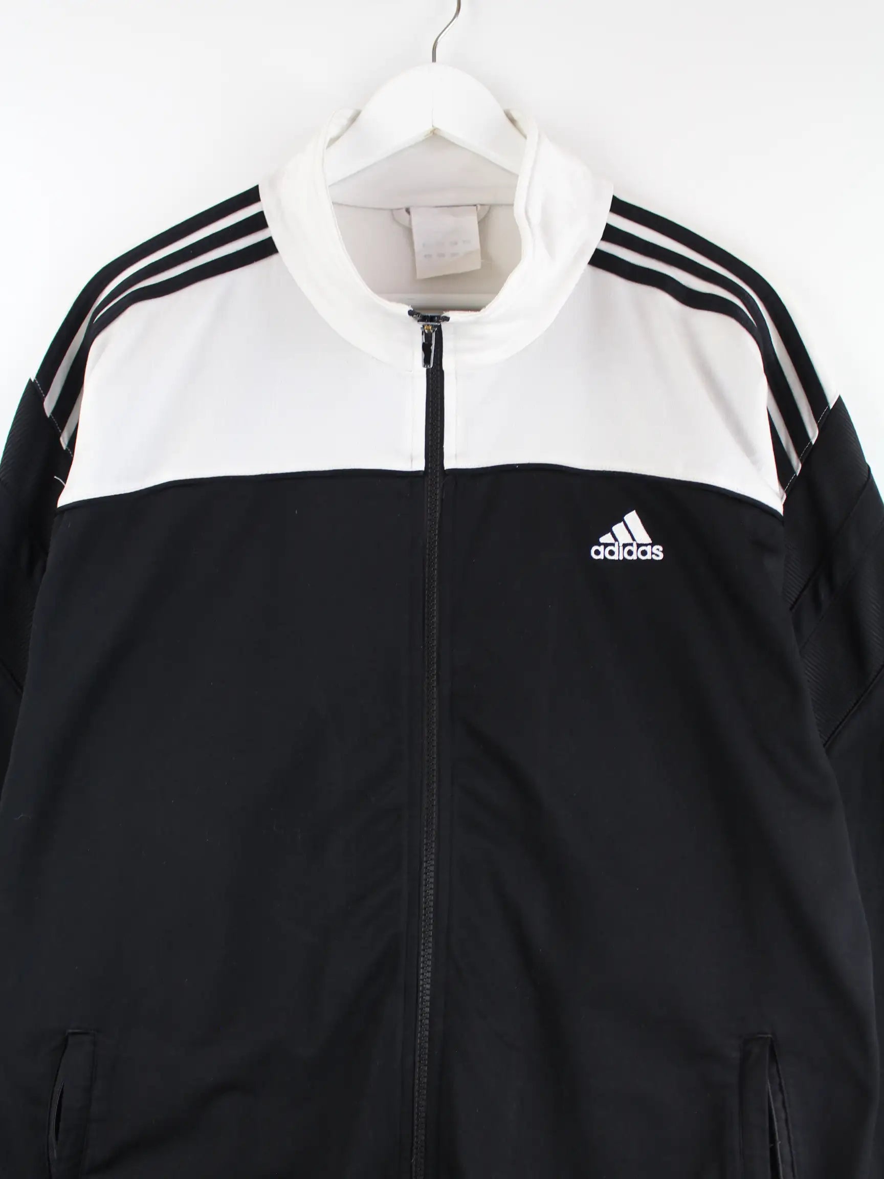 Schwarze Trainingsjacke der Marke Adidas in Größe XXL aus den 2000er Jahren. Sie ist aus Synthetik angefertigt. Den Zustand würden wir als 'In Ordnung' bezeichnen (vergl. Bilder).