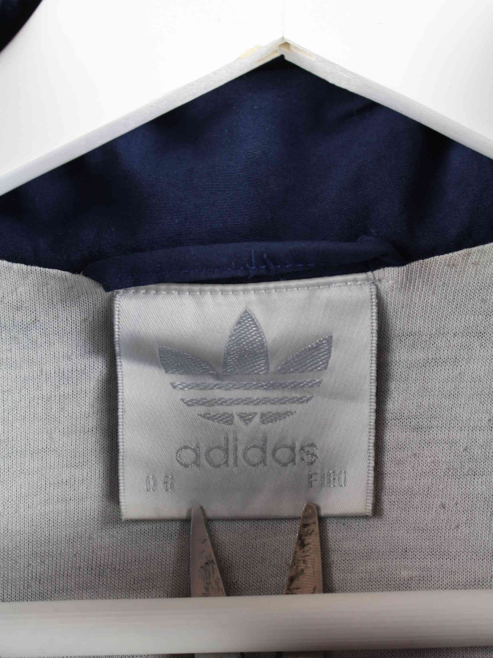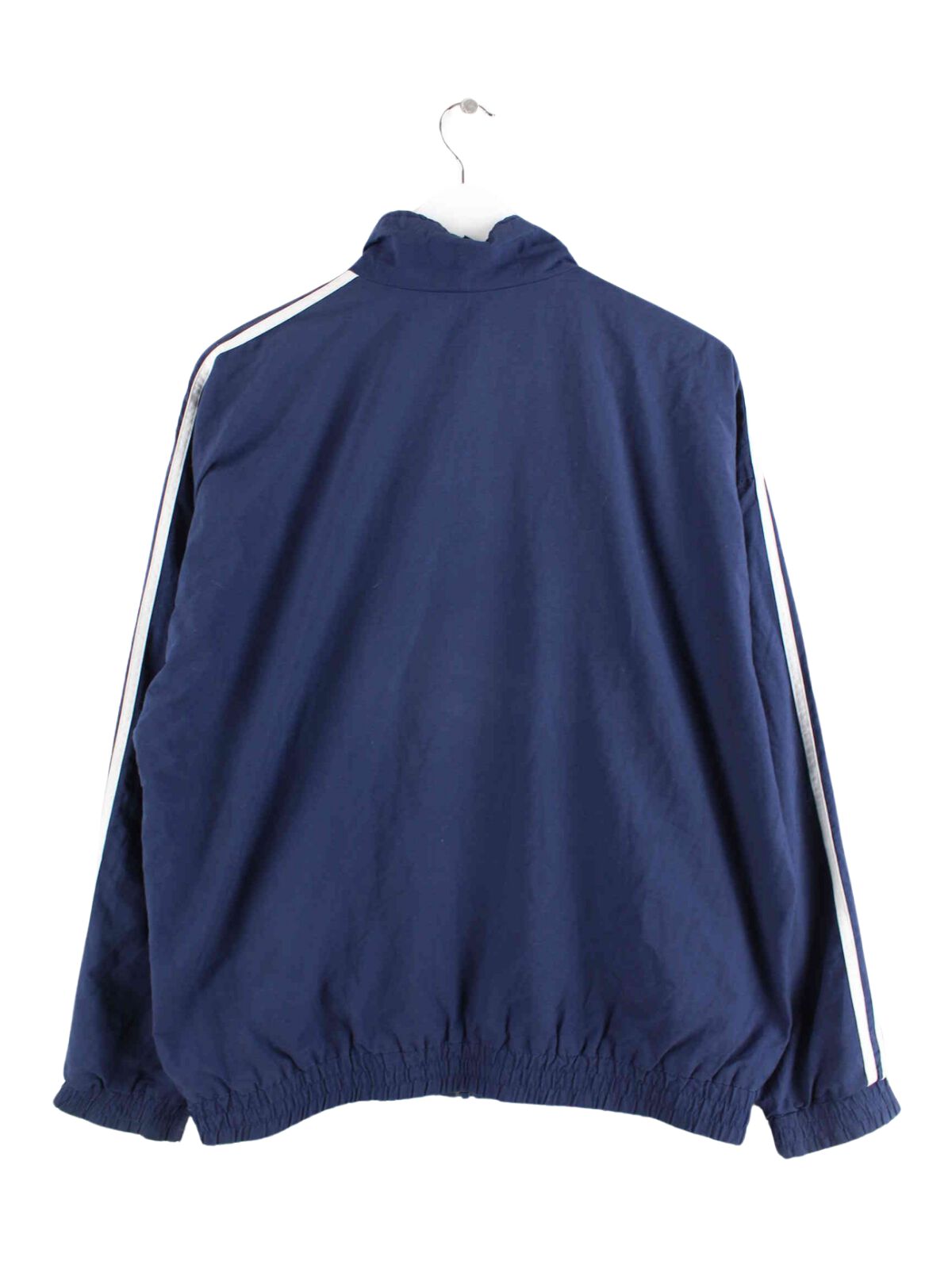 Blue training jacket from the Adidas brand from the 80s in size L. It is made of synthetic material and is in good condition.
