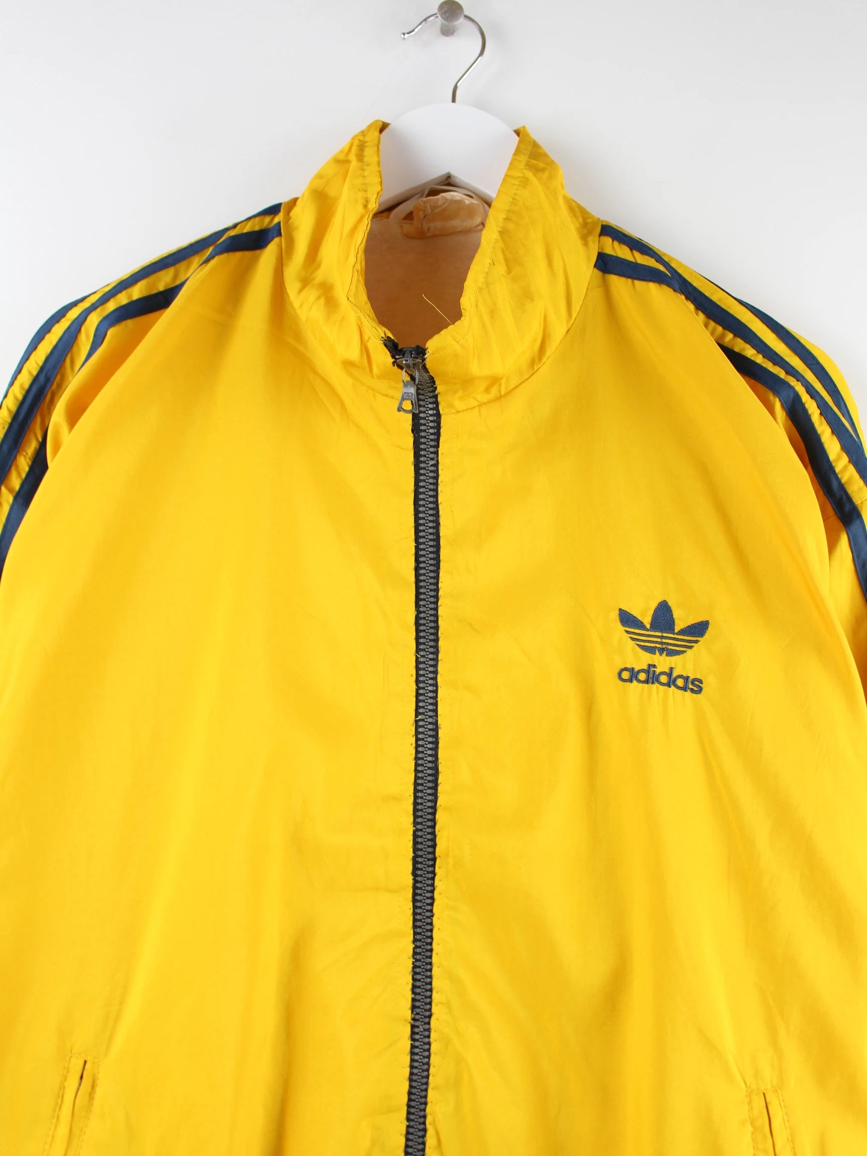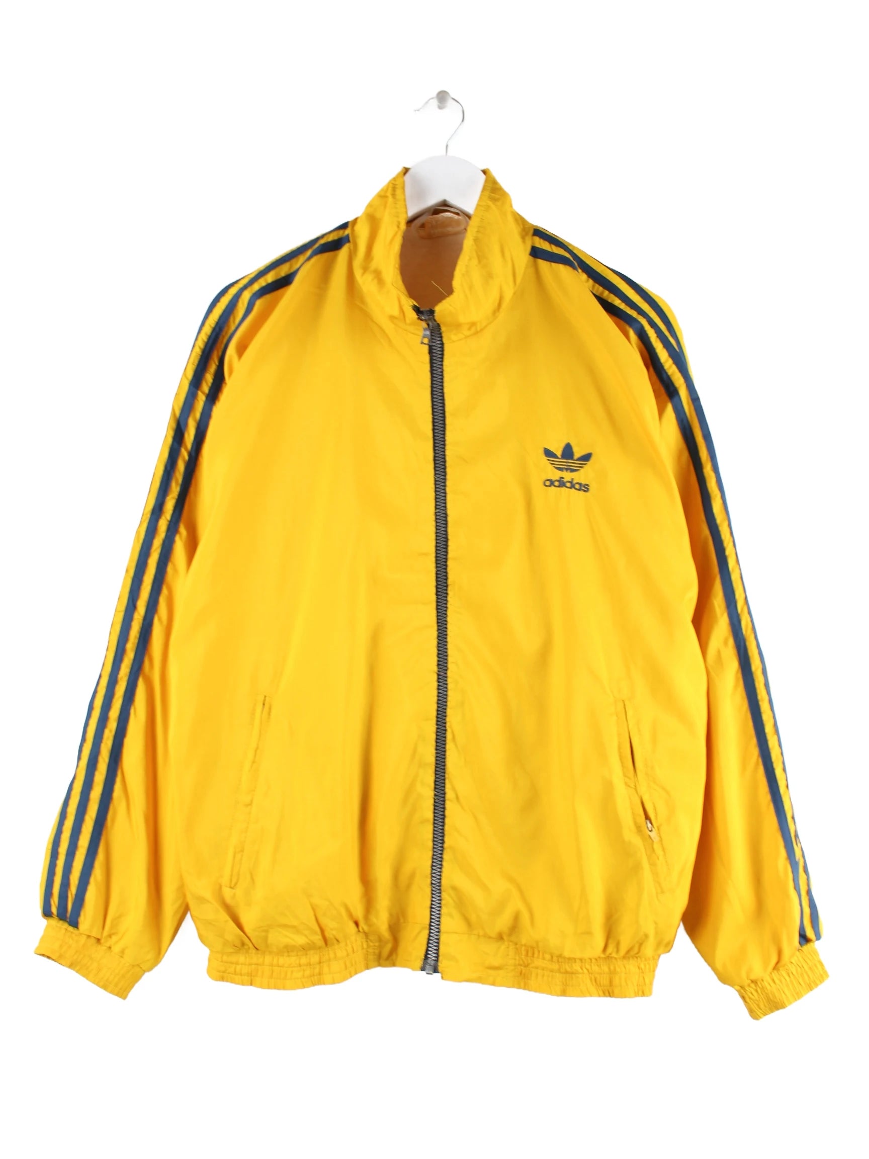 Trainingsjacke von Adidas in Größe L aus den 80'ern. Sie ist aus Synthetik angefertigt und in Gelb in Stock.
