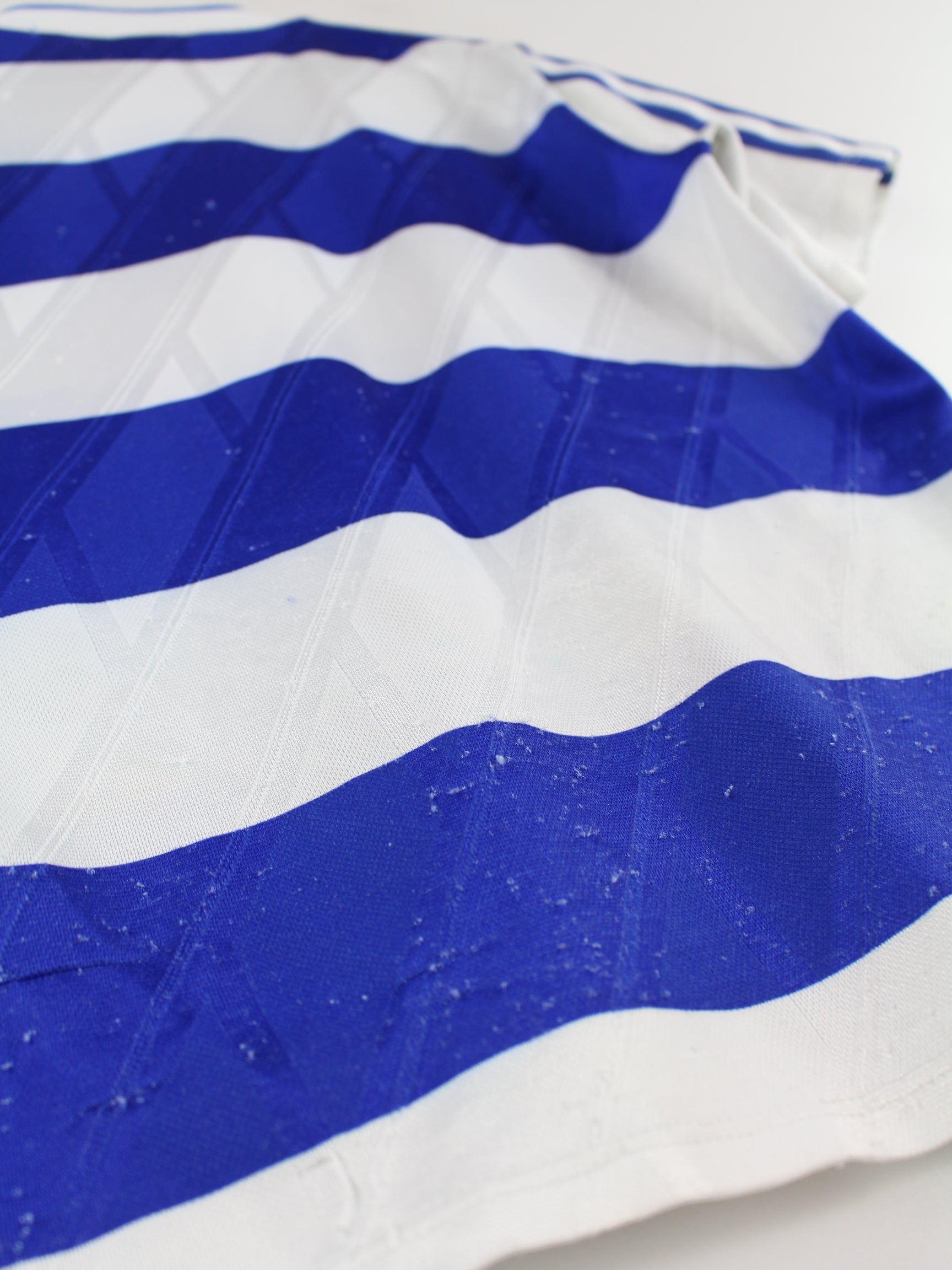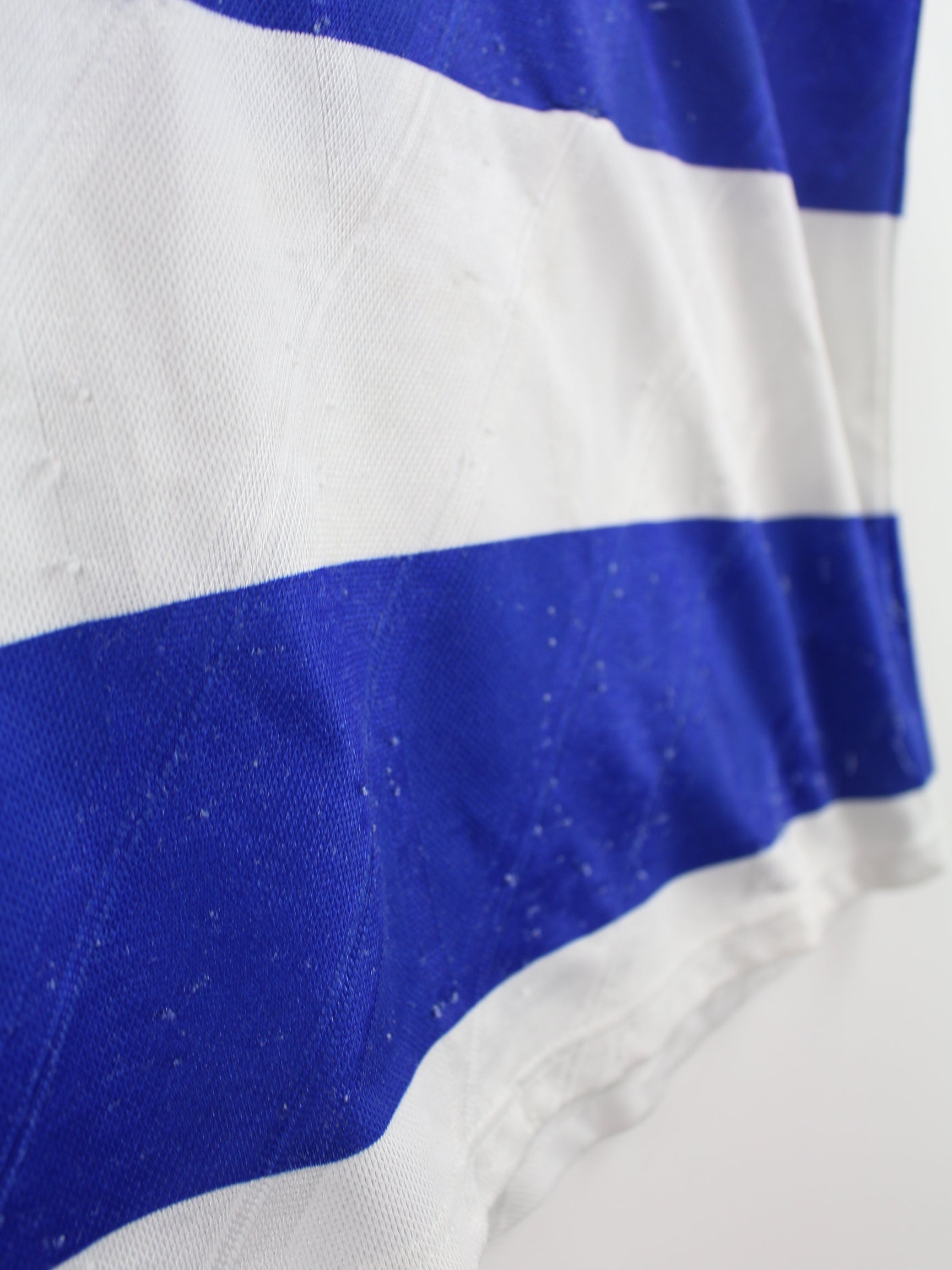 Blue jersey by Adidas from the 80's in size . It is made of synthetic material. We would describe the condition as 'fine' (see pictures).