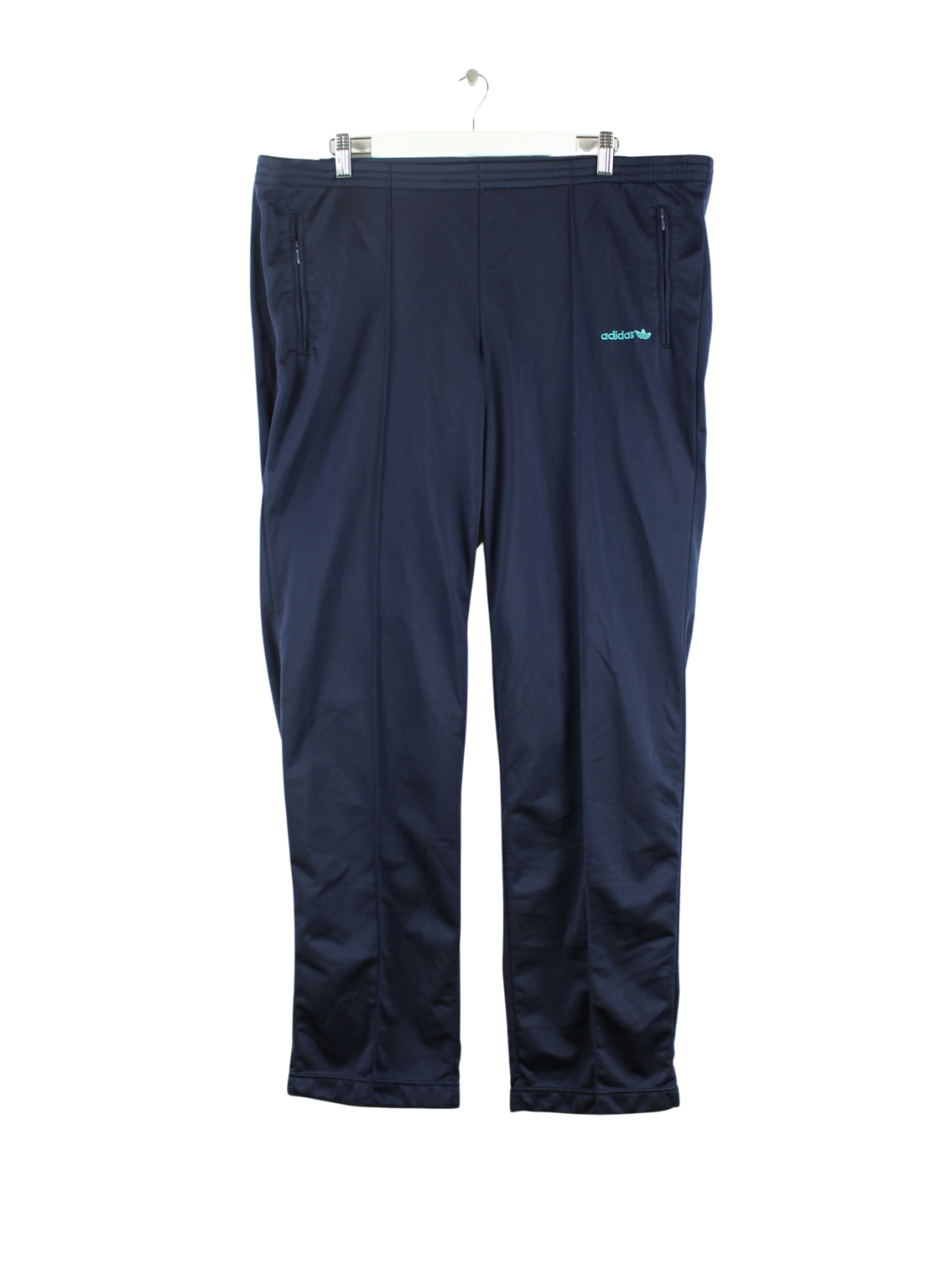 Track pants from the Adidas label in size L from the 80's. They are made of synthetic material and come in blue.