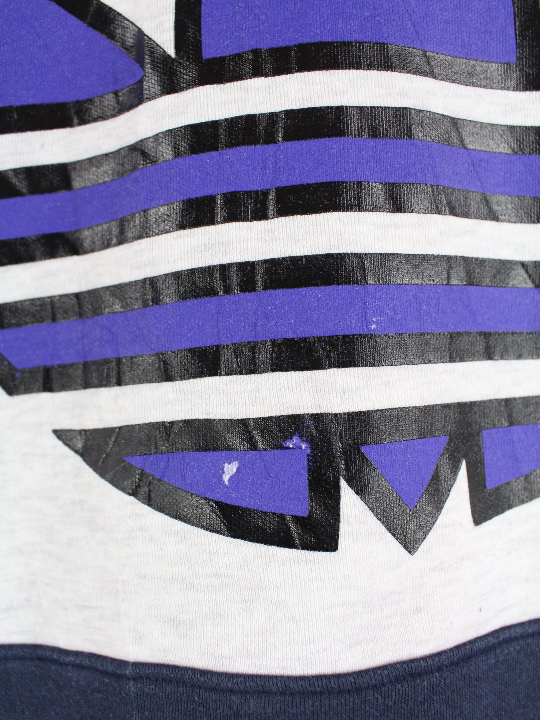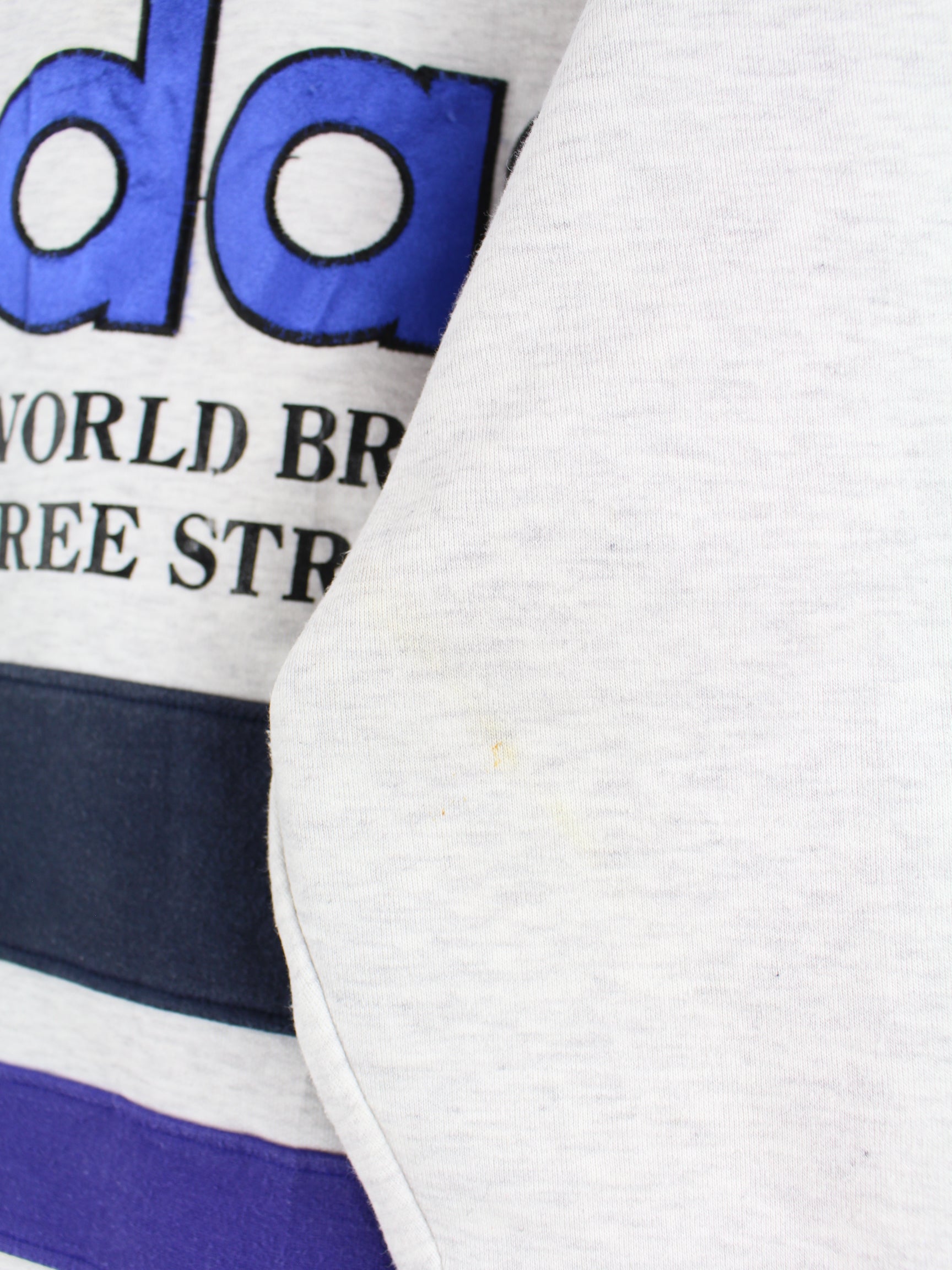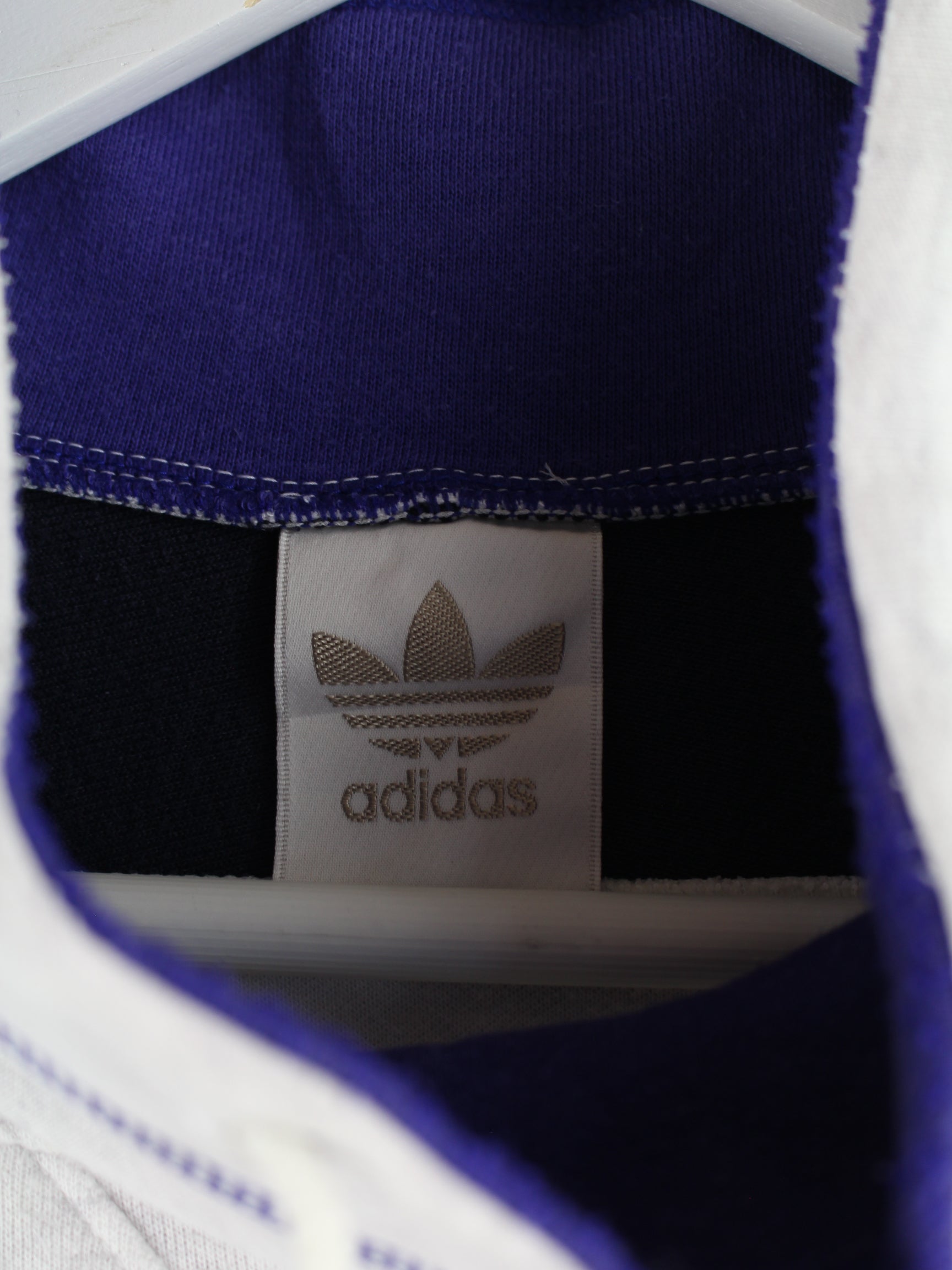 Grey sweater by Adidas from the 90's in size L. It is made of a cotton blend. We would describe the condition as 'fine' (see pictures). With a nice Trefoil print.