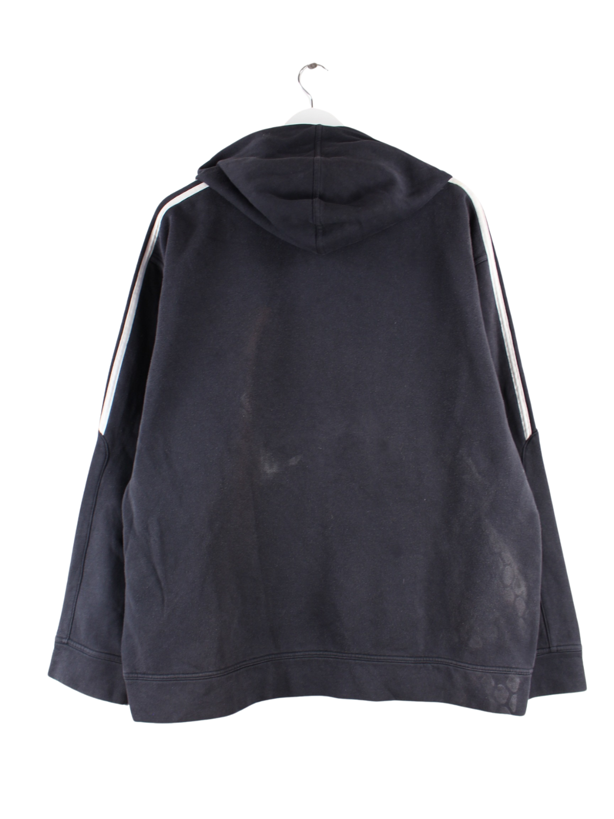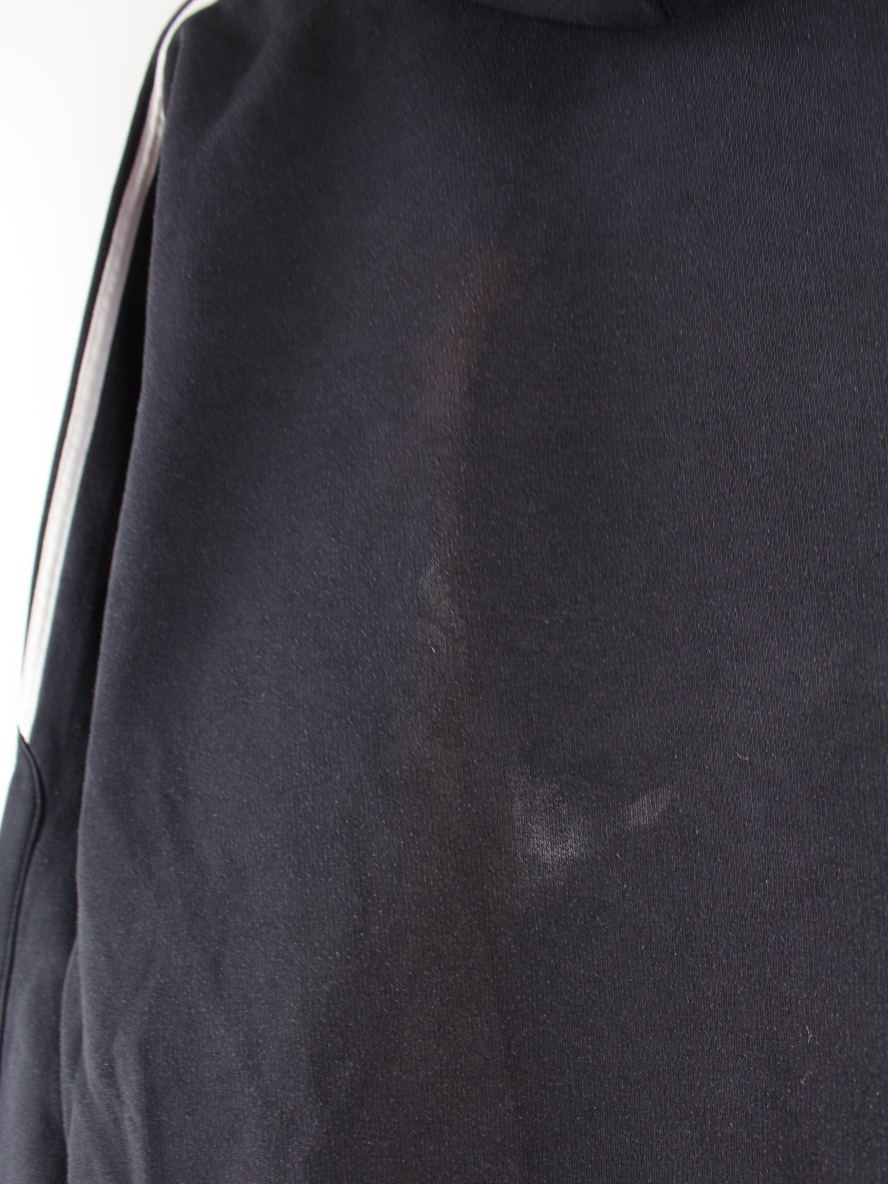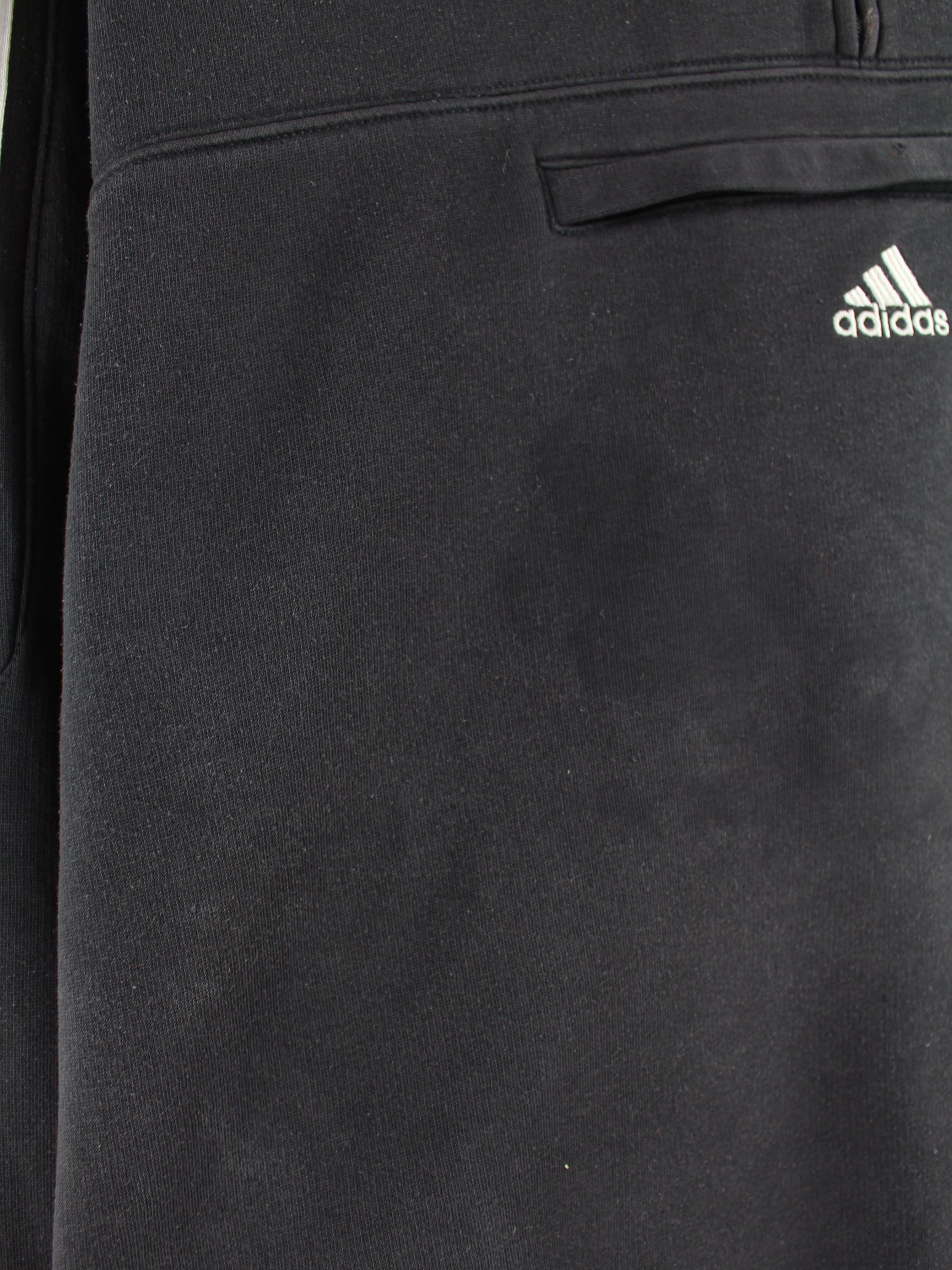 Black hoodie with embroidery and half zip from the Adidas label from the 90's in size XL. It is made from a cotton blend. We would describe the condition as 'fine' (see pictures).