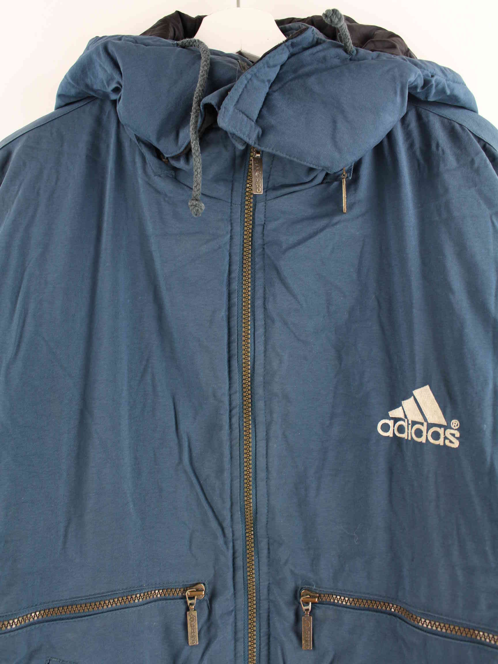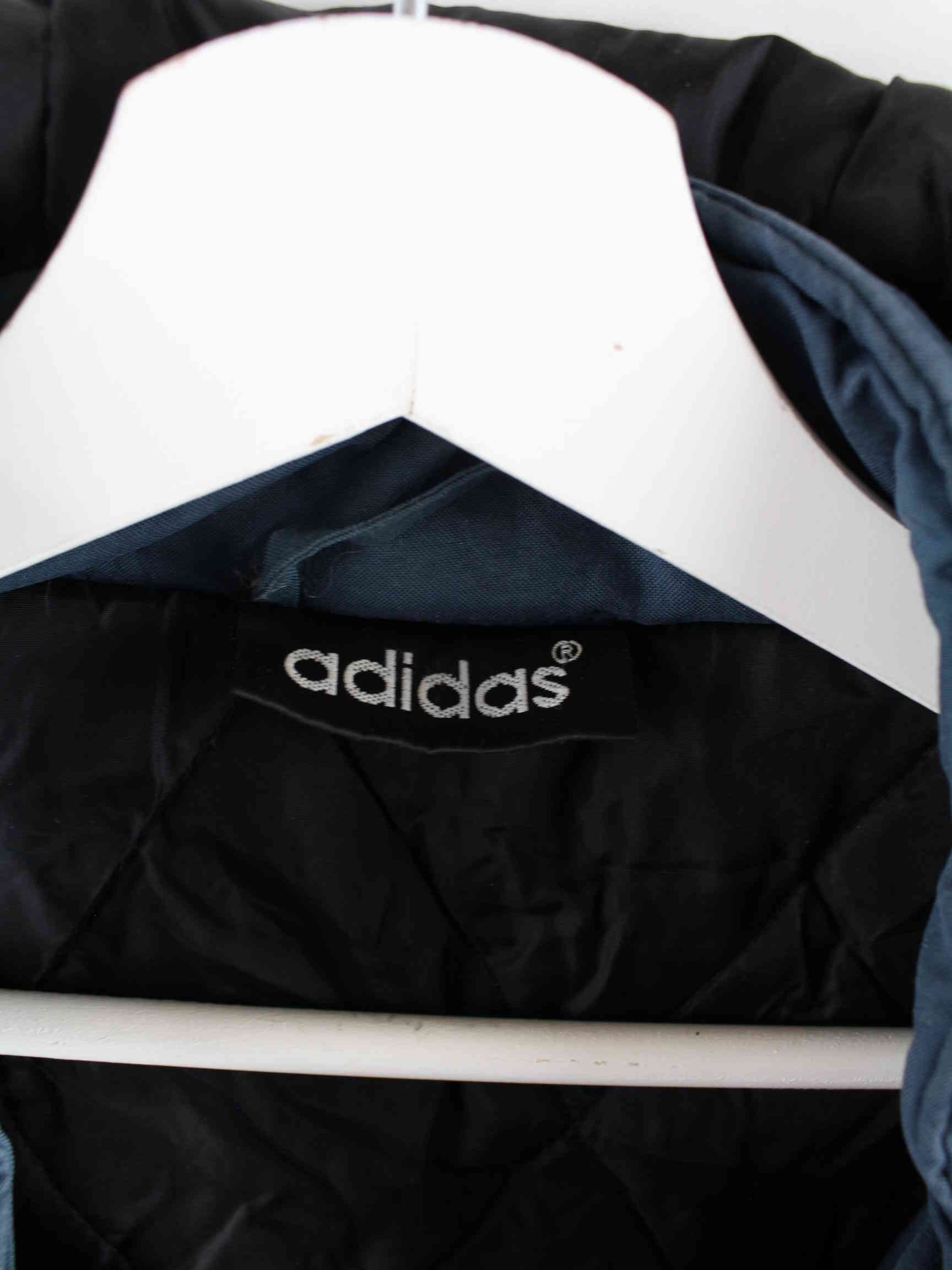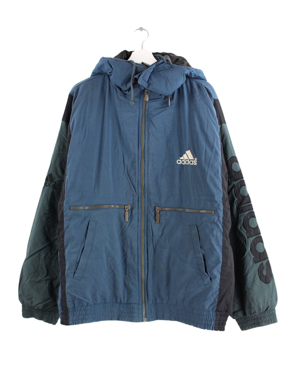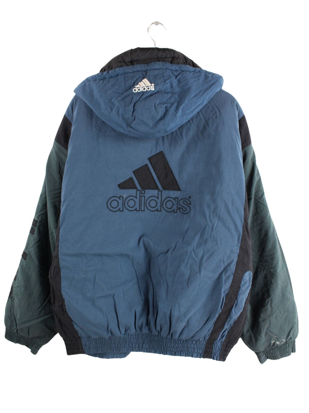 Jacket from the Adidas brand with embroidered logo in size XL from the 90s. It is made of synthetic material and is available from us in blue.