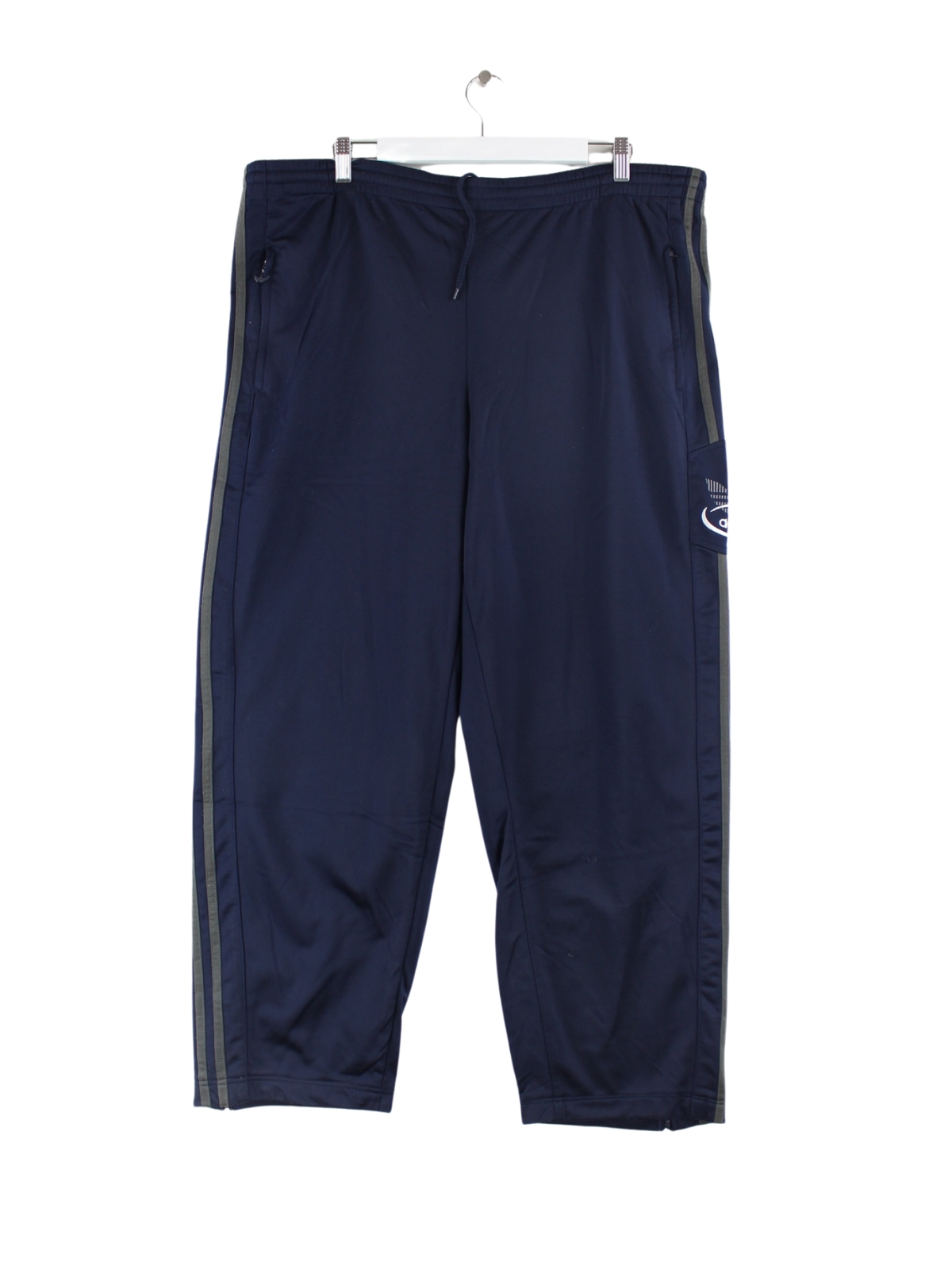 Blue track pants with embroidered motifs from the Adidas brand from the 90's in size XXL. They are made of synthetic material and in good condition.