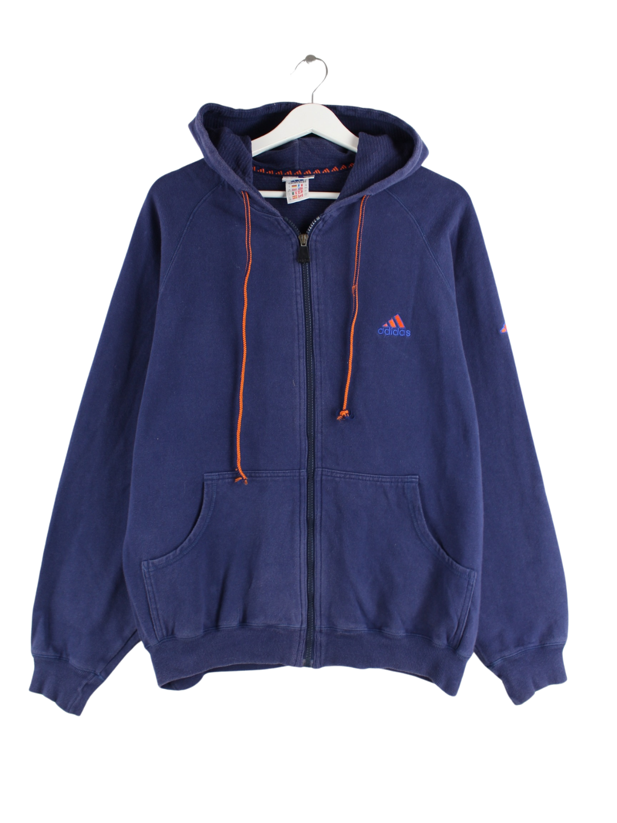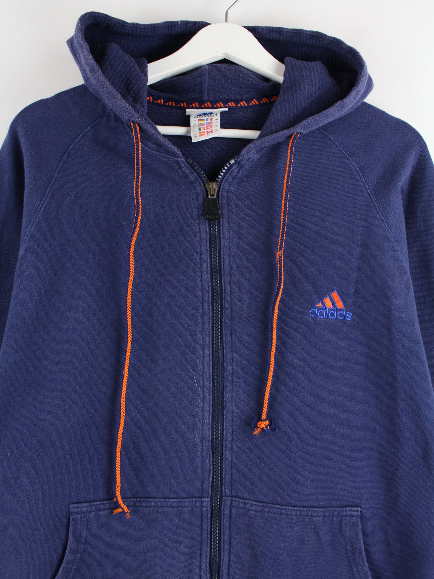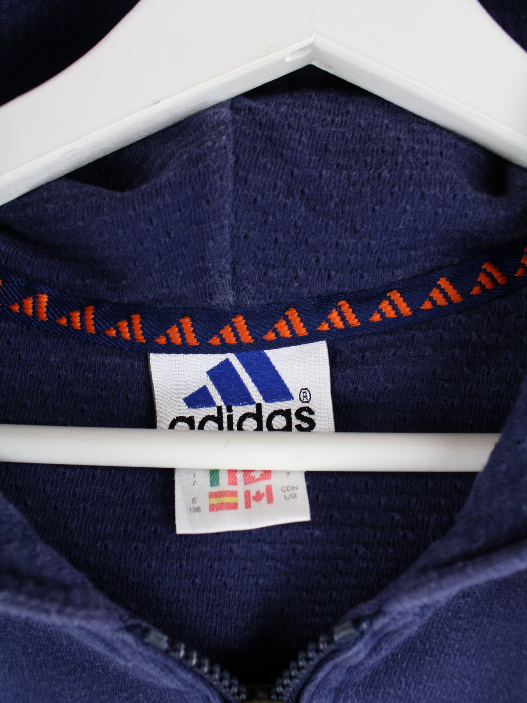 Adidas 90s Vintage Embroidered Zip Hoodie Blau L