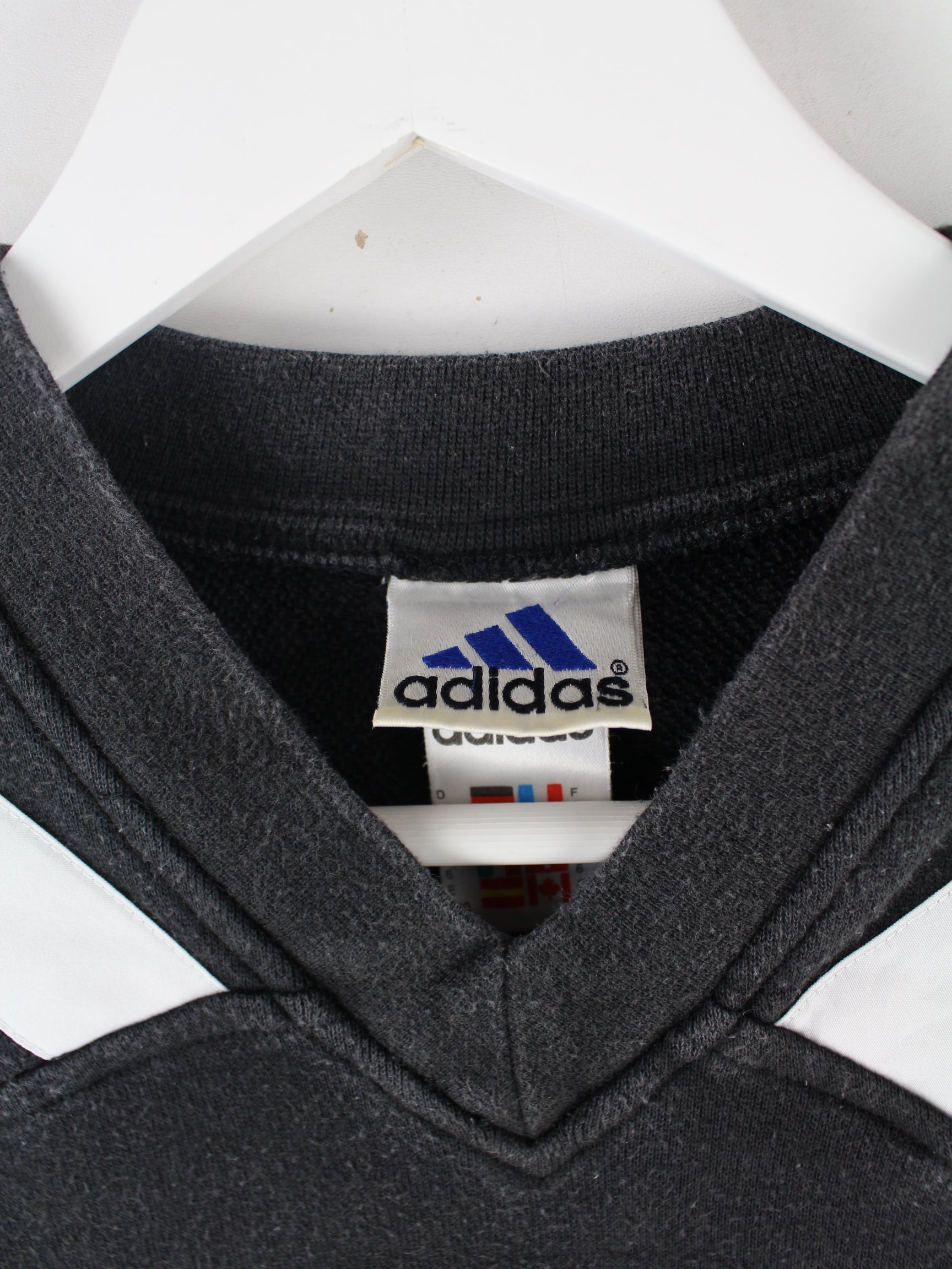 Sweater vom Brand Adidas in Größe XL aus den 90'ern. Er ist aus einer Baumwollmischung und in Schwarz zu haben.