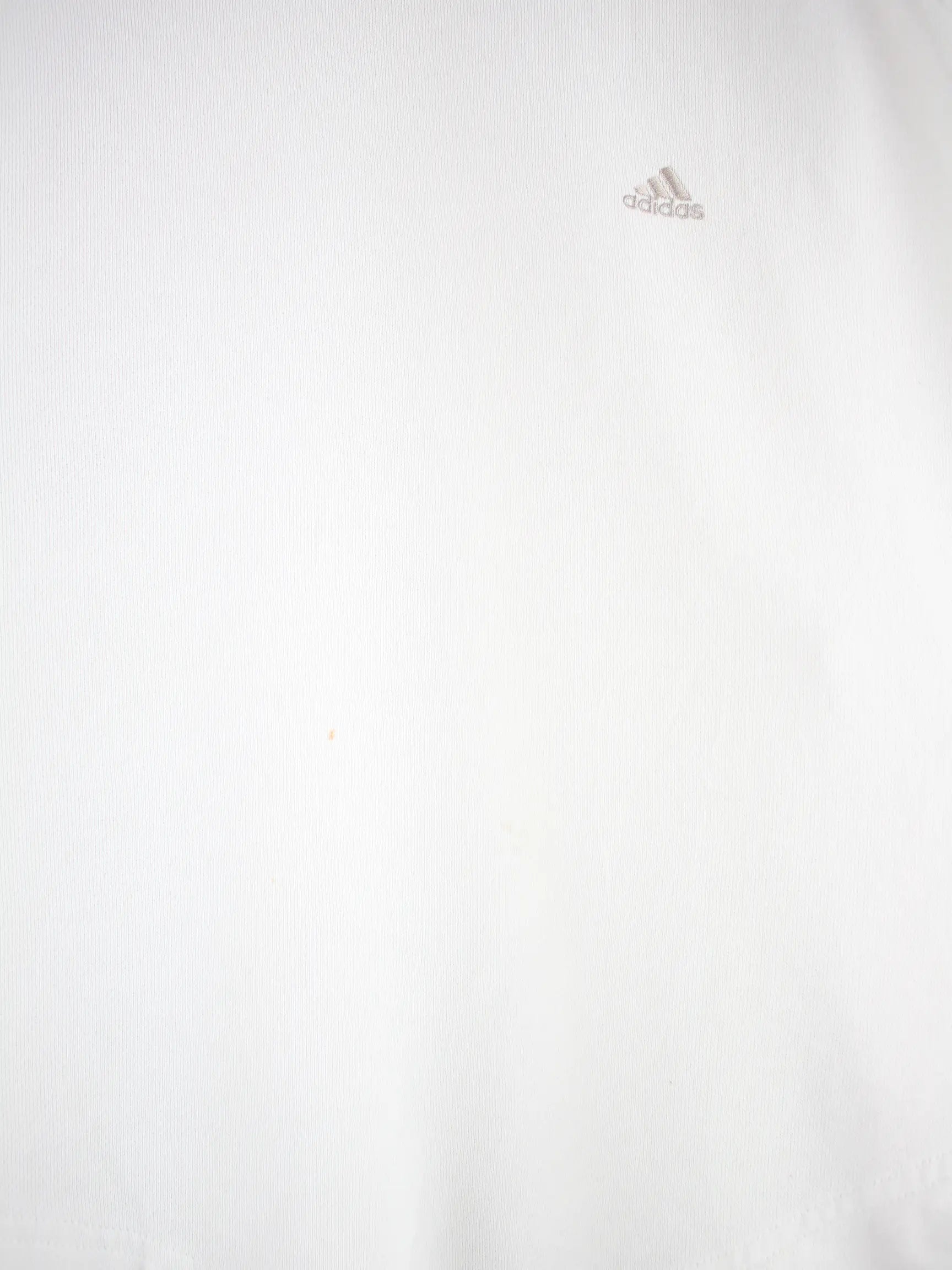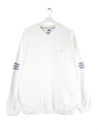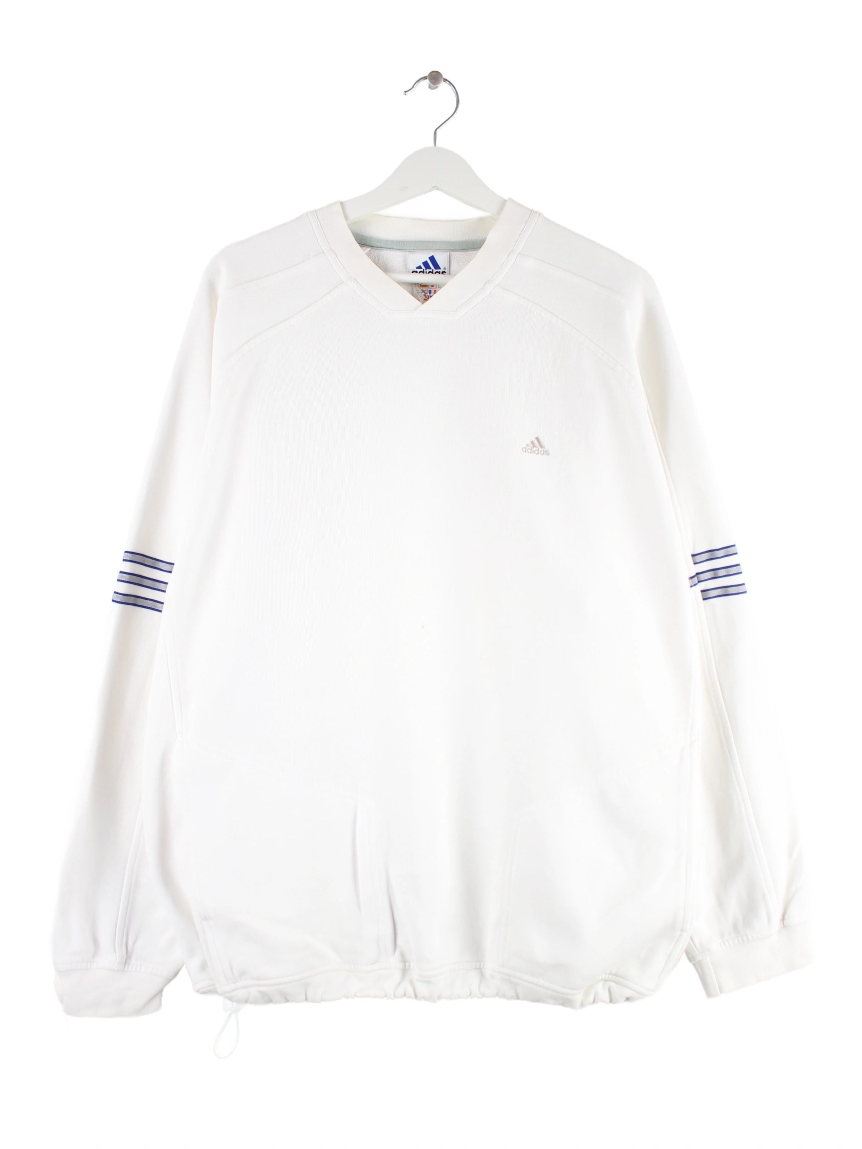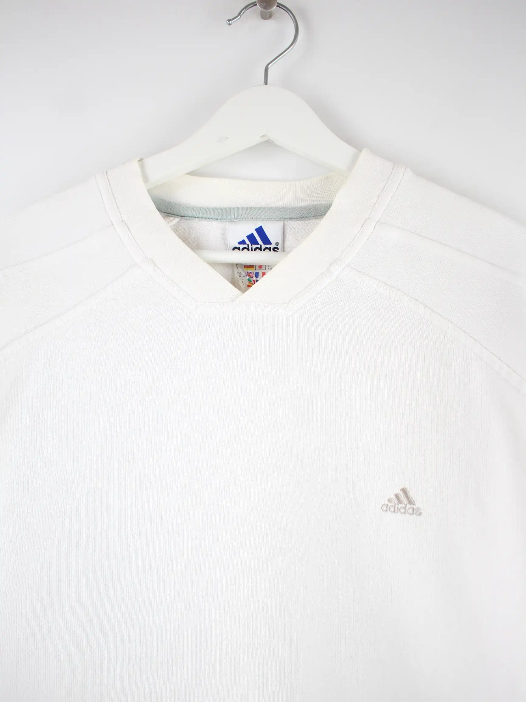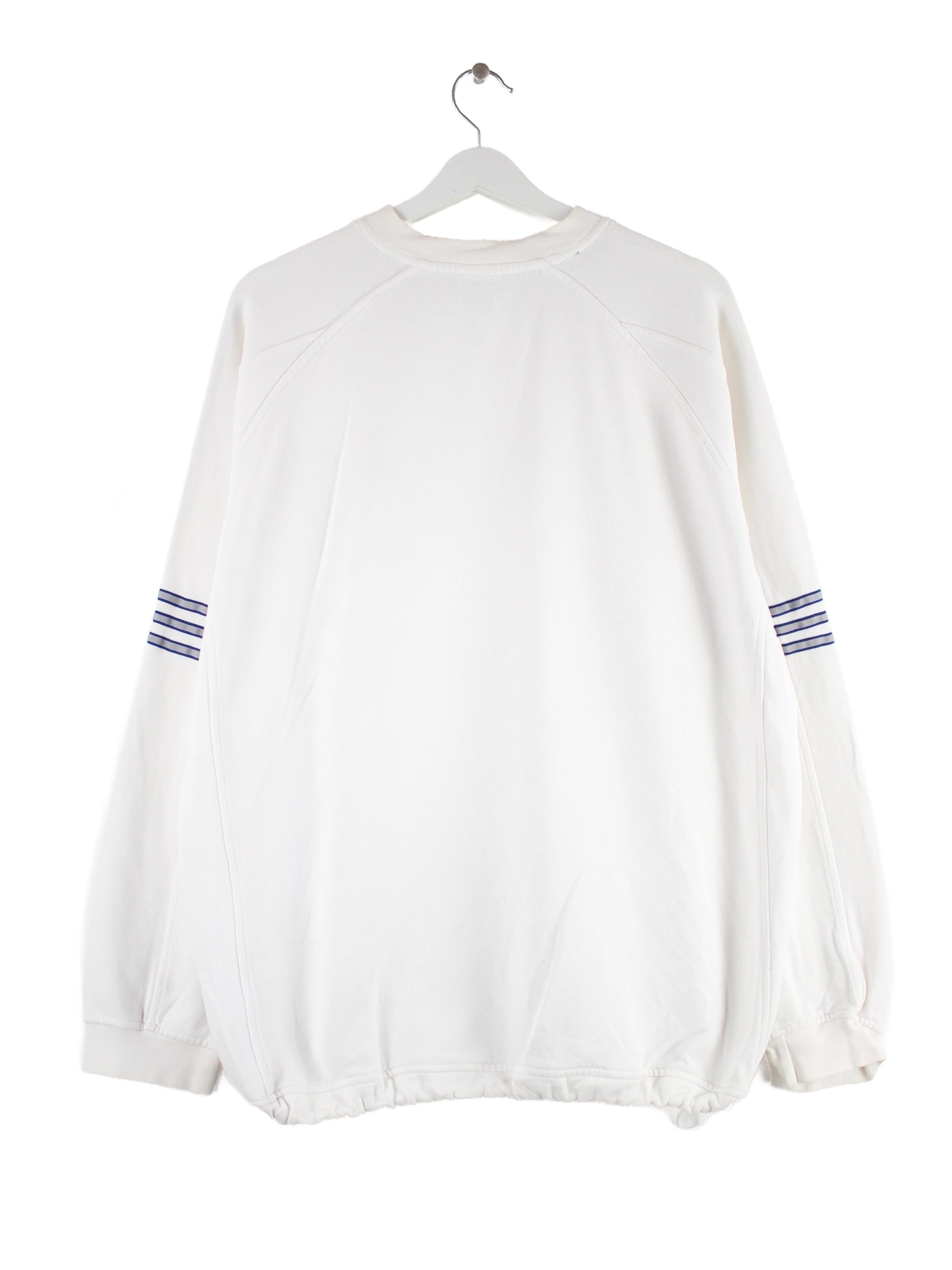 Sweater der Marke Adidas in Größe XL aus den 90'ern. Er ist aus einer Baumwollmischung gefertigt und in Weiß zu haben.