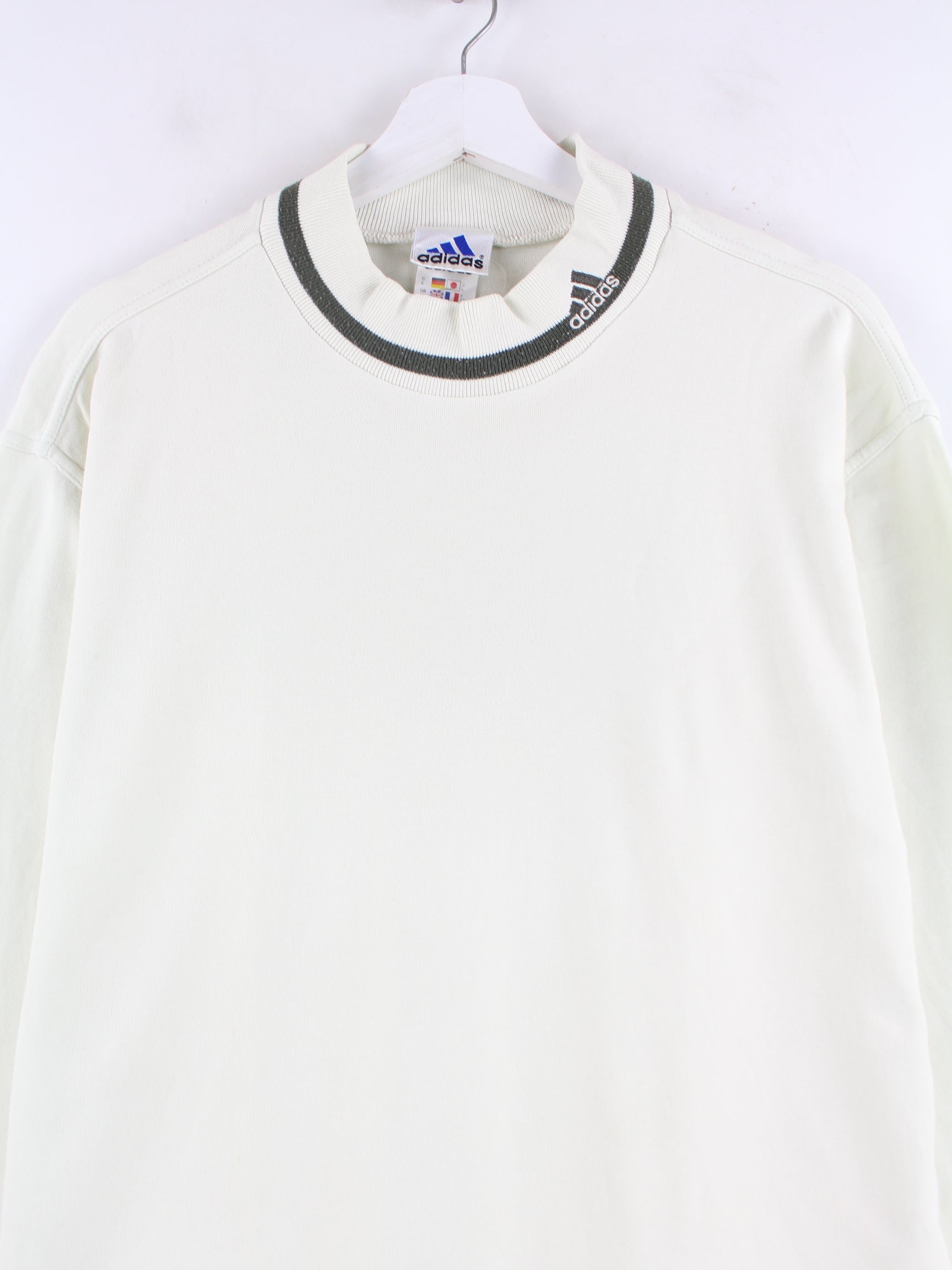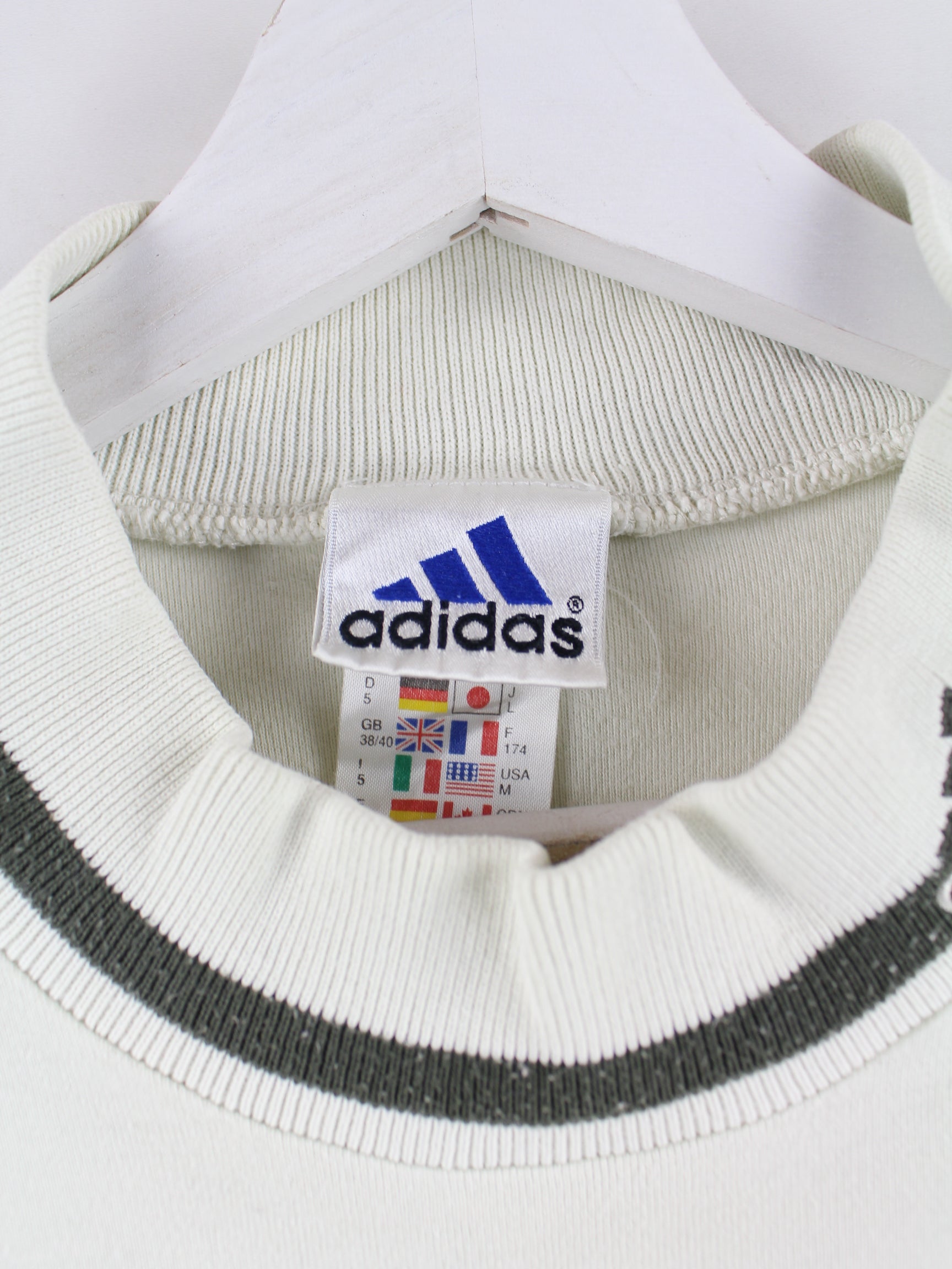 Sweatshirt des Labels Adidas in Größe M aus den 90'ern. Es ist aus Baumwolle gefertigt und in Beige bei uns zu bekommen.