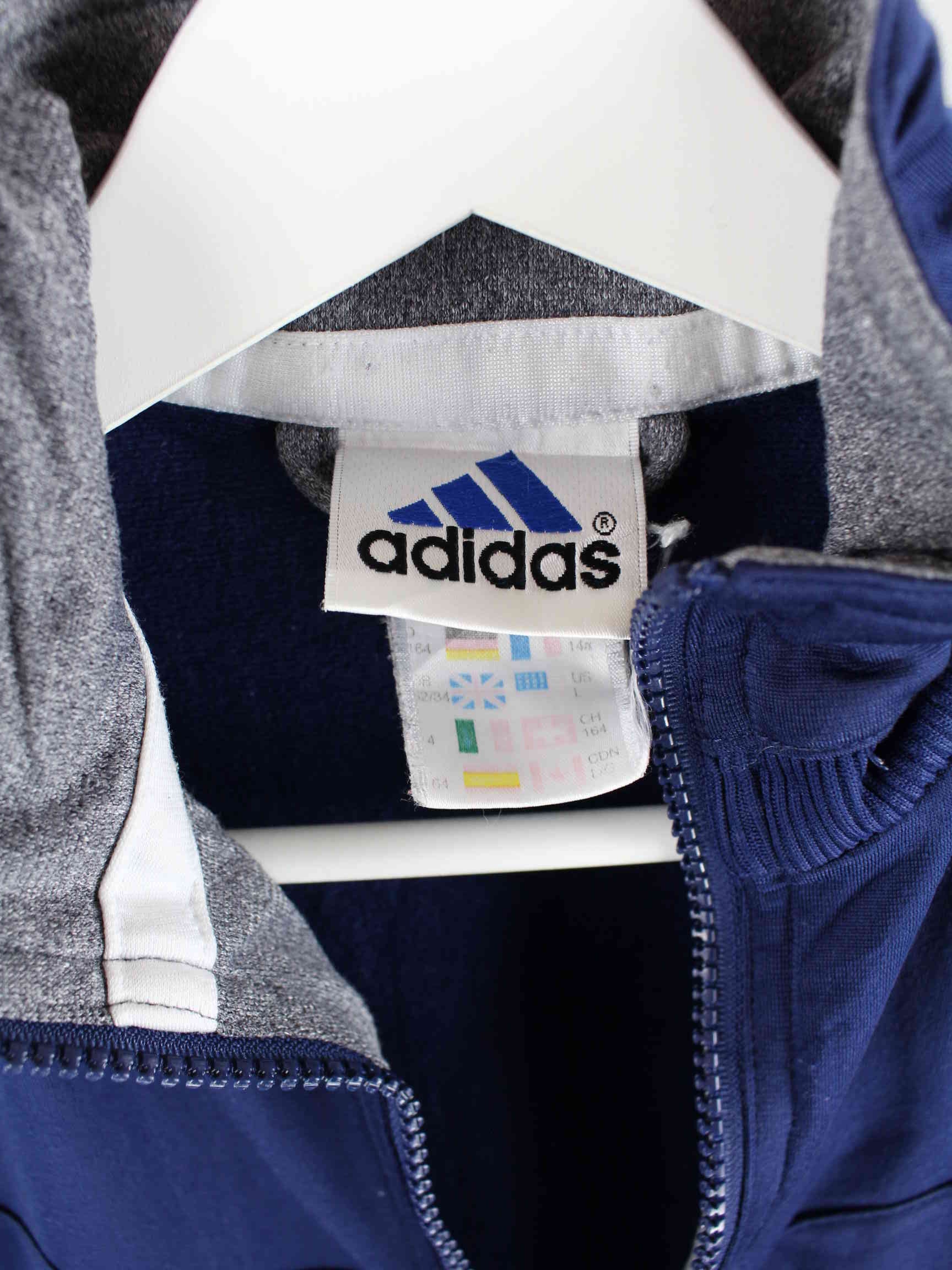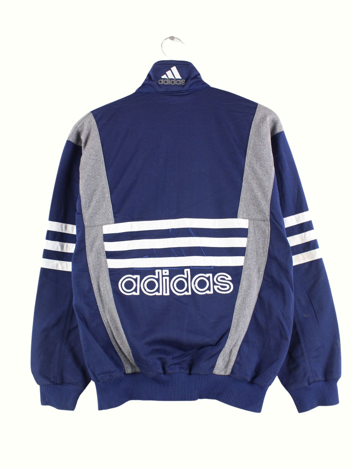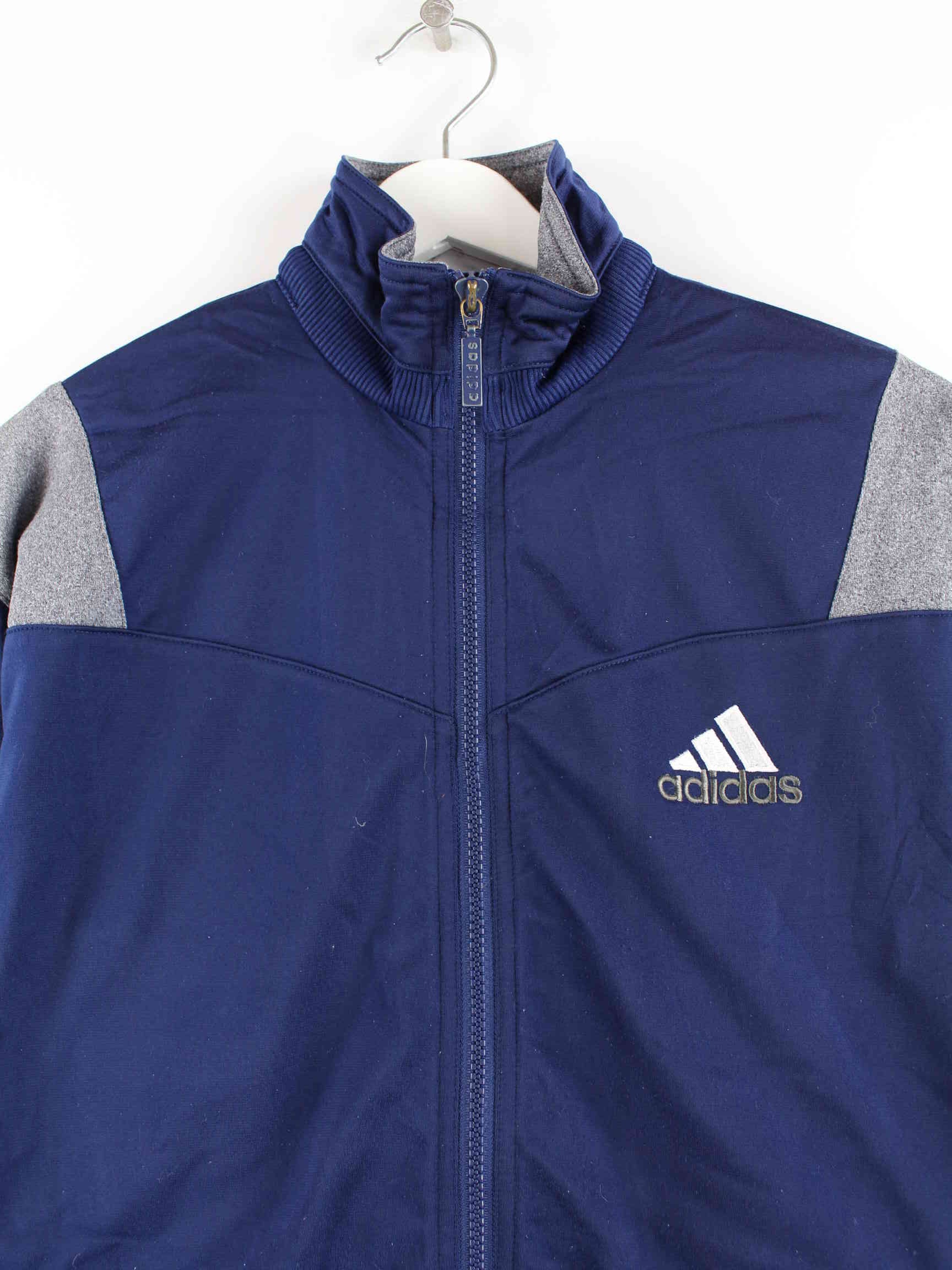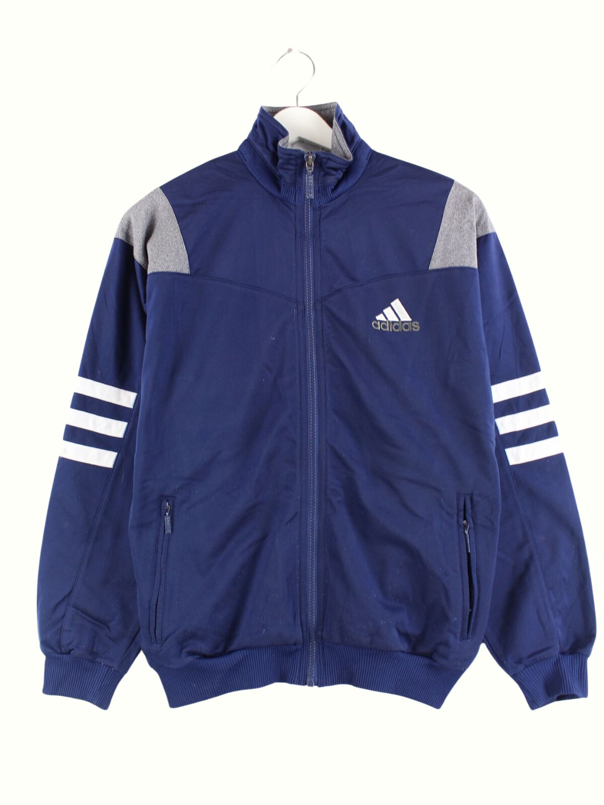 Adidas brand training jacket in size S from the 90s. It is made of synthetic material and is available in blue.