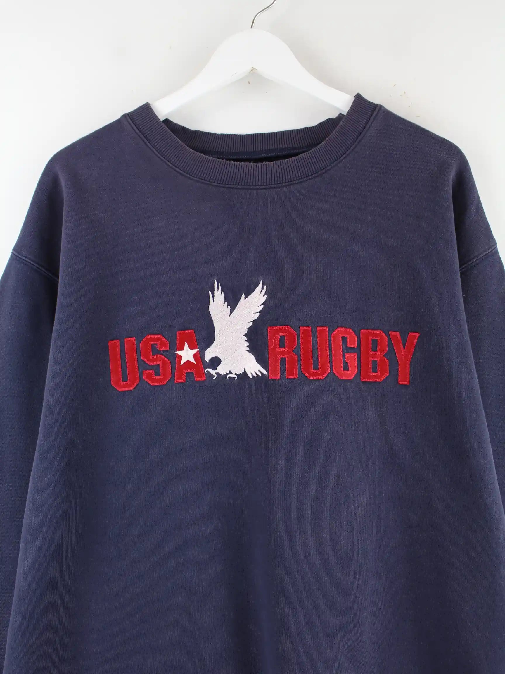 Adidas 90s Vintage USA Rugby Embroidered Sweater Blau XXL