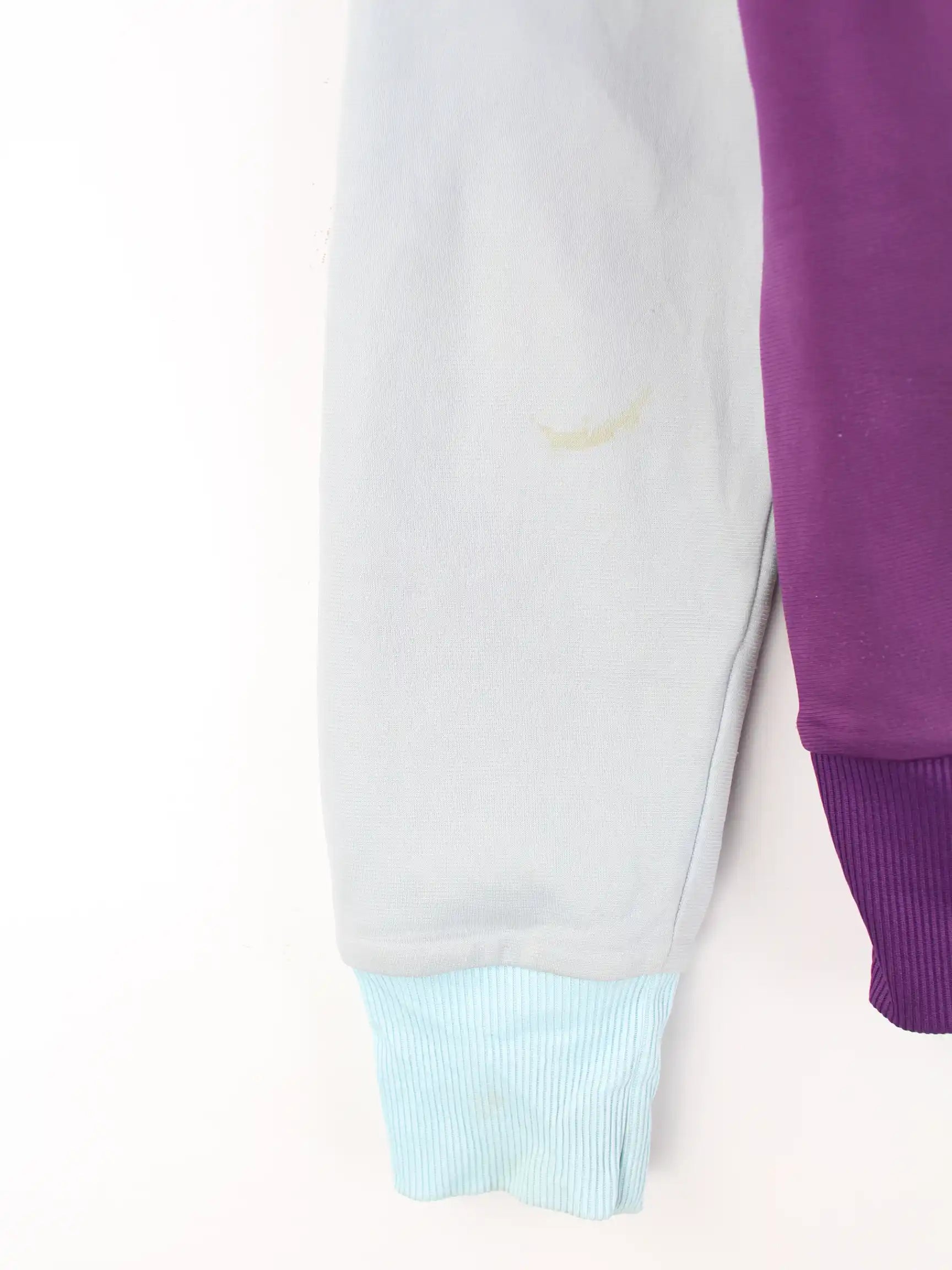 Trainingsjacke aus dem Hause Adidas in Größe L. Sie ist aus Synthetik gemacht und in Lila bei uns zu bekommen.