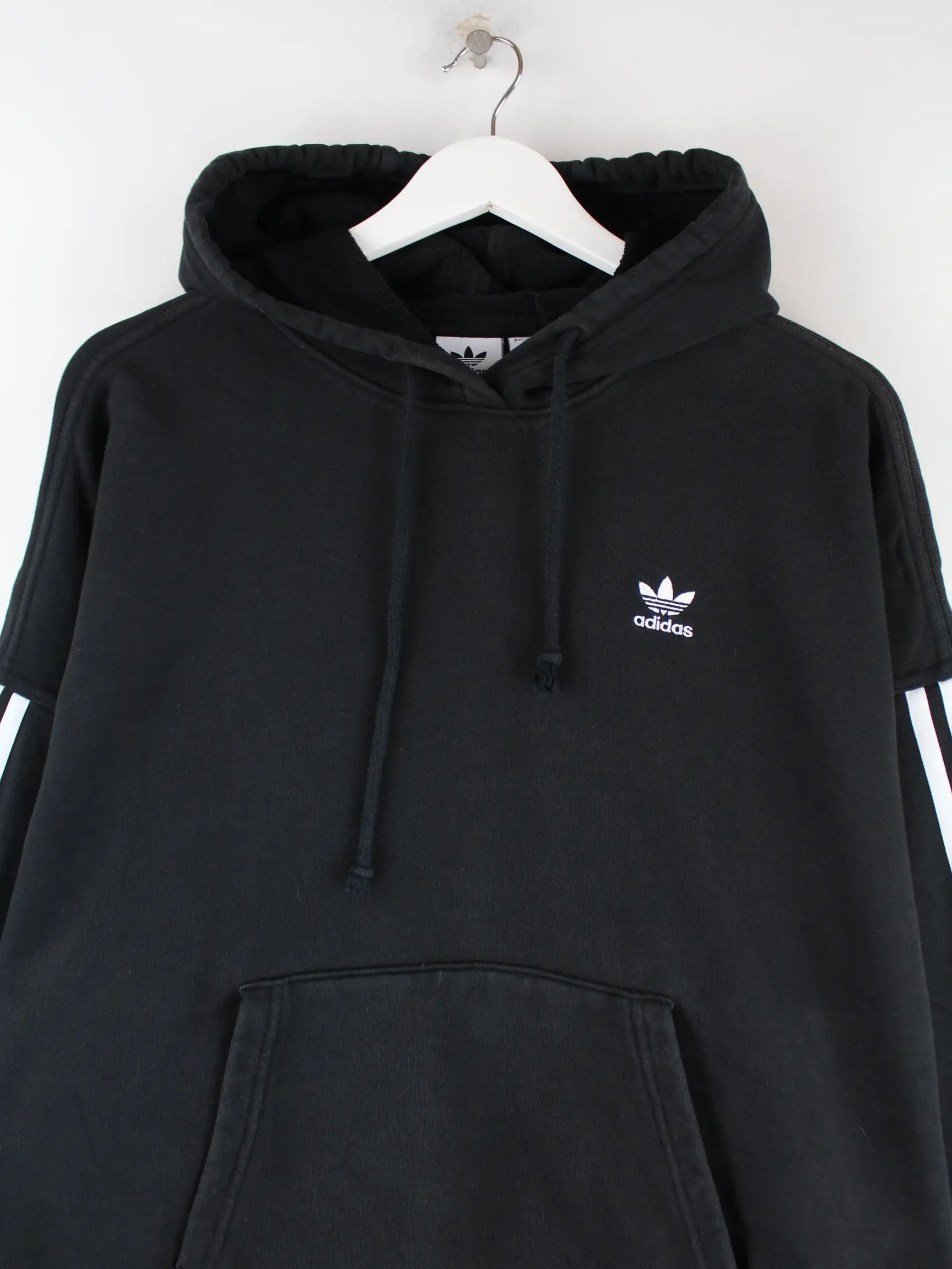 Schwarzer Hoodie von Adidas in Größe M. Er ist aus einer Baumwollmischung produziert und in sehr gutem Zustand zu bekommen.