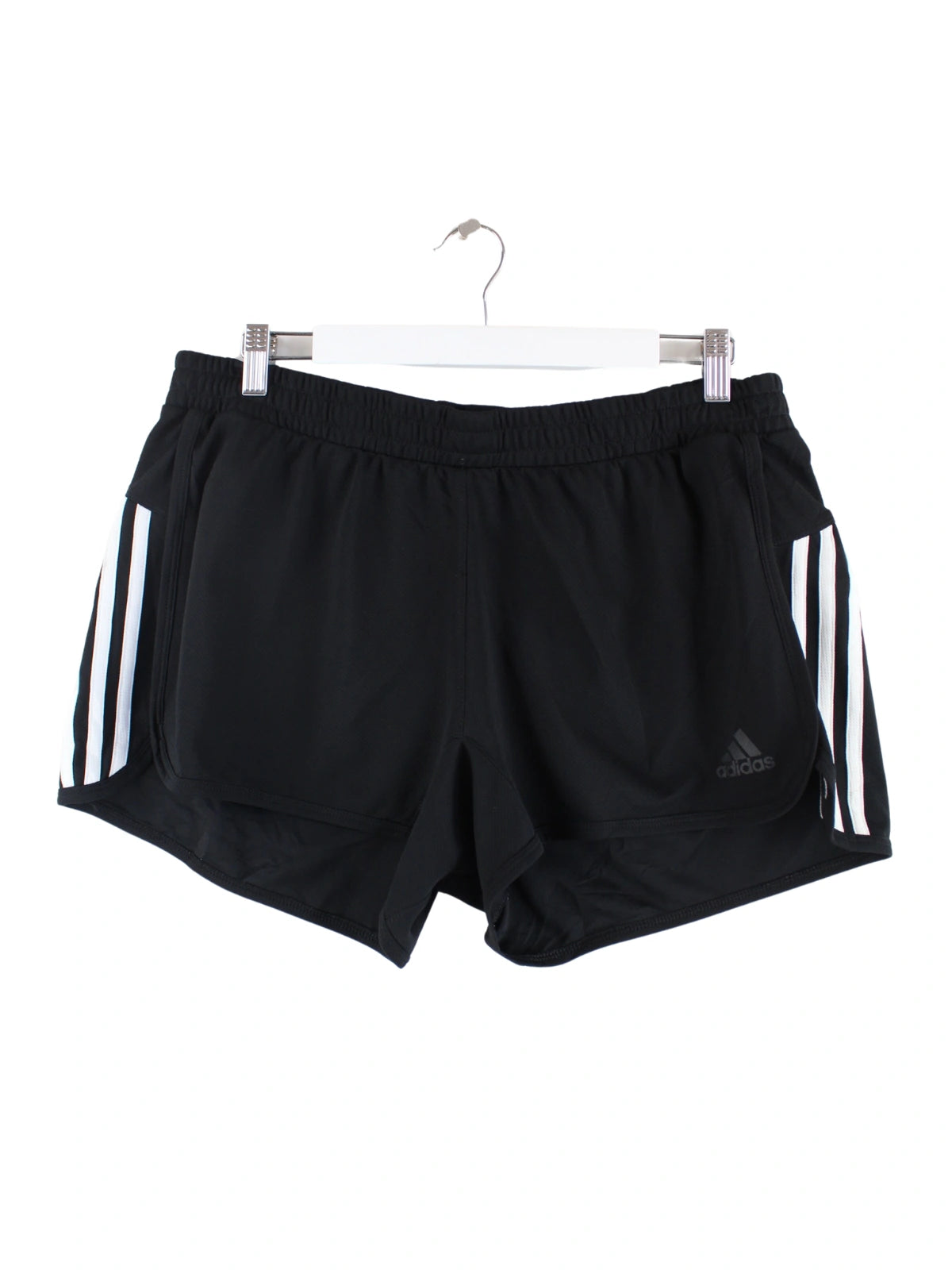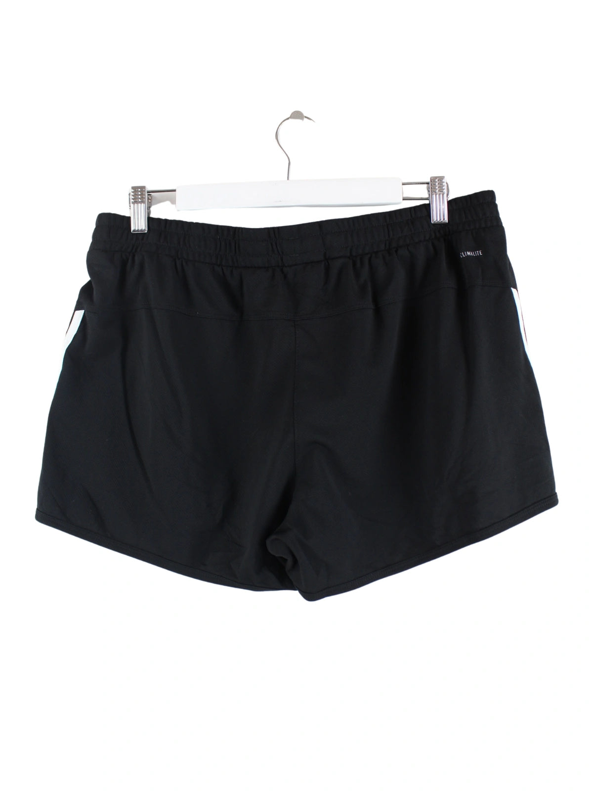 Schwarze Shorts vom Label Adidas in Größe L. Sie sind aus Synthetik angefertigt und in sehr gutem Zustand bei uns zu bekommen.