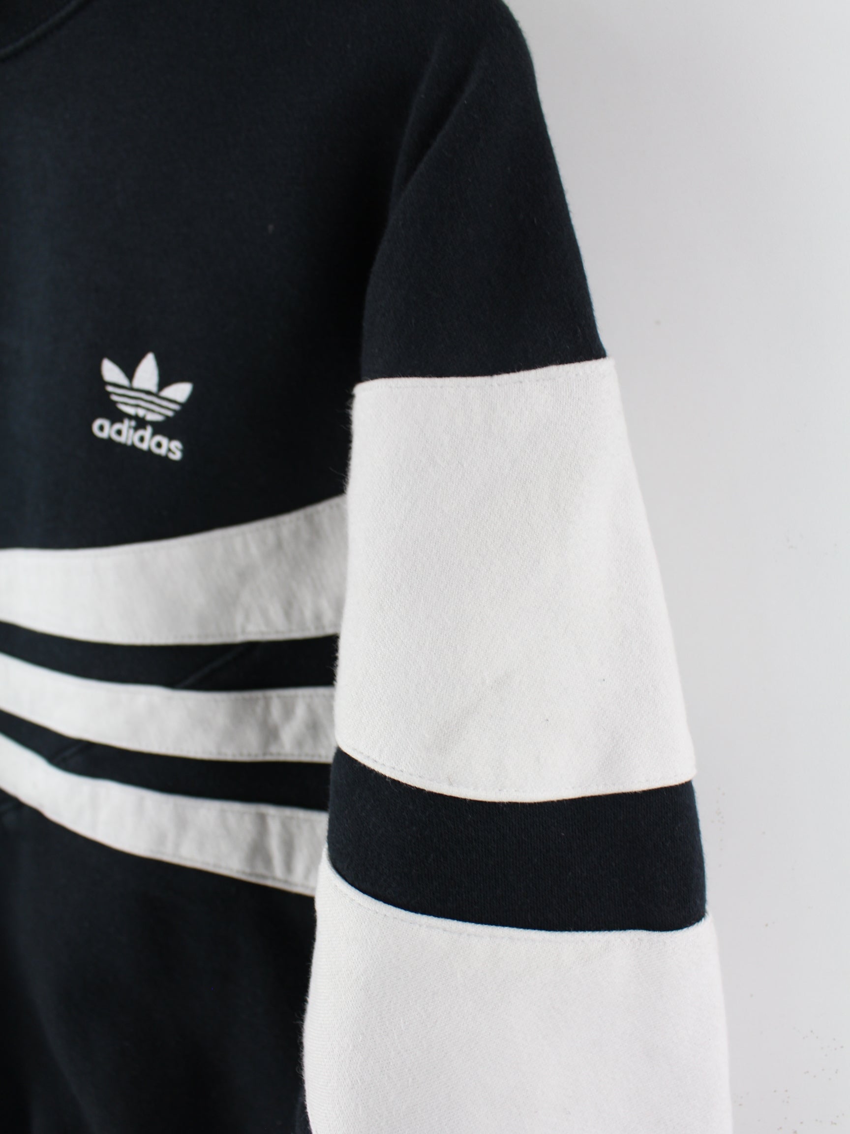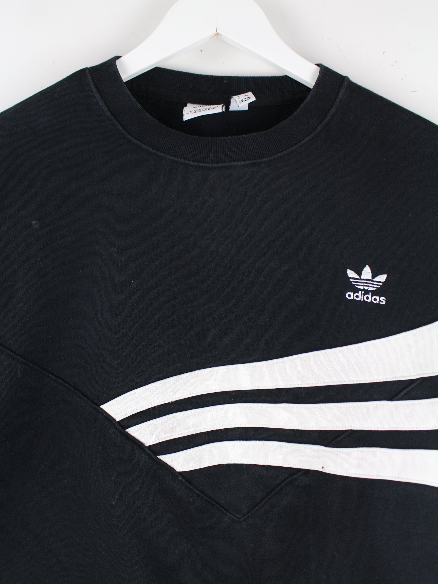 Schwarzer Sweater von Adidas in Größe M. Er ist aus einer Baumwollmischung hergestellt. Den Zustand würden wir als 'In Ordnung' bezeichnen (vergl. Bilder).