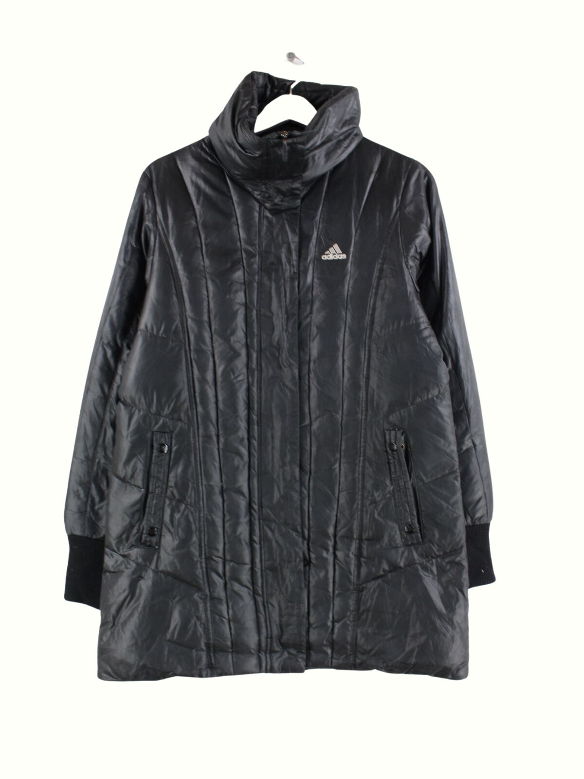 Black jacket from the Adidas brand from the early 2000s in size M. It is made of synthetic material and is in very good condition.