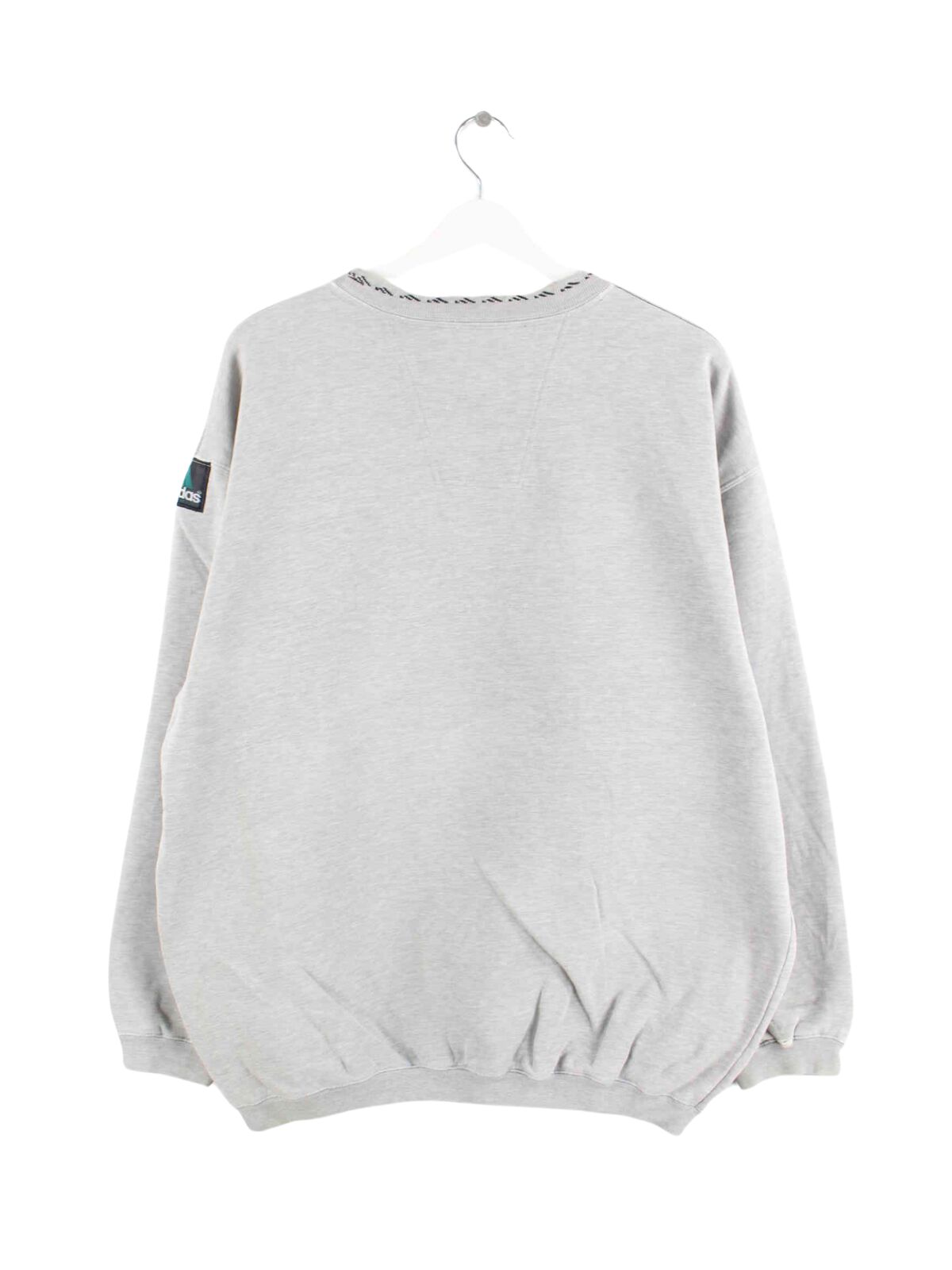 Gray sweater with embroidered patterns from the Adidas label from the 90s in size XL. It is made from a cotton blend. We would describe the condition as 'OK' (see pictures).