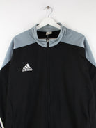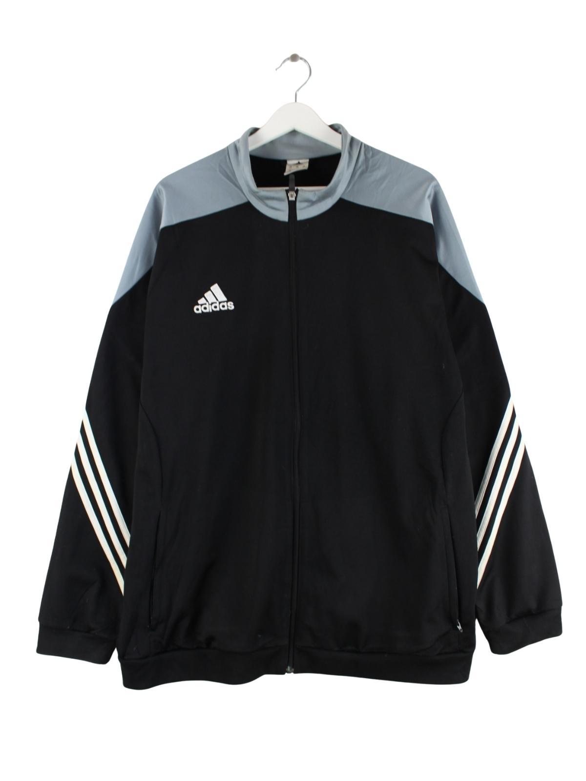 Schwarze Trainingsjacke der Marke Adidas in Größe XXL. Sie ist aus Synthetik angefertigt. Den Zustand würden wir als 'In Ordnung' bezeichnen (vergl. Bilder).