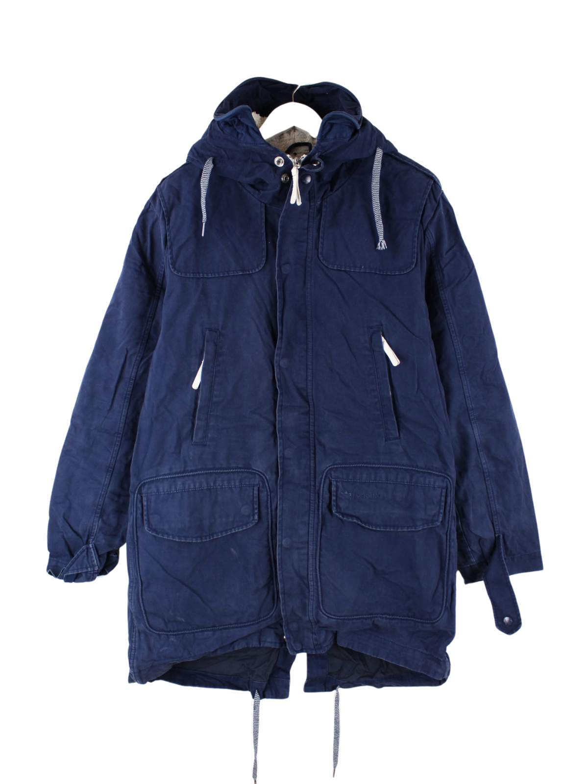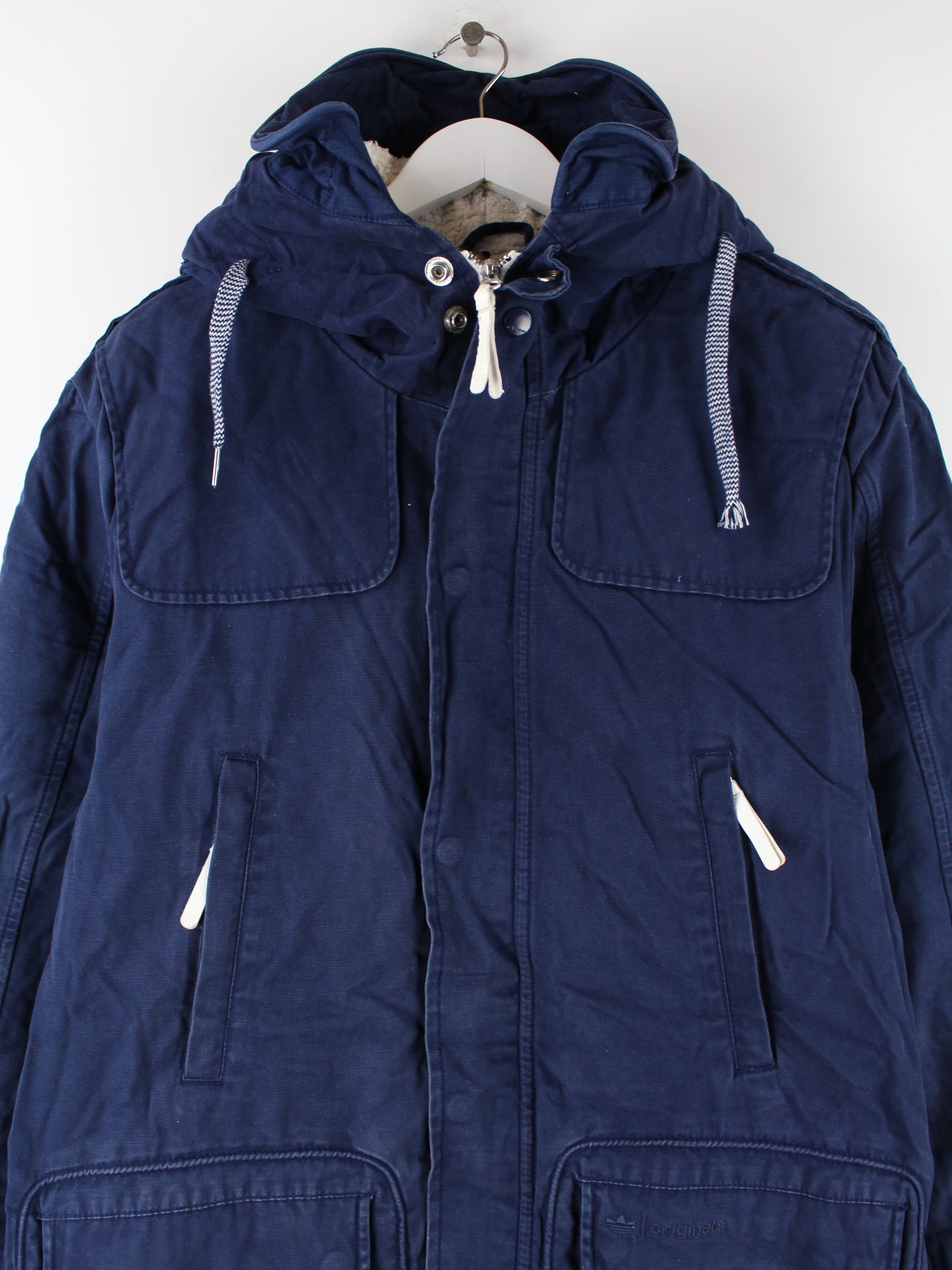 Jacke vom Label Adidas in Größe M. Sie ist aus einer Baumwollmischung gemacht und in Blau lieferbar.