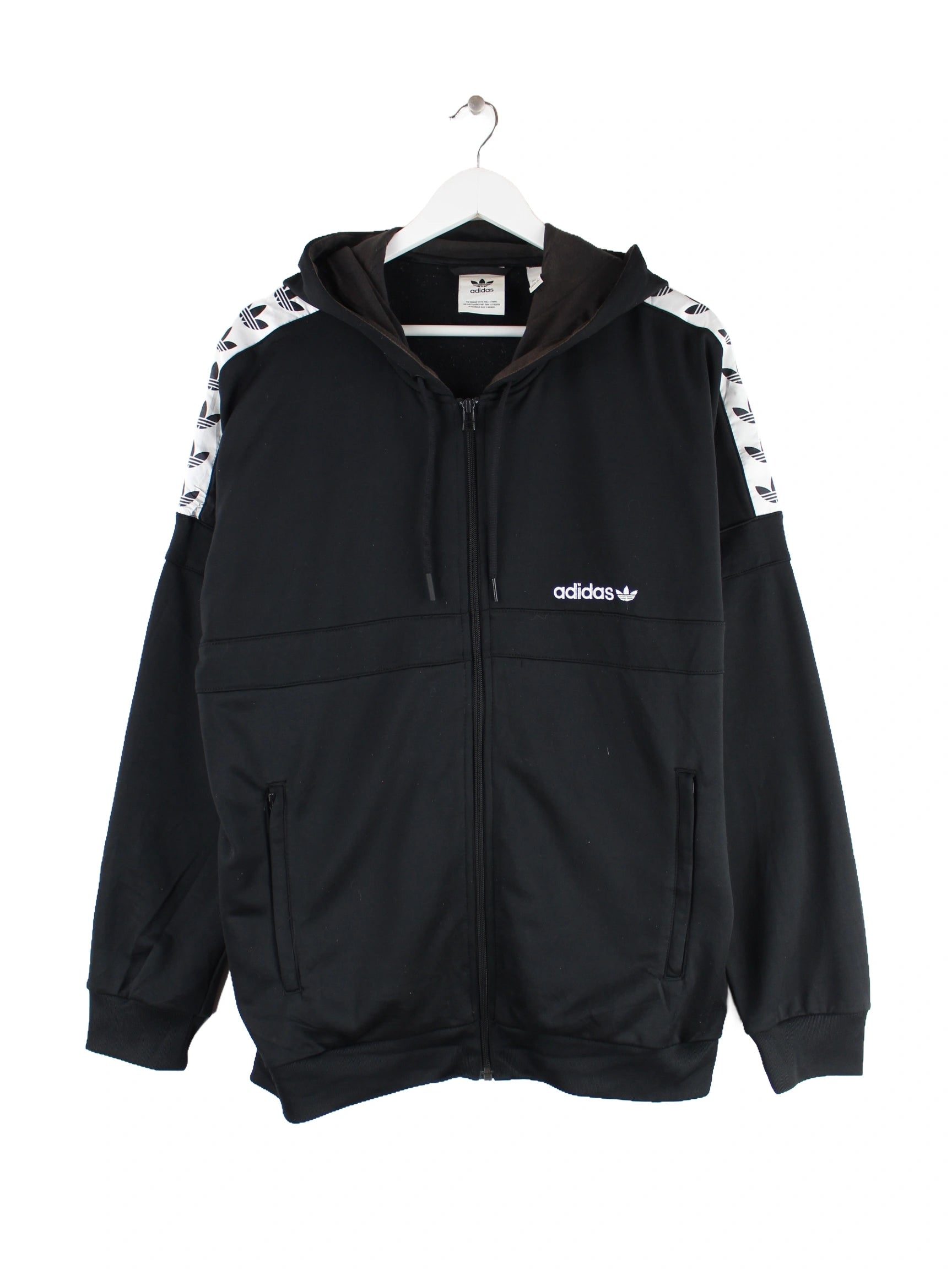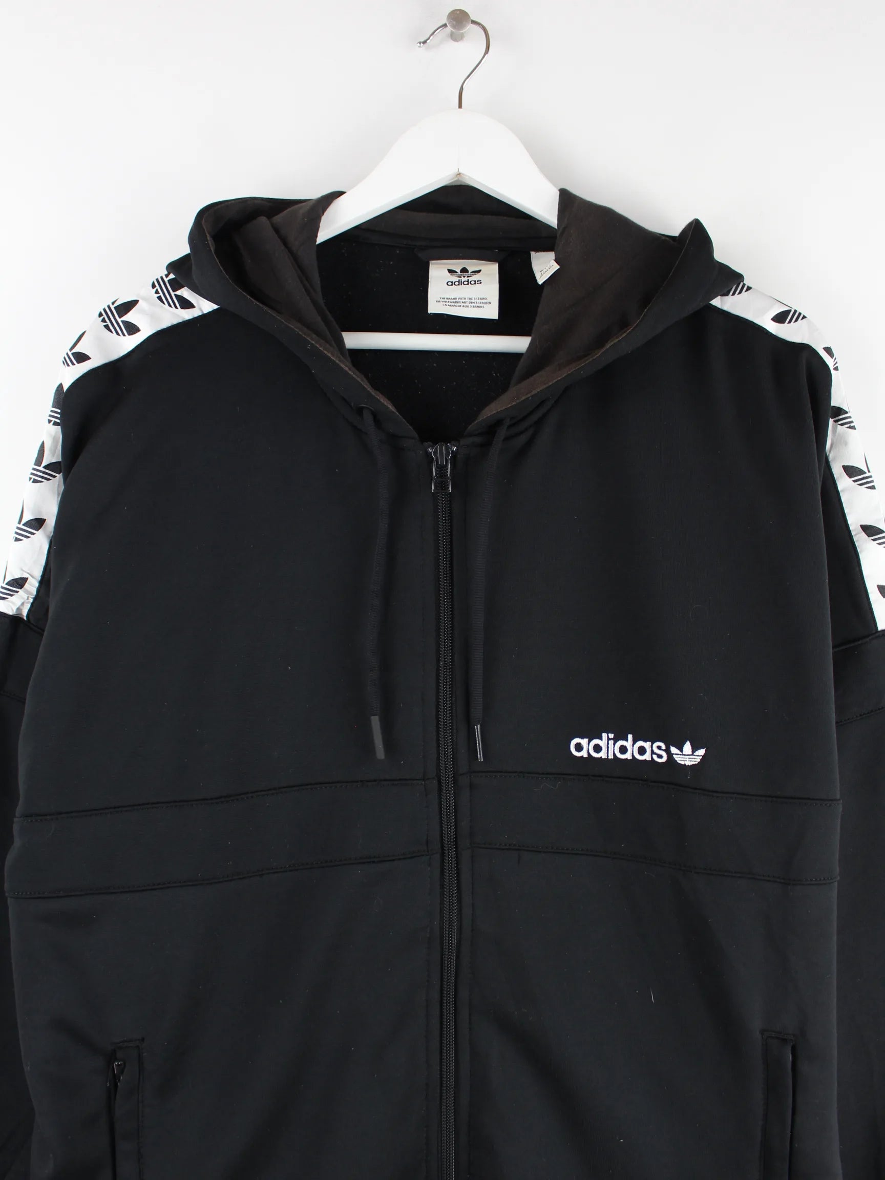 Schwarze Leichte Jacke der Marke Adidas in Größe L. Sie ist aus Synthetik und in gutem Zustand in Stock.