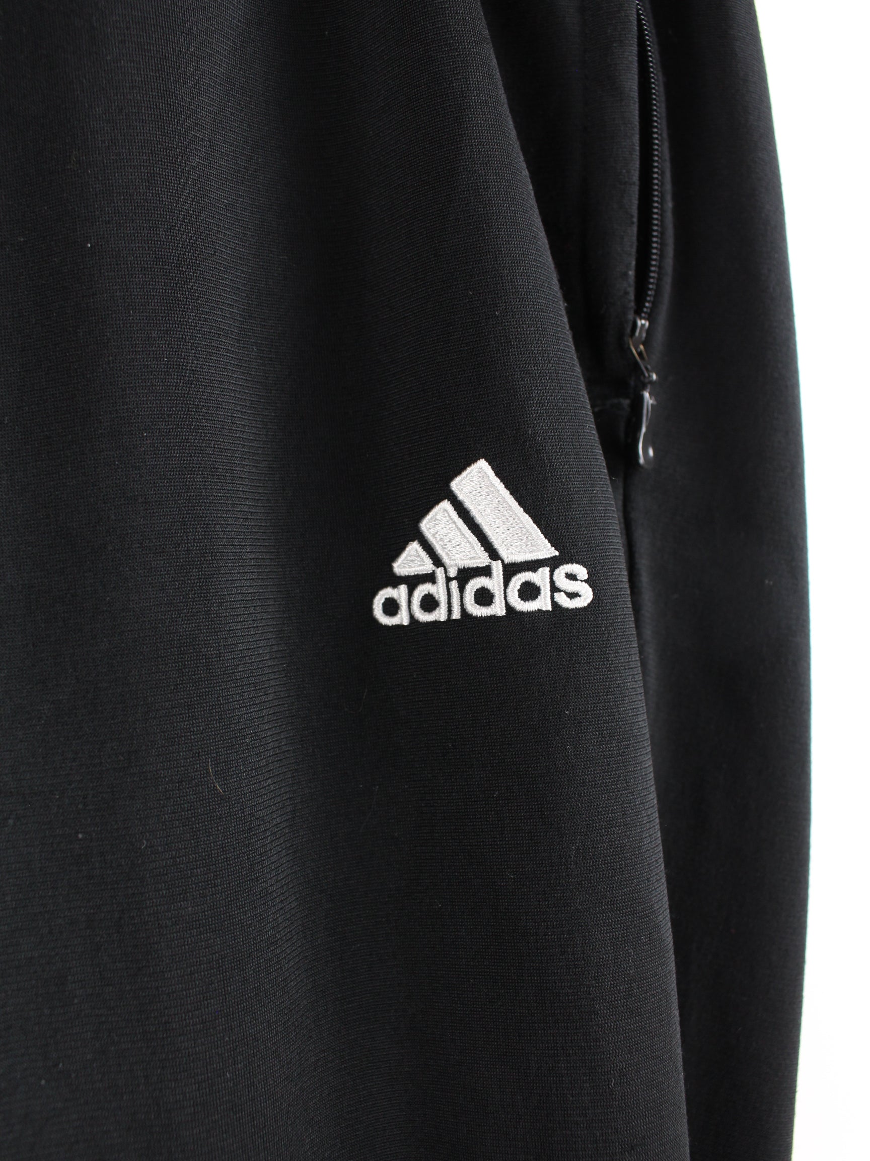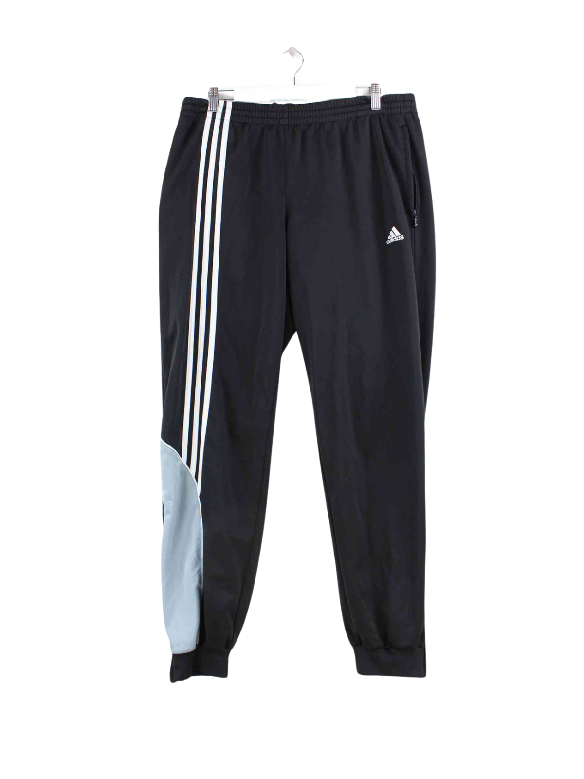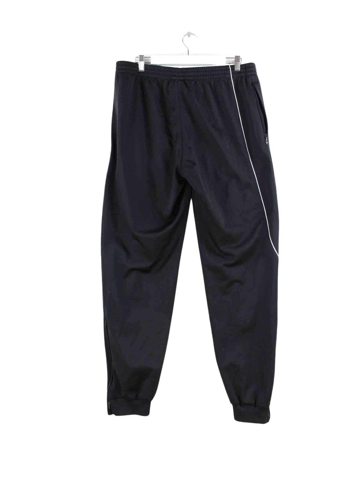 Black track pants from Adidas in size XL. They are made of synthetic material and are in very good condition in stock.