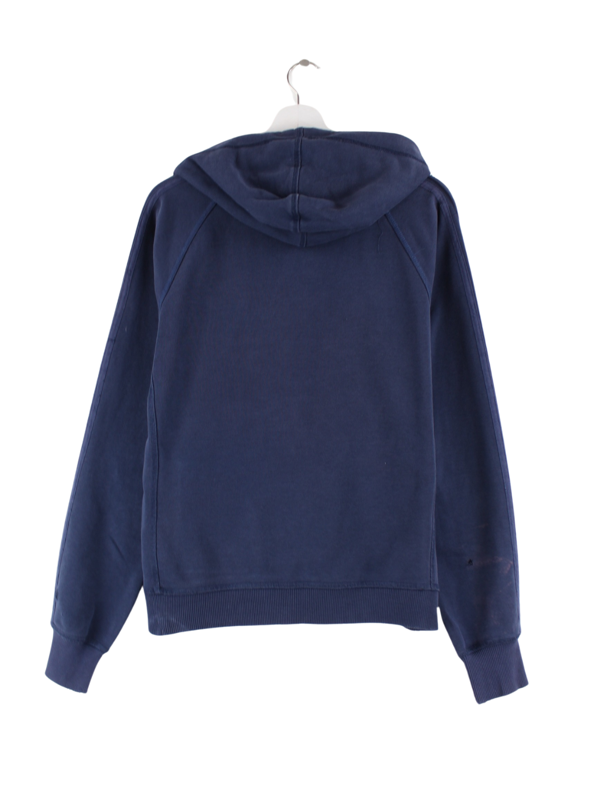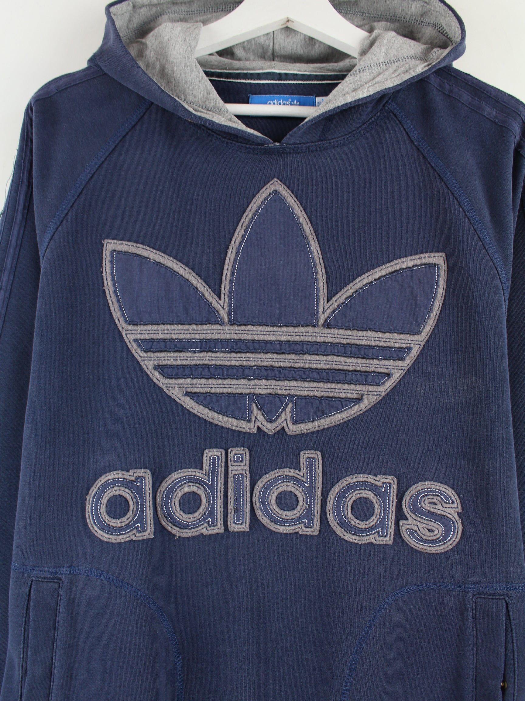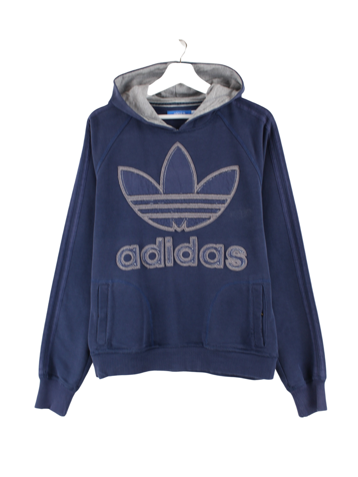 Hoodie from the Adidas brand with embroidery in size M. It is made from a cotton blend and is available in blue.