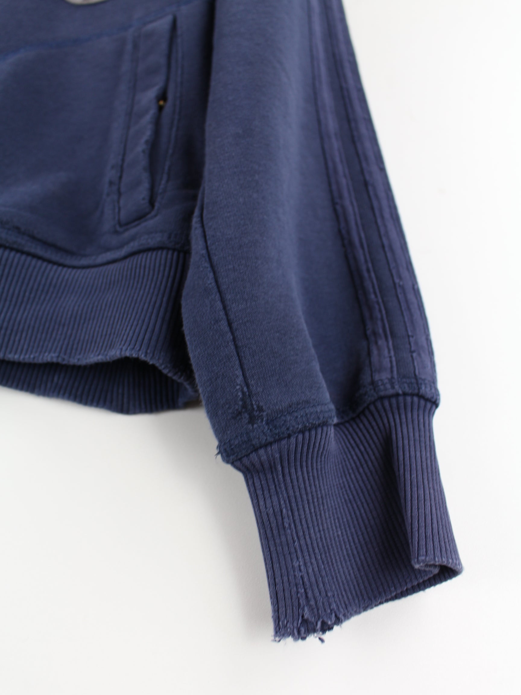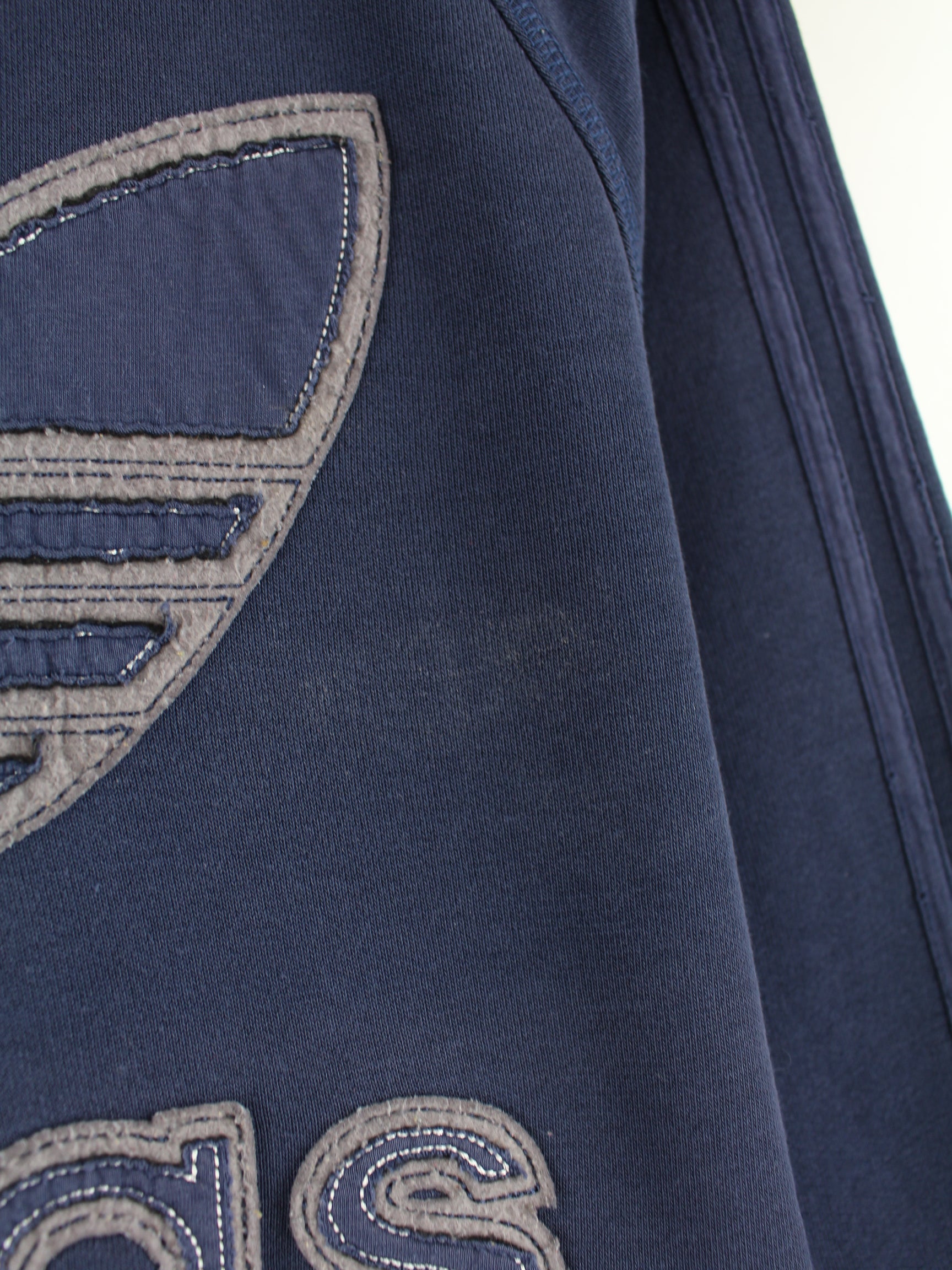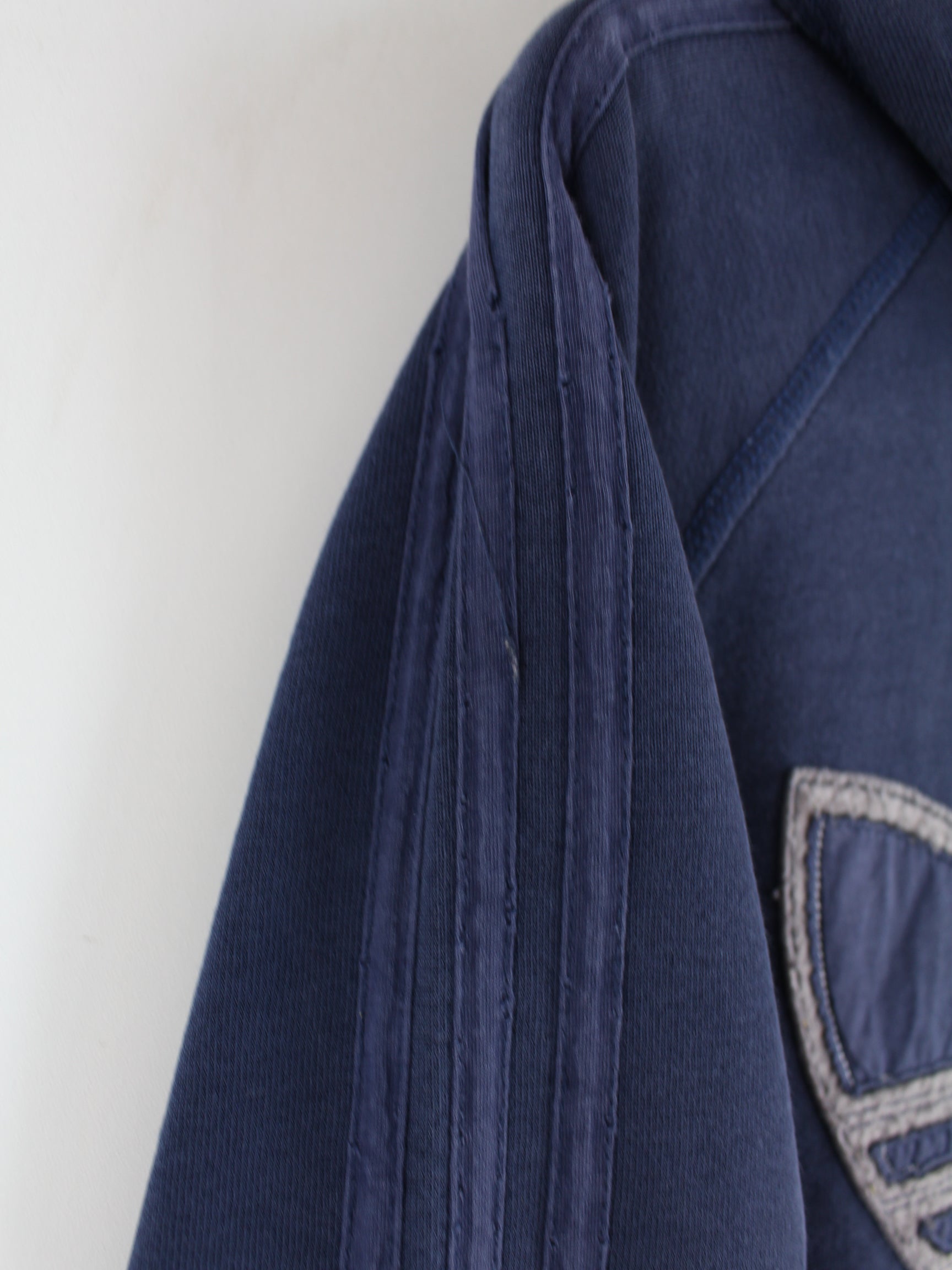 Hoodie from the Adidas brand with embroidery in size M. It is made from a cotton blend and is available in blue.