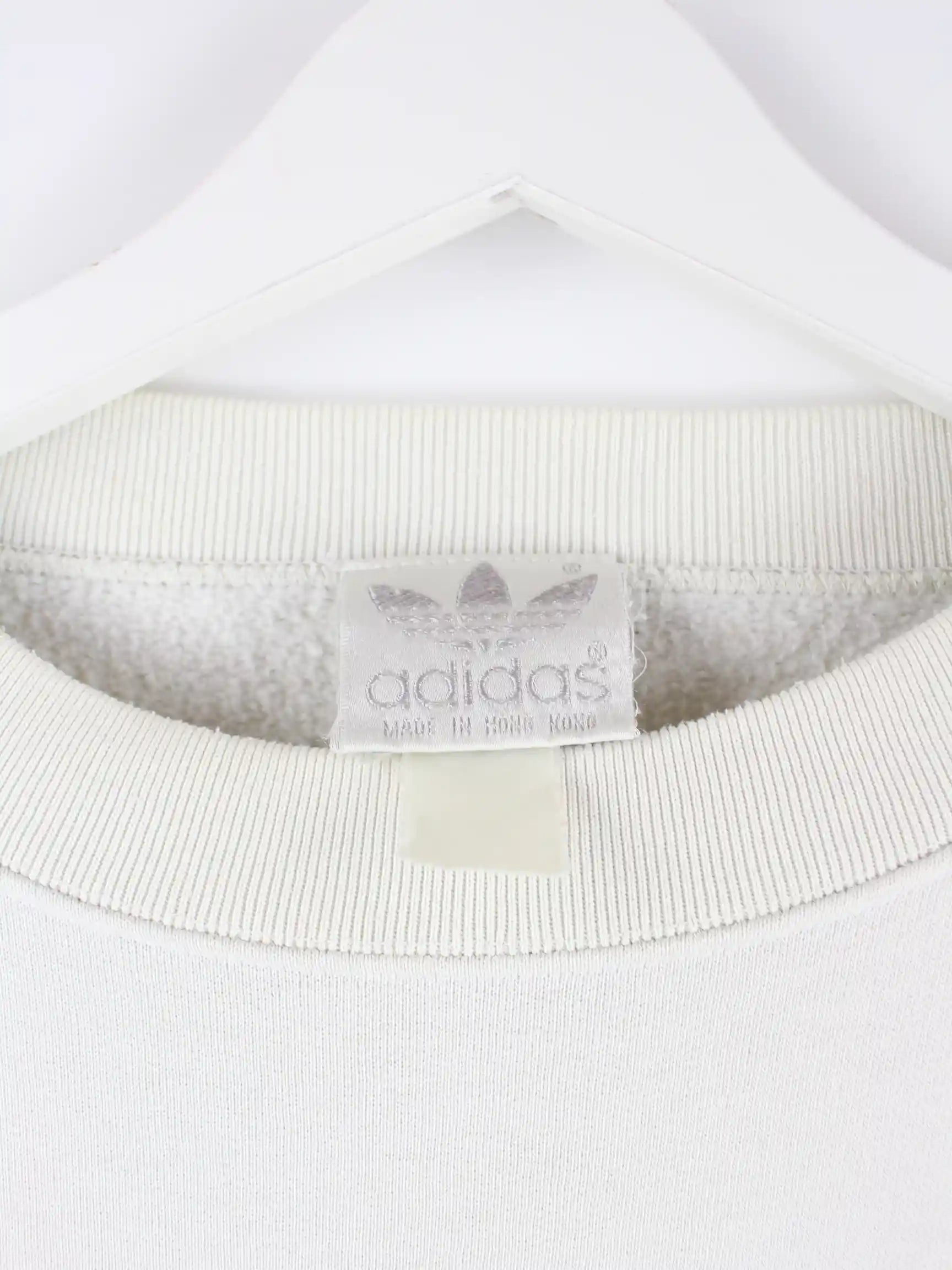 Weißer Sweater der Marke Adidas in Größe L. Er ist aus einer Baumwollmischung angefertigt. Den Zustand würden wir als 'In Ordnung' bezeichnen (vergl. Bilder).