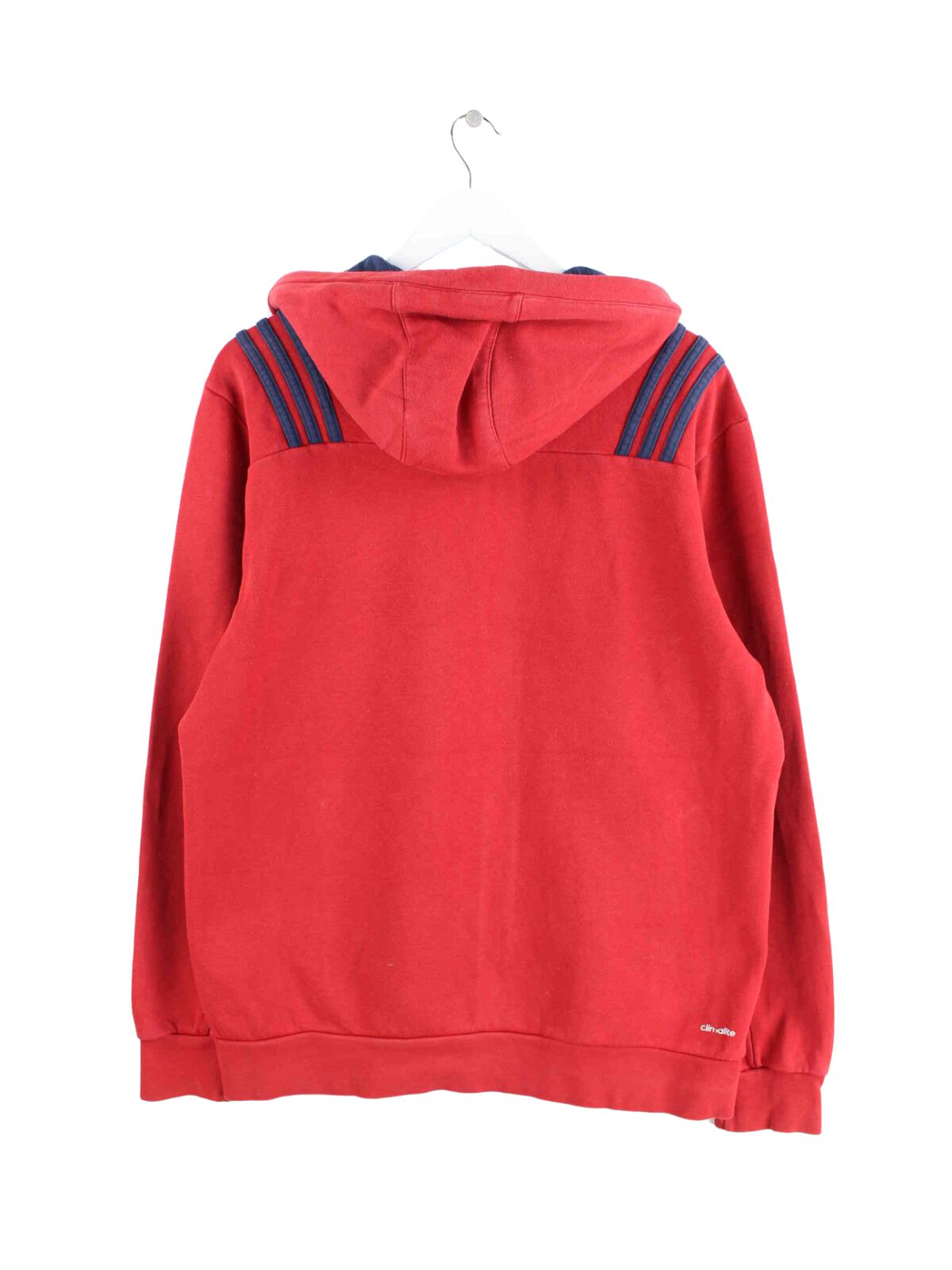 Red hoodie with embroidery and long zipper from the Adidas brand from the early 2000s in size L. It is made from a cotton blend and is available from us in very good condition.