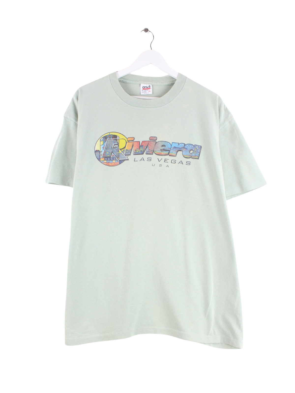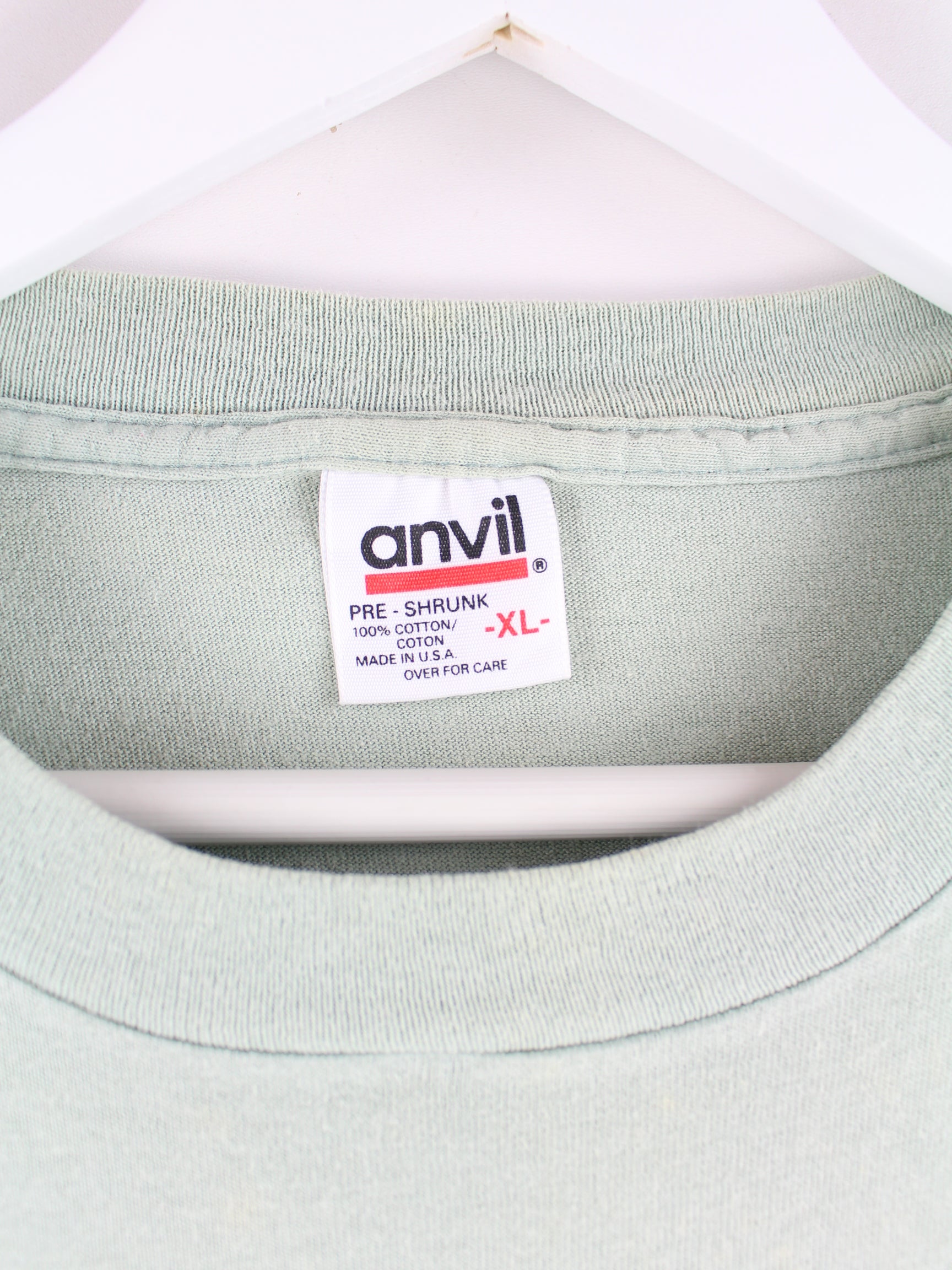 Green T-shirt from the label Anvil from the 90's in size XL. It is made of cotton and is in good condition. With a great 90's print.